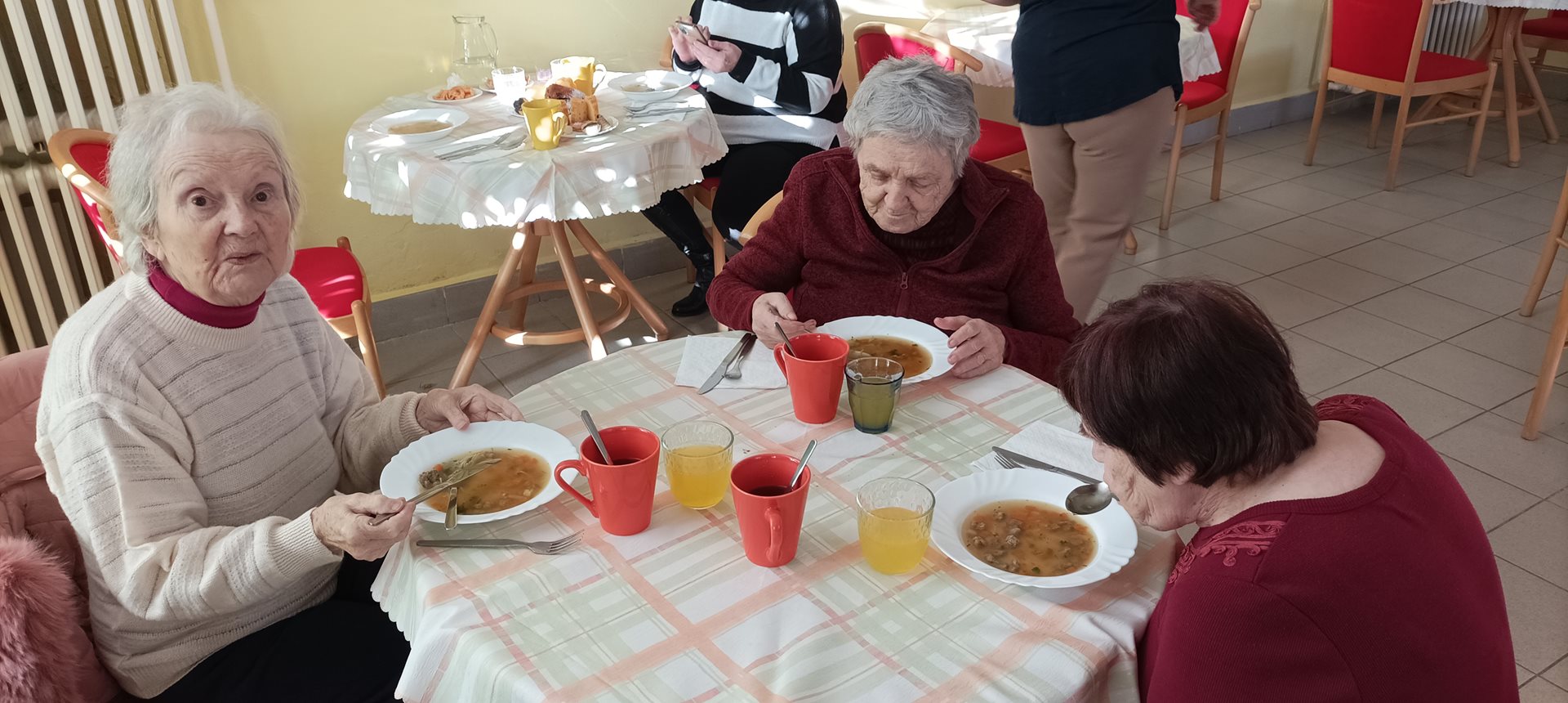 Jak je již tradicí, na začátku prosince jsme se s uživatelkami vydaly na již 10. rekonstrukci Bitvy tří císařů, která se uskutečnila v zámecké zahradě naše spřáteleného Domova pro seniory, p.o. v Sokolnicích. Každý rok je v rámci rekonstrukce bitvy vyprávěn příběh některého ze zúčastněných – tento rok to byl příběh hajného Vojtěcha Kratochvíla, který z bitvy vyvázl sice se zraněním, ale živý se vrátil zpět domů za svou rodinou. Během rekonstrukce jsme mimo jiné měli možnost vidět přehlídku precizně propracovaných kostýmů, vystrojených koní, dobové vojenské techniky a bojového umění zhruba 200 vojáků a 22 jezdců na koních. Příběh byl velmi dojemný a zážitek z celé rekonstrukce byl neobvyklý a nepřenositelný. V zámeckém parku se sešlo opravdu velké množství diváků včetně dětí. Během bitvy se ozývaly takové rány, že jsme na pečlivě přichystaných lavičkách pokrytých teplými dekami často leknutím nadskočily. Celá akce byla zakončena pietním aktem, při kterém byl položen věnec na památku padlým vojákům a koním.