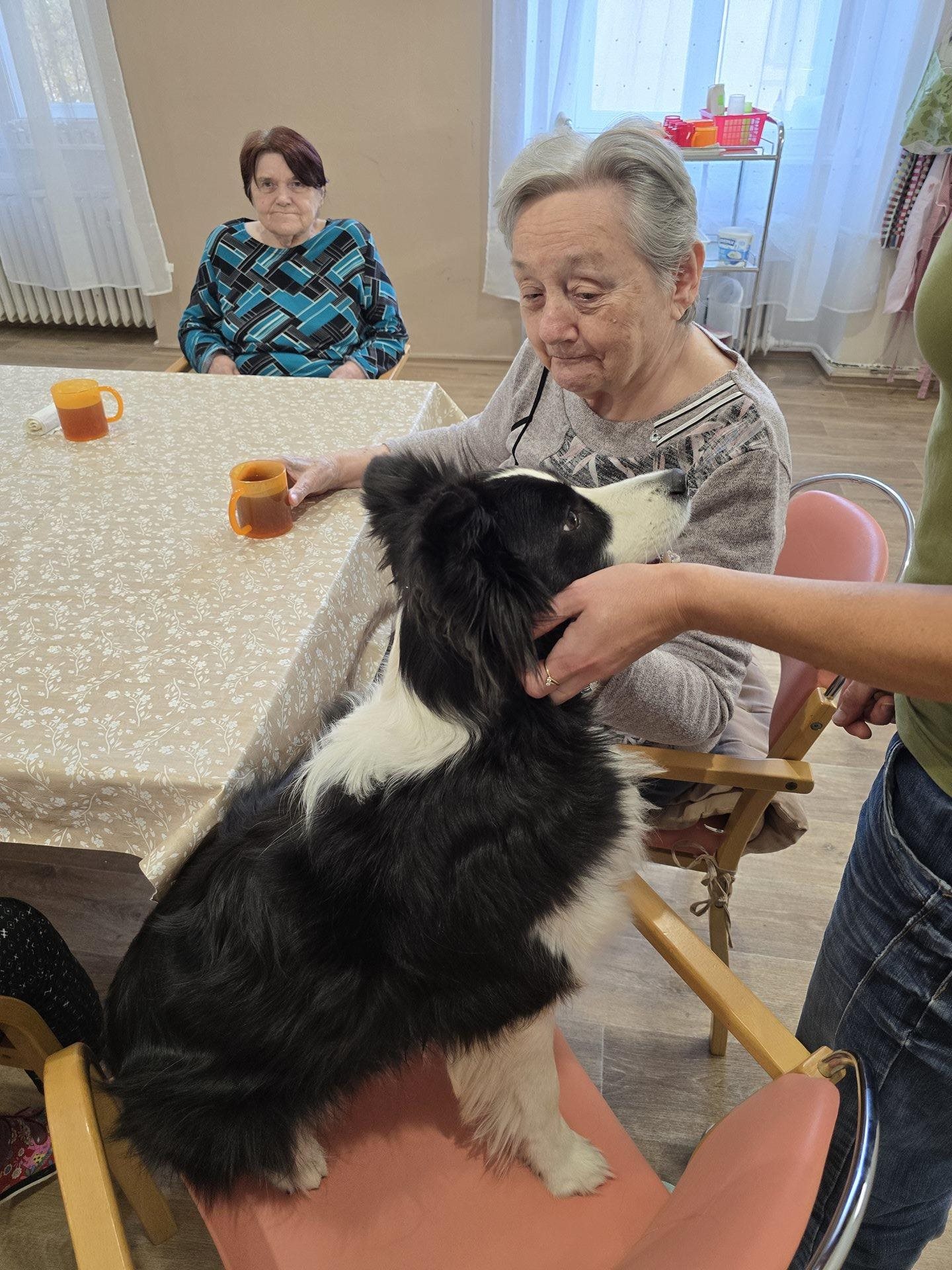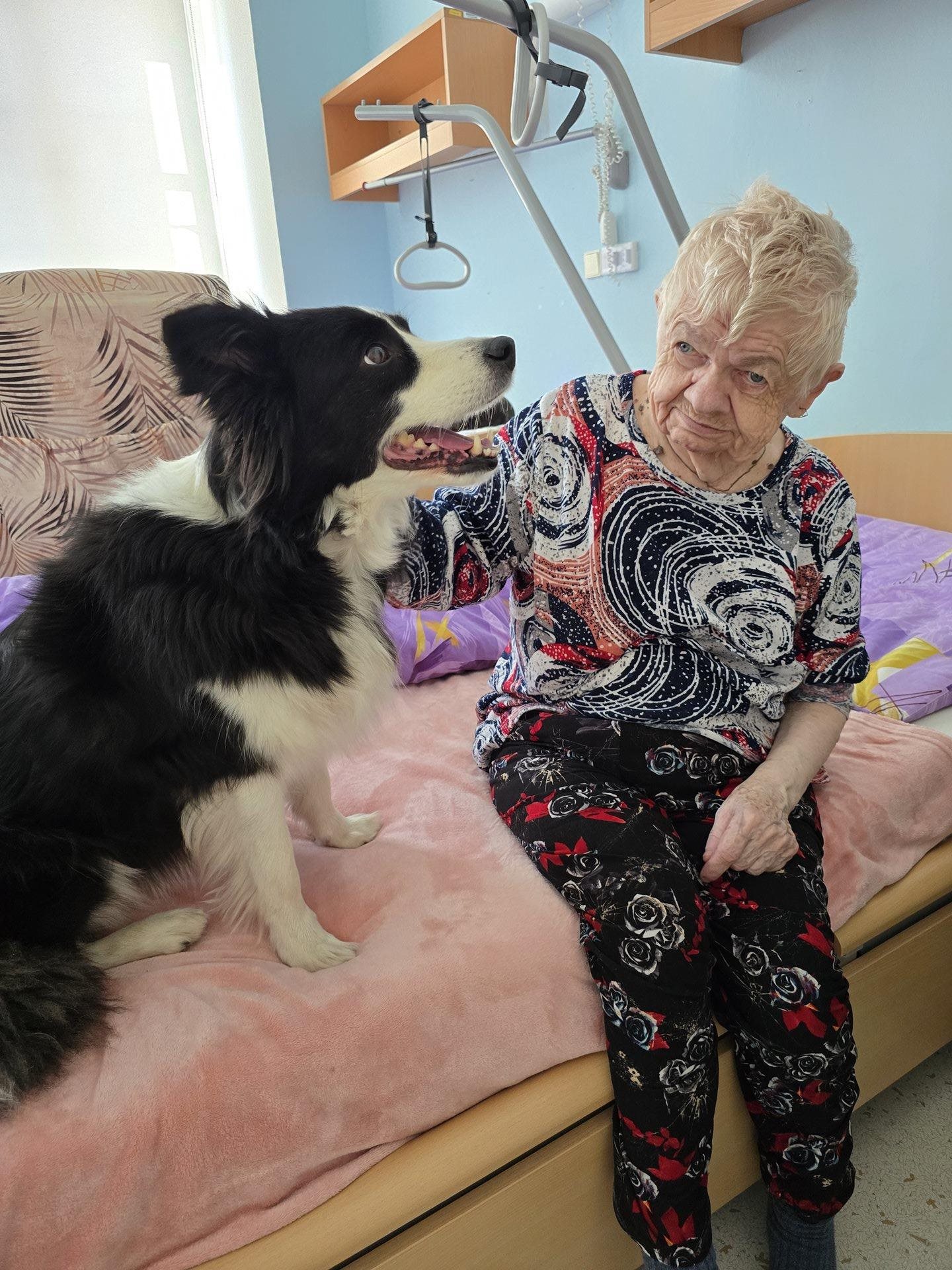 Ve středu naše uživatelky a uživatele potěšila vzácná návštěva - fenečka Bambee. Uživatelky i uživatelé jsou vždy vděční a nadšení, když přijdou do kontaktu se zvířaty, hlavně tedy se psy. Fenečka Bambee tak vykouzlila hned několik úsměvů na tváři lidem, kteří se této terapie na pavilonu Z účastnili. Canisterapie, neboli terapie psem, je pro lidi velmi důležitá - lidi uklidňuje a dodává jim pozitivní energii. Některé uživatelky si také přály udělat s pejskem fotografii, aby si ji mohly také pověsit v rámečku na zeď a mohly tak vzpomínat na tyto pěkné chvíle.