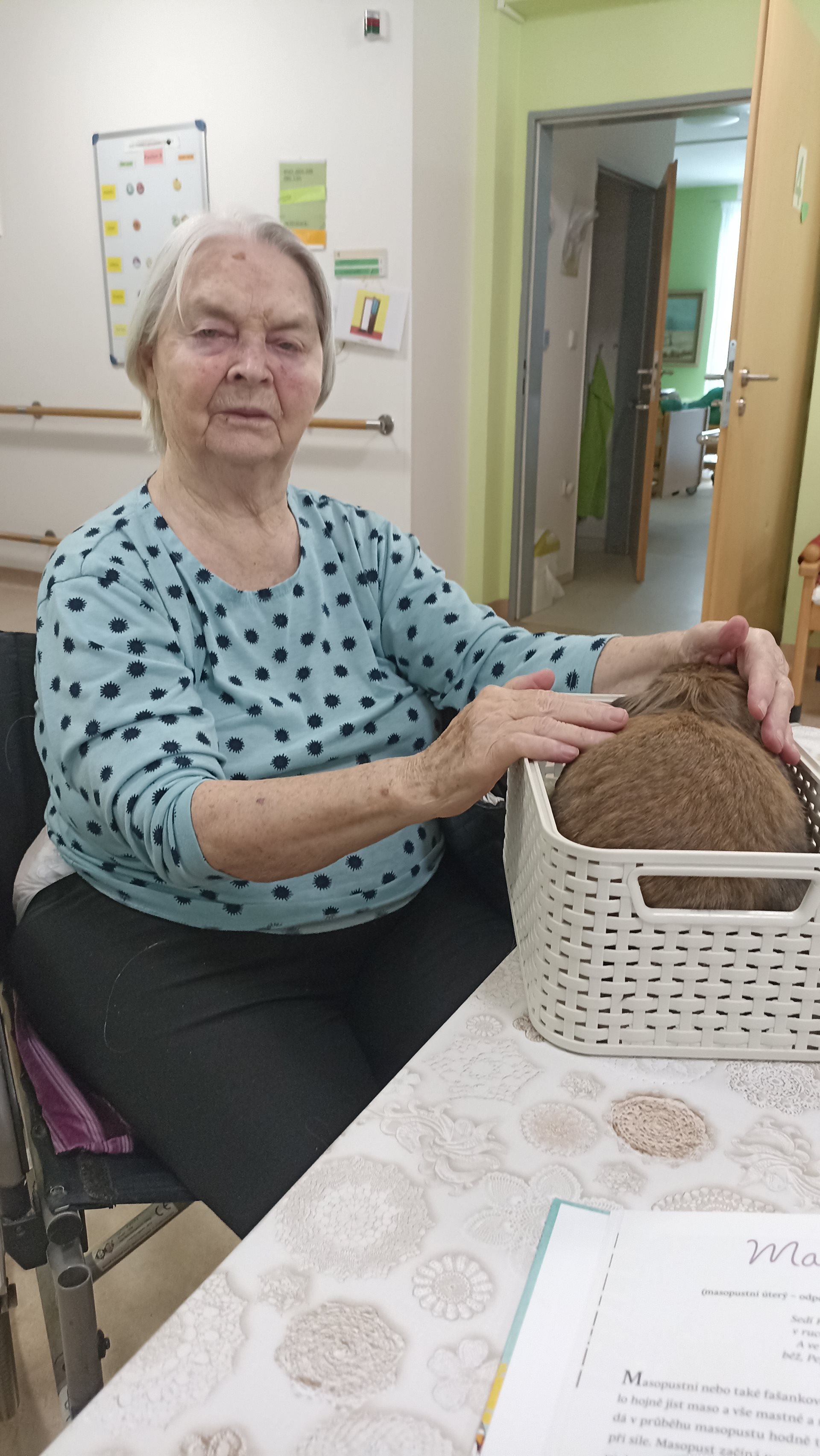 Po vánočním mlsání jsme se s uživatelkami rozhodly, že procvičení si dolních končetin šlapáním na motomedu nám prospěje. Zatím co vždy jedna uživatelka šlapala, tak ostatní četly z knihy Český rok o novoročních tradicích v naší zemi a rozběhla se velká diskuze o tom, kde a jaké zvyky mají. Králice Kája nám dělala společnost.