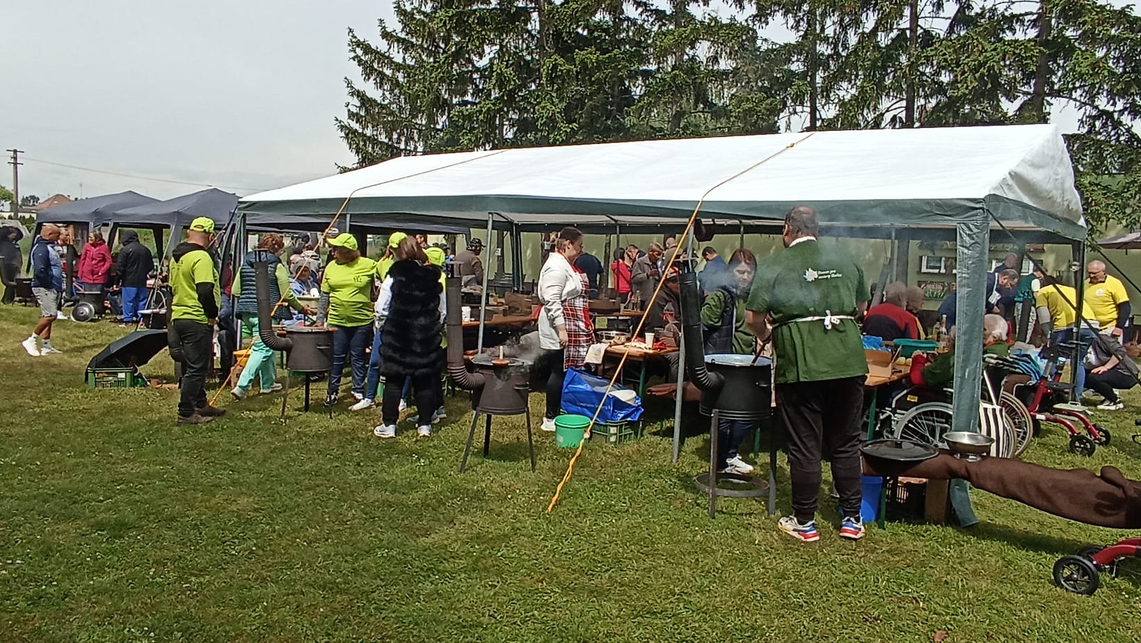 Letošní rok jsme měli možnost se zúčastnit tradiční soutěže ve vaření gulášů, který se každoročně koná ve spřáteleném zařízení ve slovenské Seredi. Na cestu jsme se s našimi seniorkami vydali v brzkých ranního hodinách, a i navzdory tomu byly naše uživatelky velmi čilé a plny očekávání. Slunečné dopoledne odstartovalo slavnostním zahájením, na kterém nechyběla všudypřítomná hudba, a tak bylo na tanečním parketu před domovem stále plno. Soutěžní týmy, složené z několika uživatelů a zaměstnanců každého z pozvaných domovů, se sešli kolem kotlíků s vlastními „osvědčenými“ recepty – někteří vsadili na tradiční maďarský styl, jiní přidali moderní nádech nebo tajné ingredience, které se dědí z generace na generaci. Přestože šlo o soutěž, hlavním cílem bylo propojit obyvatele a zaměstnance domovů. Každý měl možnost se zapojit – někdo krájel cibuli, jiný brambory, další míchal smažící se cibulku a ostatní loupali česnek. V čase čekání na to „až maso změkne“ jsme měli možnost ochutnat báječné škvarkové pagáče a chléb se sádlem a pažitkou. Kolem poledne se celým dvorem domova linula vůně čerstvého guláše. Porota ochutnávala poctivě jeden vzorek po druhém, a nakonec vydala verdikt, že nejlepší guláše uvařili zaměstnanci a uživatelé 3 slovenských domovů. Tyto týmy za své úsilí dostali tašku s dobrotami, dřevěnou vařečku s logem sereďského domova a hlavně – obrovský potlesk. Vítězný tým měl tak obrovskou a neskrývanou radost, že jsme jim jejich vítězství ze srdce přáli, neboť nejde jen o to, kdo má nejlepší recept – jde o to být spolu, dělat něco smysluplného a sdílet radost. Soutěž ve vaření gulášů v domově pro seniory není jen kulinářským zážitkem – je to symbol komunity, sounáležitosti a aktivního stáří. A jak říkají sami účastníci: „Nie je dôležité vyhrať, ale variť srdcom.“ Den plný smíchu, vůně papriky a přátelského zápolení opět ukázal, že chuť do života ani s přibývajícími lety neubývá.