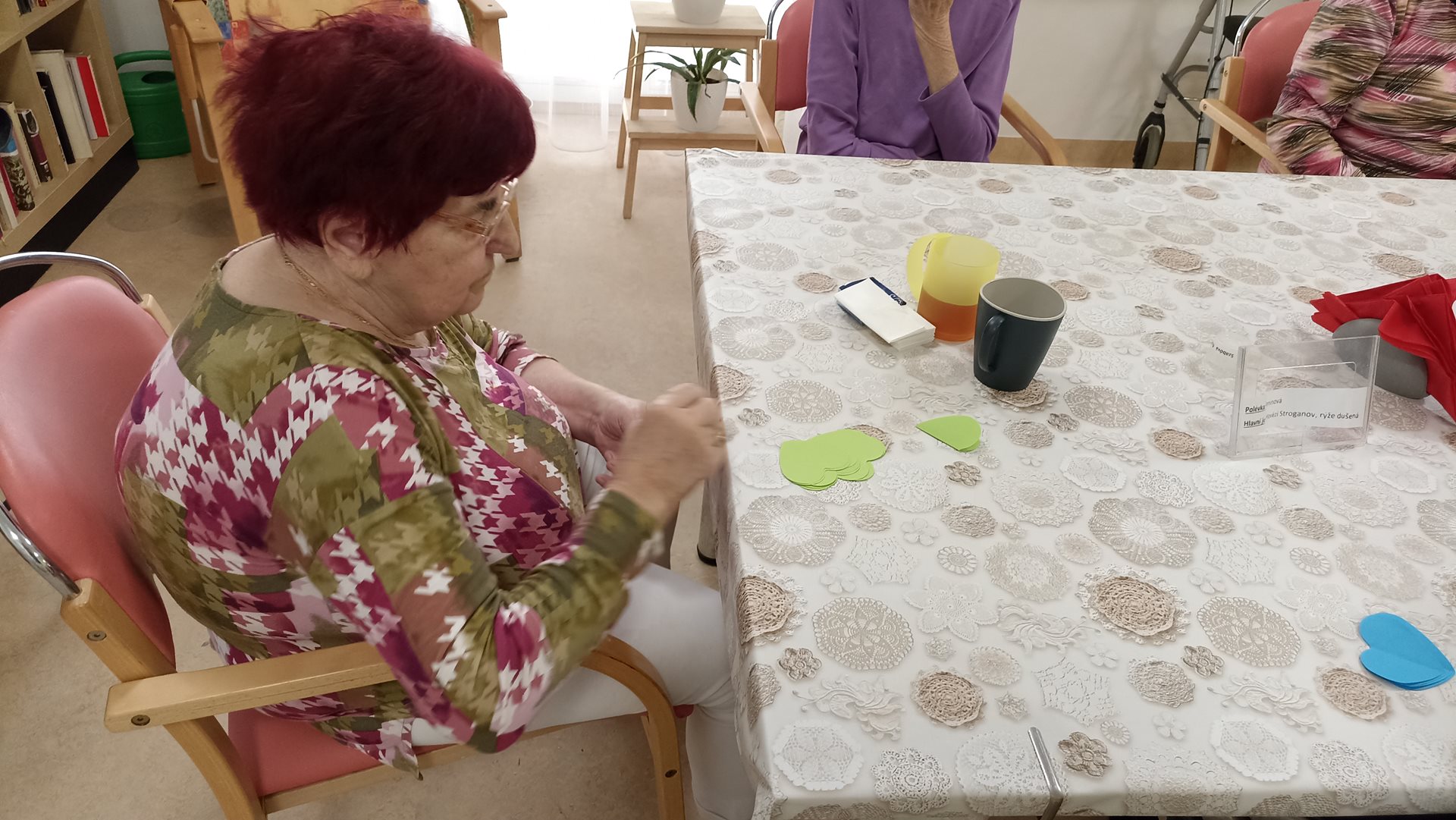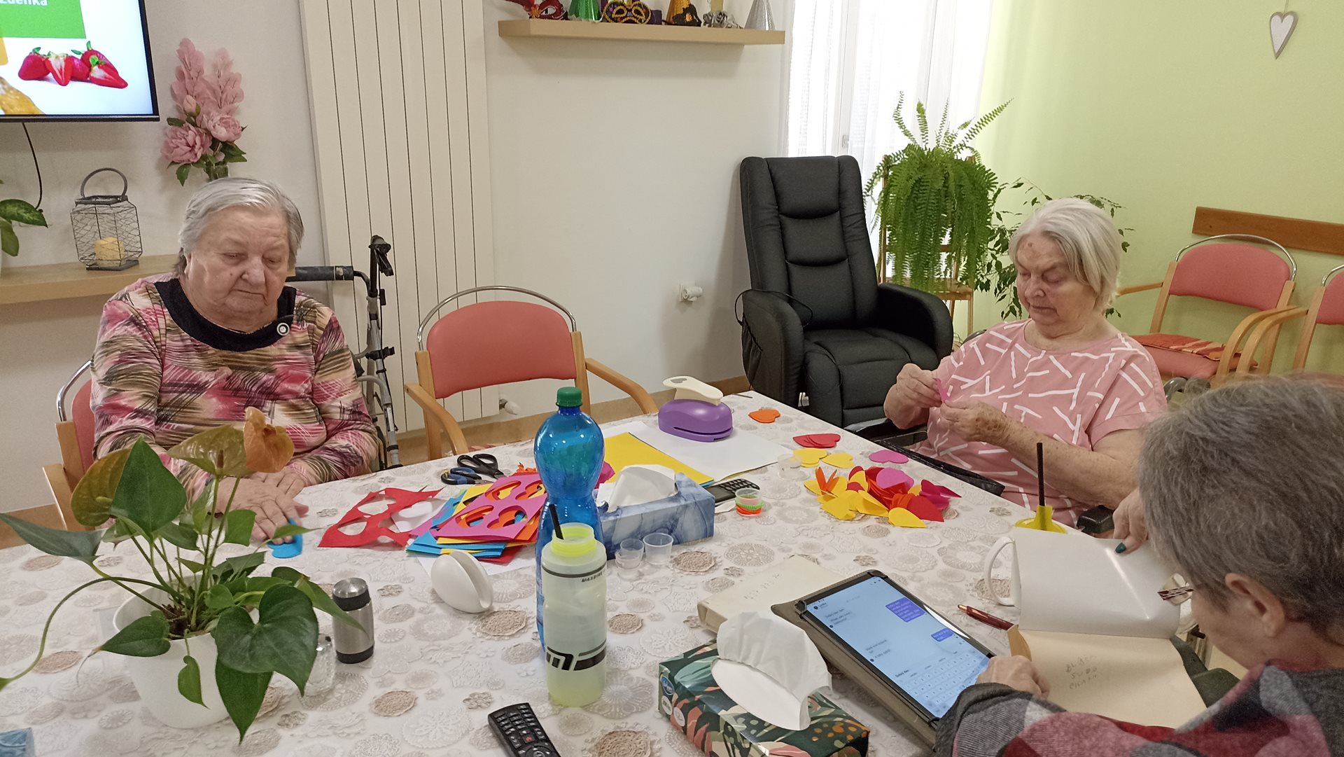 Masopust se blíží, a tak jsme se ve tvořivé dílně při arteterapii zaměřily na barevný papír a že si vyrobíme pěknou výzdobu na jídelnu. Uživatelky si procvičily jemnou motoriku a kognitivní funkce při skládání srdíček.