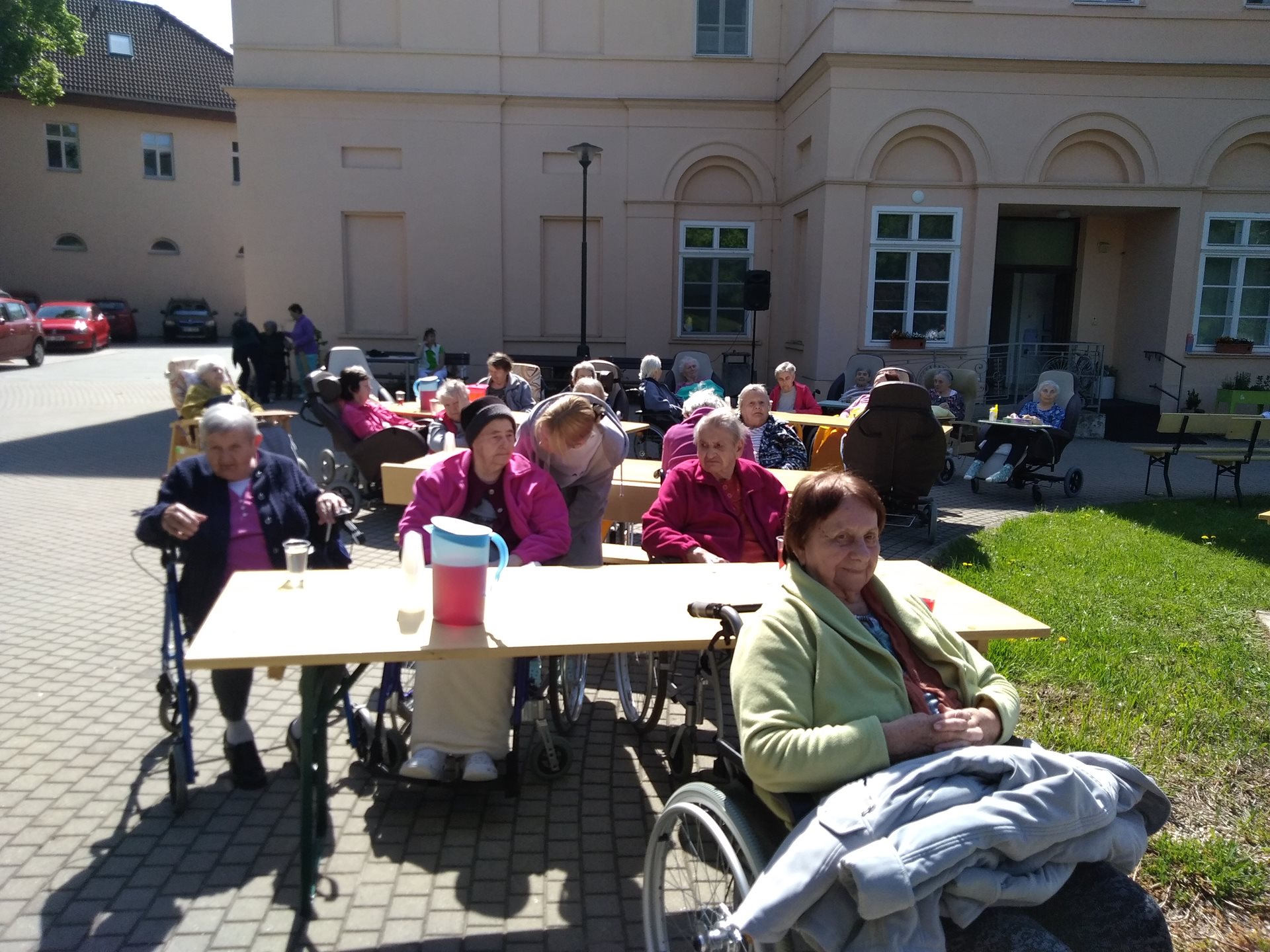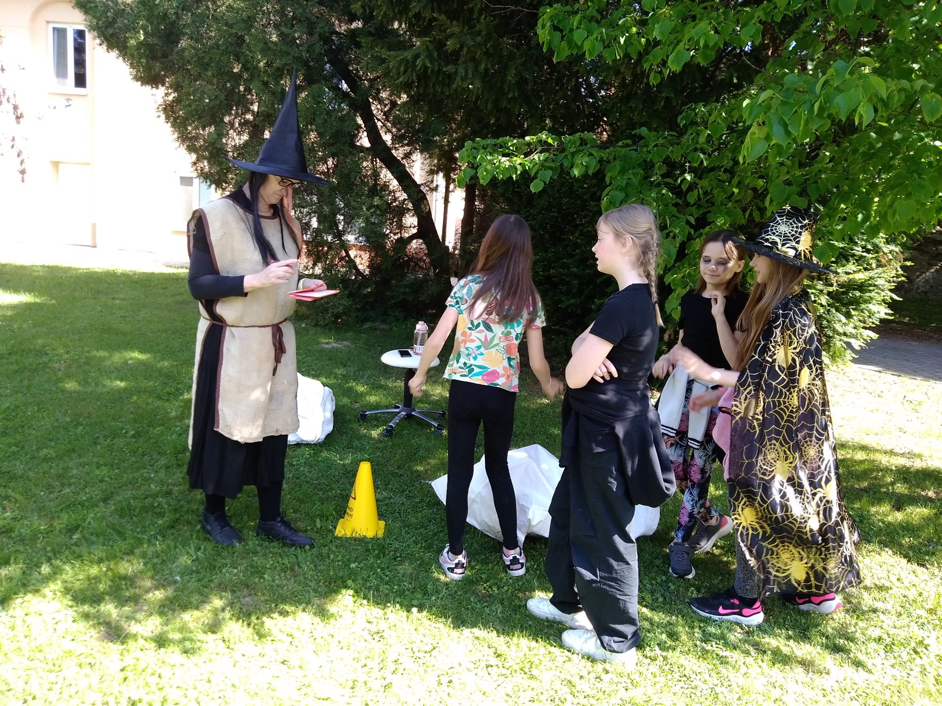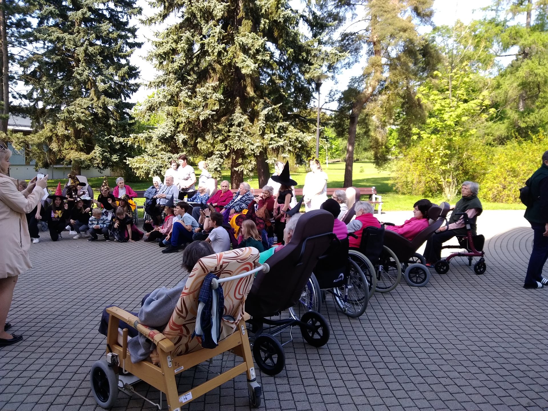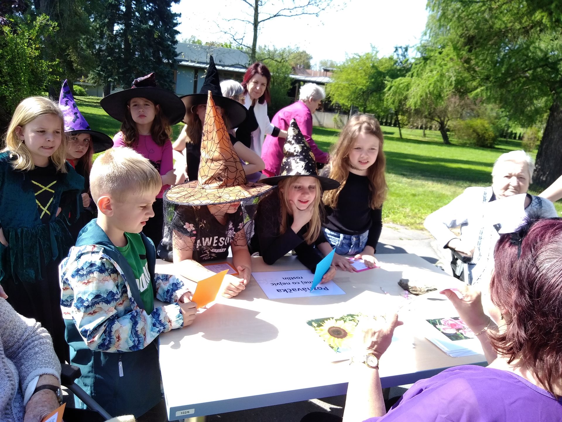 Konec dubna se blíží a květen nám klepe na dveře. A to bychom nebyli my, kdyby se u nás v zařízení nekonal Čarodějnický rej s dětmi z místní základní školy. Počasí nám letos vskutku královsky přálo, a tak jsme se za svitu sluníčka setkali u kašny před domovem, kde jsme se rozřadili do 5-ti členných družstev, z nichž 4 byly děti a 1 seniorka. Každý tým se společně musel prosoutěžit 8 disciplínami, které potrápili nejen ruce a nohy, ale také paměť, soustředění a koordinaci oko - ruka. Během plnění disciplín hrála veselá hudba, špekáčky voněly z grilu a sem tam se ozývaly veselé výkřiky dětí či uznalé tleskání uživatelek a personálu. Každý z týmu si pochutnal na špekáčku a za splněné úkoly dostal sladkou odměnu. Bylo to příjemně strávené dopoledne plné smíchu a radosti.