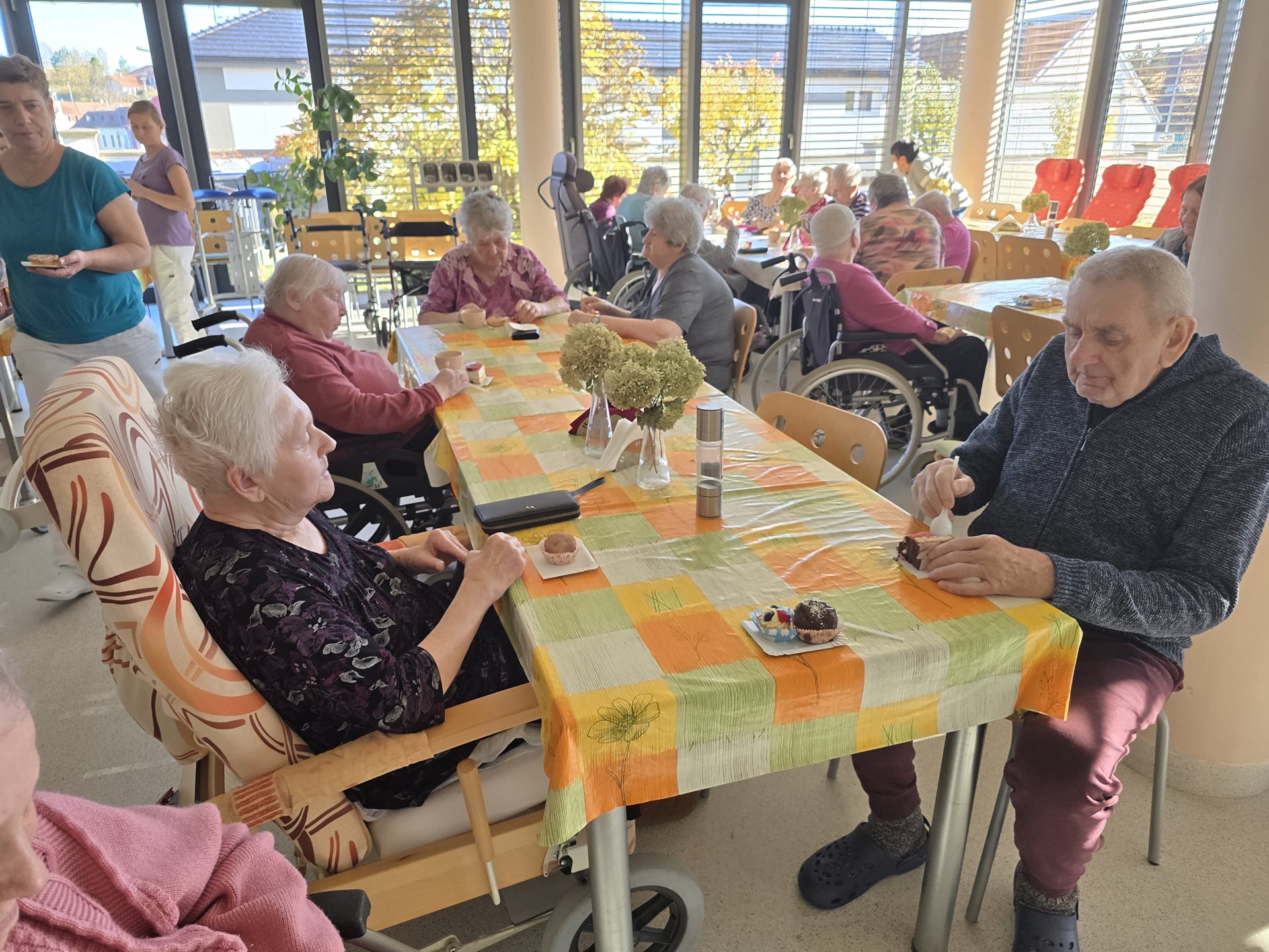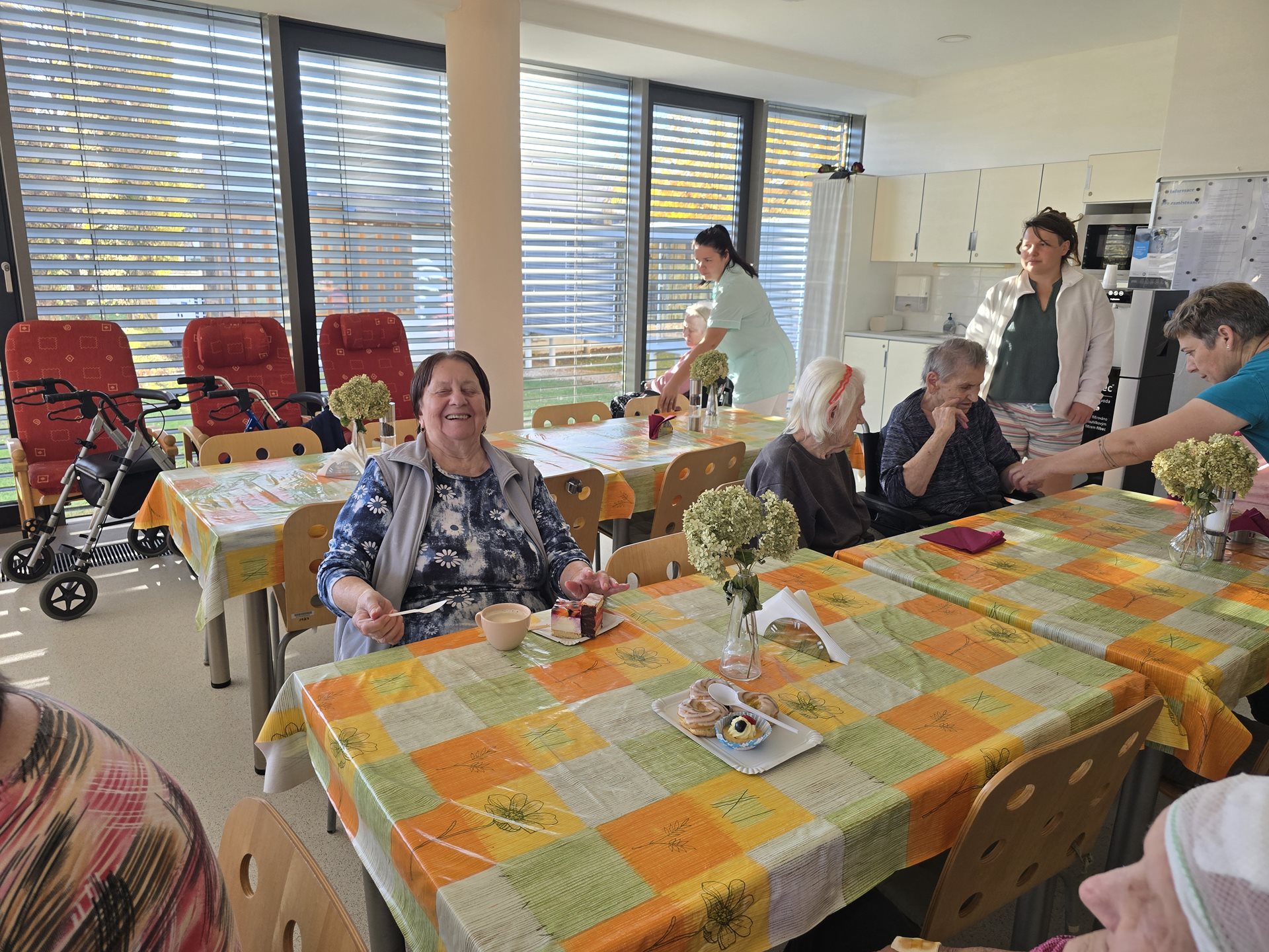 V našem domově jsme si užili sladké odpoledne v naší „cukrárně“. V nabídce nechyběly oblíbené zákusky – punčové řezy, brambory, věnečky, linecké košíčky a dortík smetanový s ovocem. Vůně čerstvé kávy se linula místností a navodila příjemnou atmosféru k posezení a povídání. Uživatelé si mohli vybrat svůj oblíbený dezert a vychutnat si ho v pohodlí mezi přáteli. Celým odpolednem nás provázela dechovka, která hrála z reproduktorů a navodila dobrou náladu a vybídla uživatele i k pobrukování známých melodií. Takové chvíle přinášejí potěšení pro chuťové buňky, radost, vzpomínky a pocit sounáležitosti.
