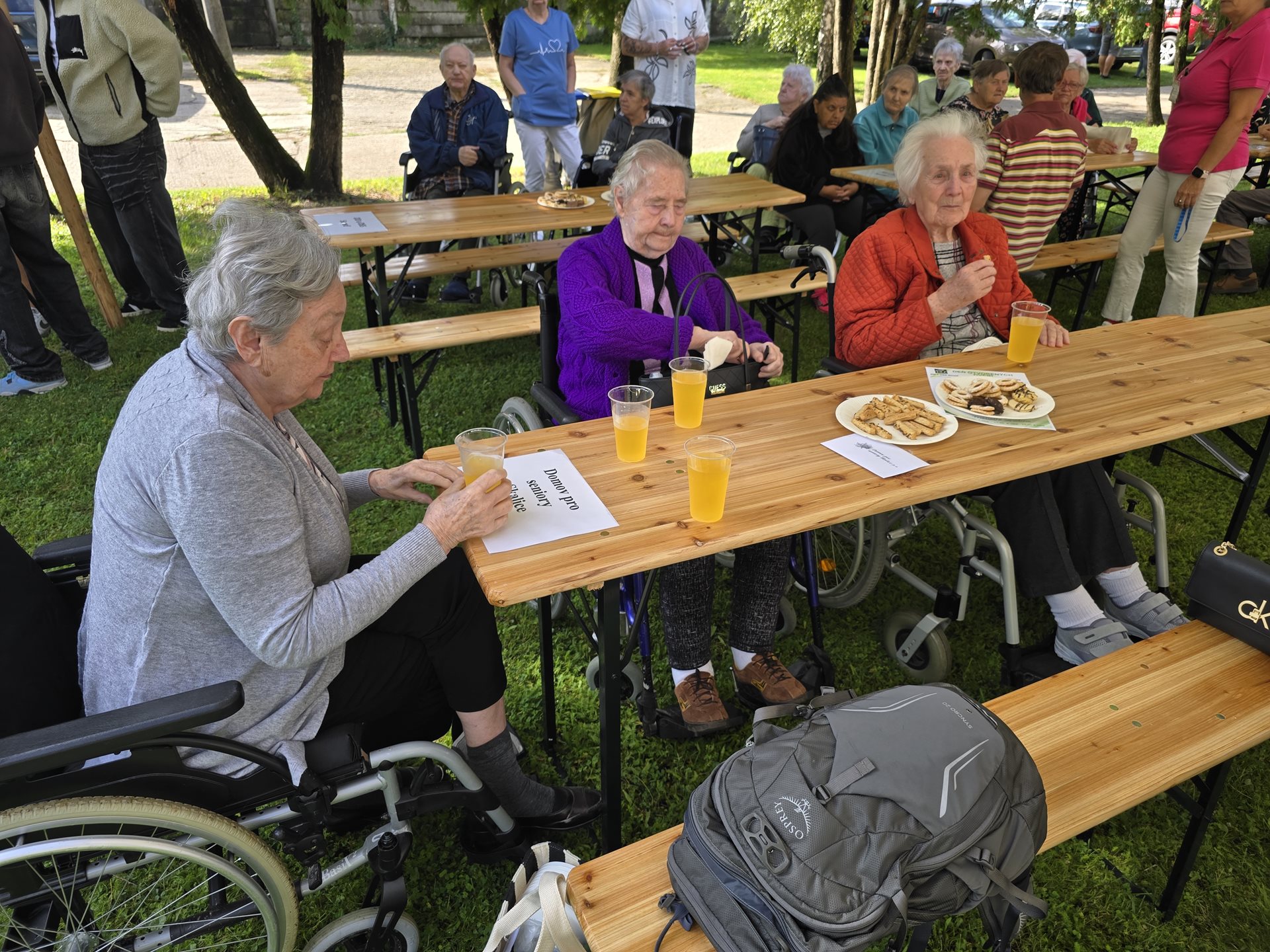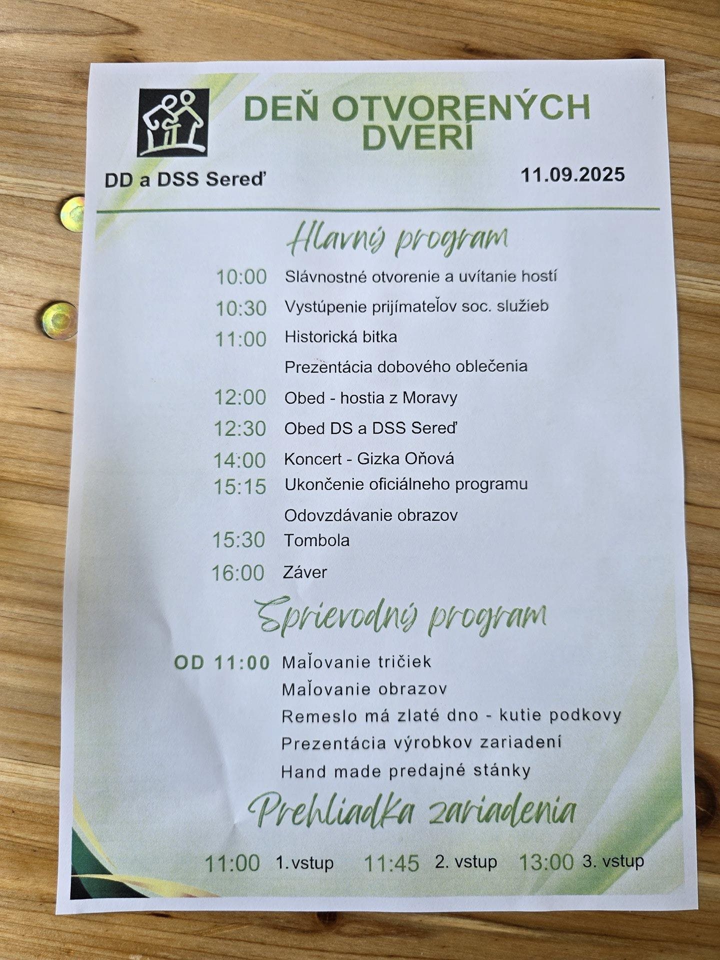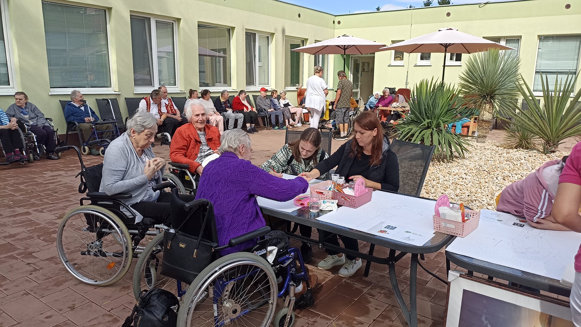 Dne 11.9.2025 se tři naše uživatelky společně s aktivizačními pracovnicemi zúčastnily výjimečné akce, a to dne otevřených dveří ve spřáteleném domově v Seredi na Slovensku. Naše zařízení zde mělo svůj stánek, kde byly vystaveny vlastnoručně vyrobené výrobky a také náš místní kroj, jenž přilákal pozornost mnoha návštěvníků. Atmosféra byla velmi srdečná a přátelská. Hosté měli možnost ochutnat připravené cukroví a osvěžit se limonádou. Naše uživatelky společně s aktivizačními pracovnicemi vytvářely obraz s motivem anděla, který symbolizuje bezpečí a jistotu – hodnoty, které jsou pro naše zařízení velmi důležité. Po chutném obědě, jenž se skládal z řízku s přílohou a zelným salátem, následovalo malé sladké potěšení v podobě zmrzliny a kávy. Odpolední program obohatilo vystoupení známé zpěvačky Gizky Oňové, které přineslo mnoho radosti, potěšení a úsměvů. Na závěr dne byly slavnostně předány obrazy ředitelům jednotlivých zařízení. Celá akce proběhla ve velmi příjemné atmosféře a naše uživatelky si odnesly nejen krásné zážitky, ale také nová přátelství. I když cesta trvala přibližně tři hodiny tam i zpět, tak stála za to.