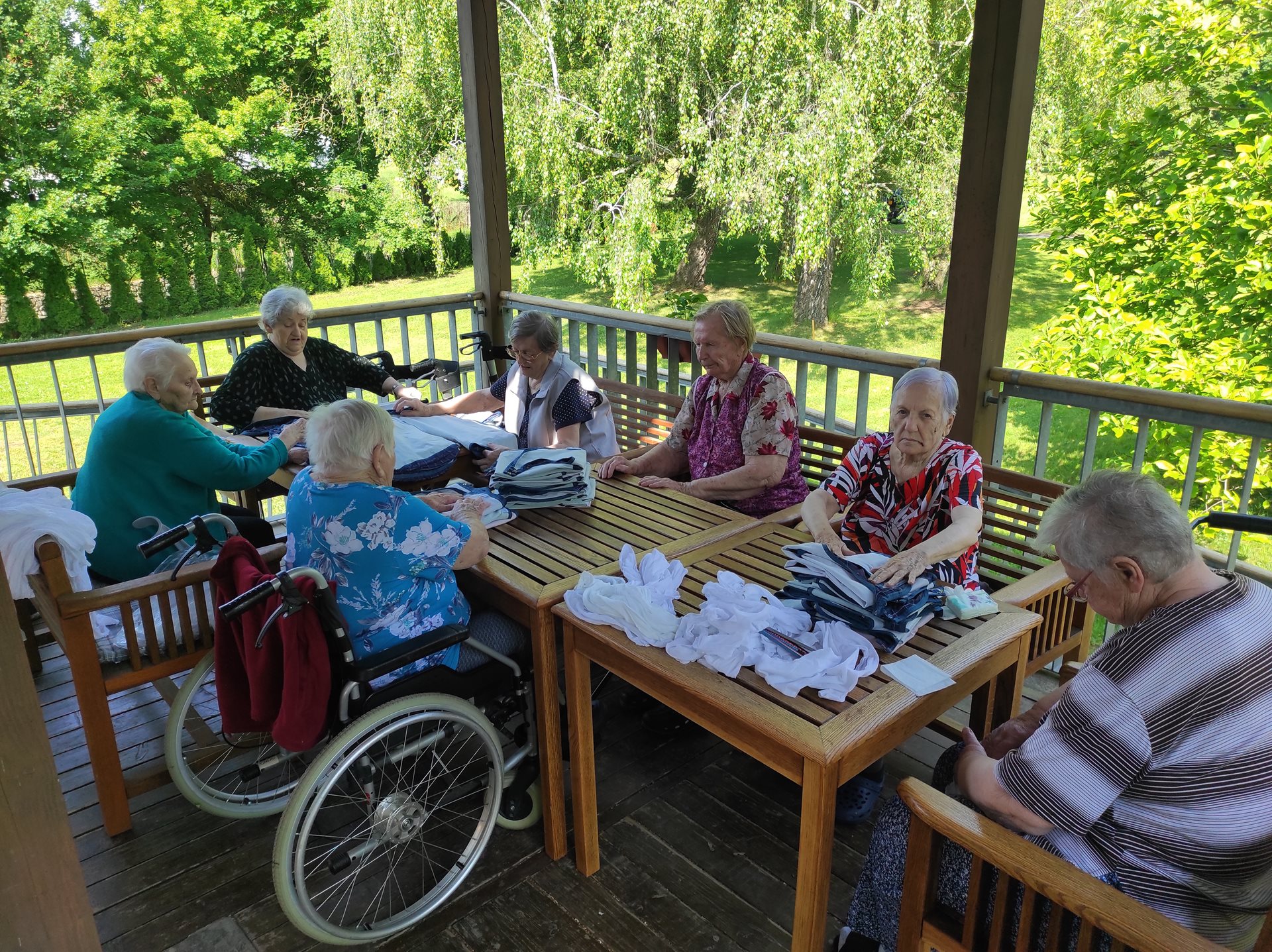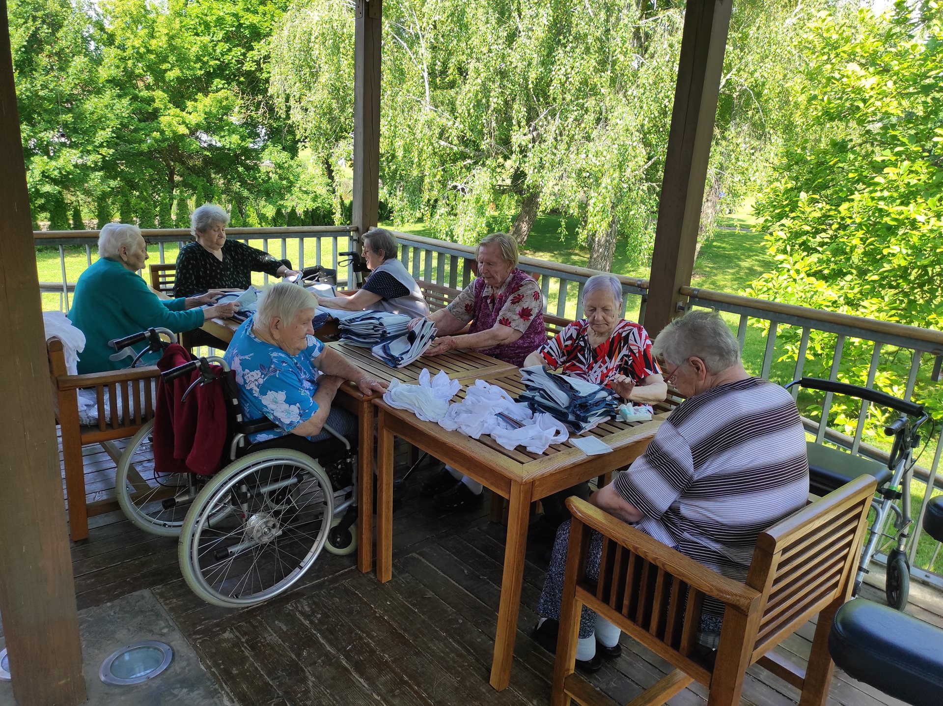 Počasí se nám konečně umoudřilo a ukázalo nám i svou letní teplou tvář, a tak jsme s uživatelkami využily možnosti sednout si v dopoledních hodinách na altánek, kde je teploučko, ale zároveň stín. Když vám sem tam tvář pohladí teplý větřík, ptáci zpívají naplno a jste obklopeni zelení, která je jako balzám na duši, hned je svět veselejší a pracuje se s obrovskou chutí. Uživatelky se tak pustily do skládání velké hromady prostírek, do motání obinadel na bandáže končetin a v neposlední řadě i do čištění a krájení jablíček na sušení. Uživatelky si dopoledne velmi užily, neboť jim k práci bylo předčítáno z „Dopisů od srdce“, které nám přišly od pisatelů z celého Česka.