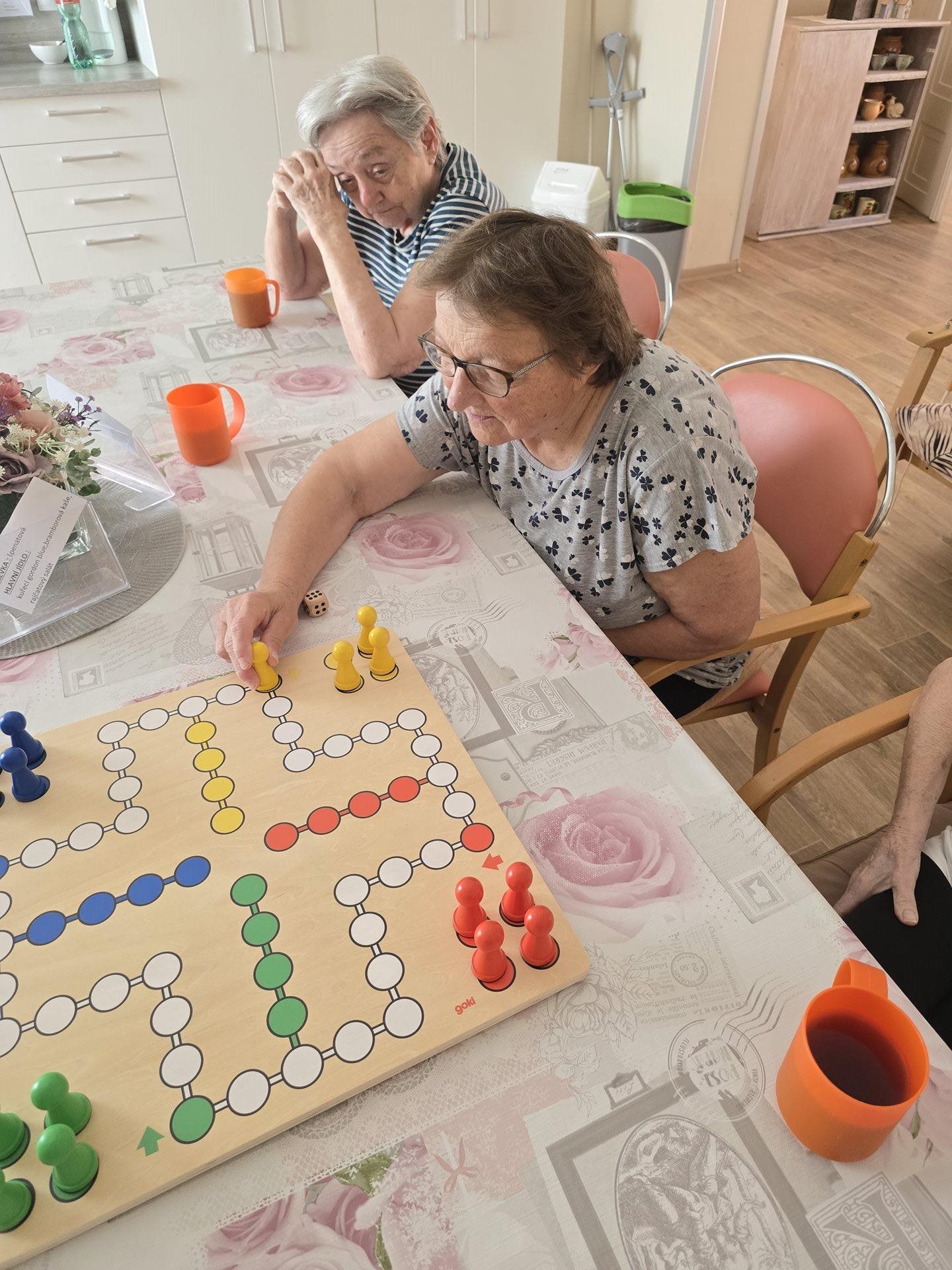 Ve středu dopoledne jsme si v našem domově společně zahrály oblíbenou společenskou hru Člověče, nezlob se. Tato klasická desková hra přinesla nejen zábavu, ale také příležitost k přátelskému soutěžení a společnému sdílení radostných chvil. Naše uživatelky se do hry zapojily s velkým nadšením. Uživatelkám se dařilo, některé překvapily svižným tempem a strategickým uvažováním. Atmosféra byla plná smíchu, dobré nálady a přátelského povzbuzování. I ti, kteří hru neznali, se rychle zorientovali a s radostí se přidali. Jsme rádi, že se herní dopoledne setkalo s tak pozitivním ohlasem, a těší nás, že si obyvatelé domova chtějí Člověče, nezlob se brzy zahrát znovu. Podobné aktivity podporují nejen mentální bystrost, ale i vzájemné vztahy a chuť trávit čas společně.