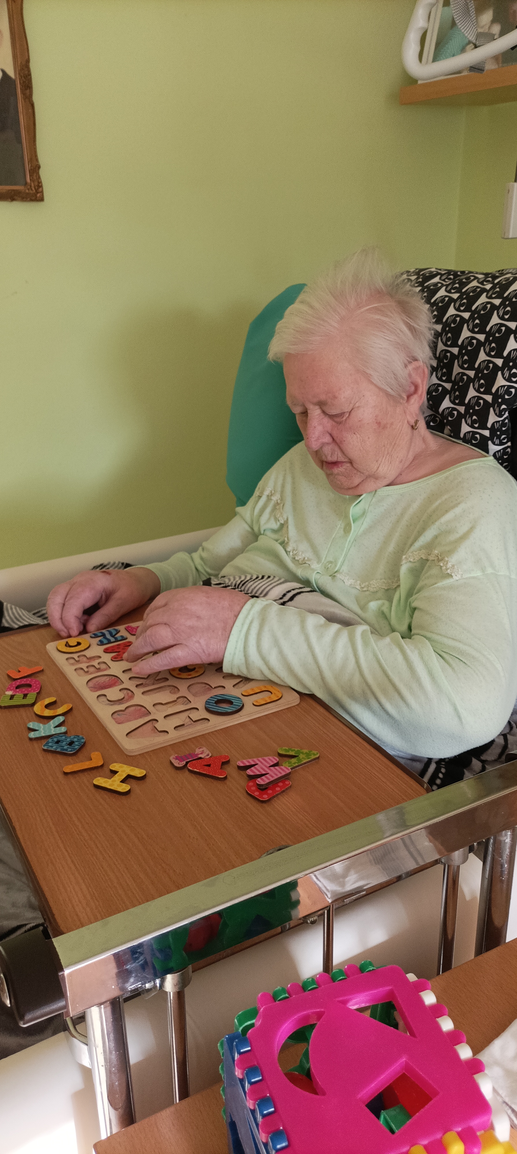Individuální terapie u nás vypadá všelijak – může to být trénink jemné motoriky, trénink paměti, reminiscenční terapie, zooterapie pomocí králíčka či agamy nebo předčítání knih. Ať tak či tak, tyto aktivity uživatele většinou nesmírně baví a jsou za ně velmi vděční.