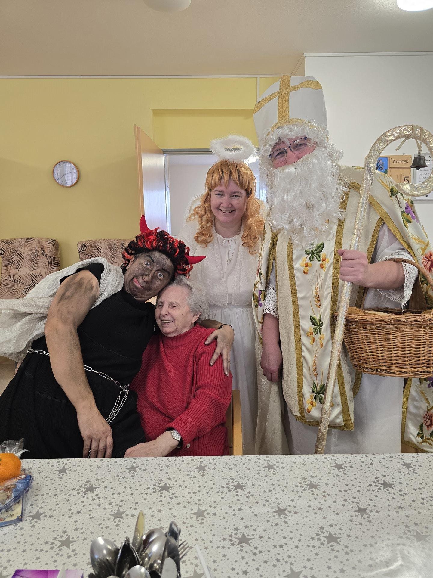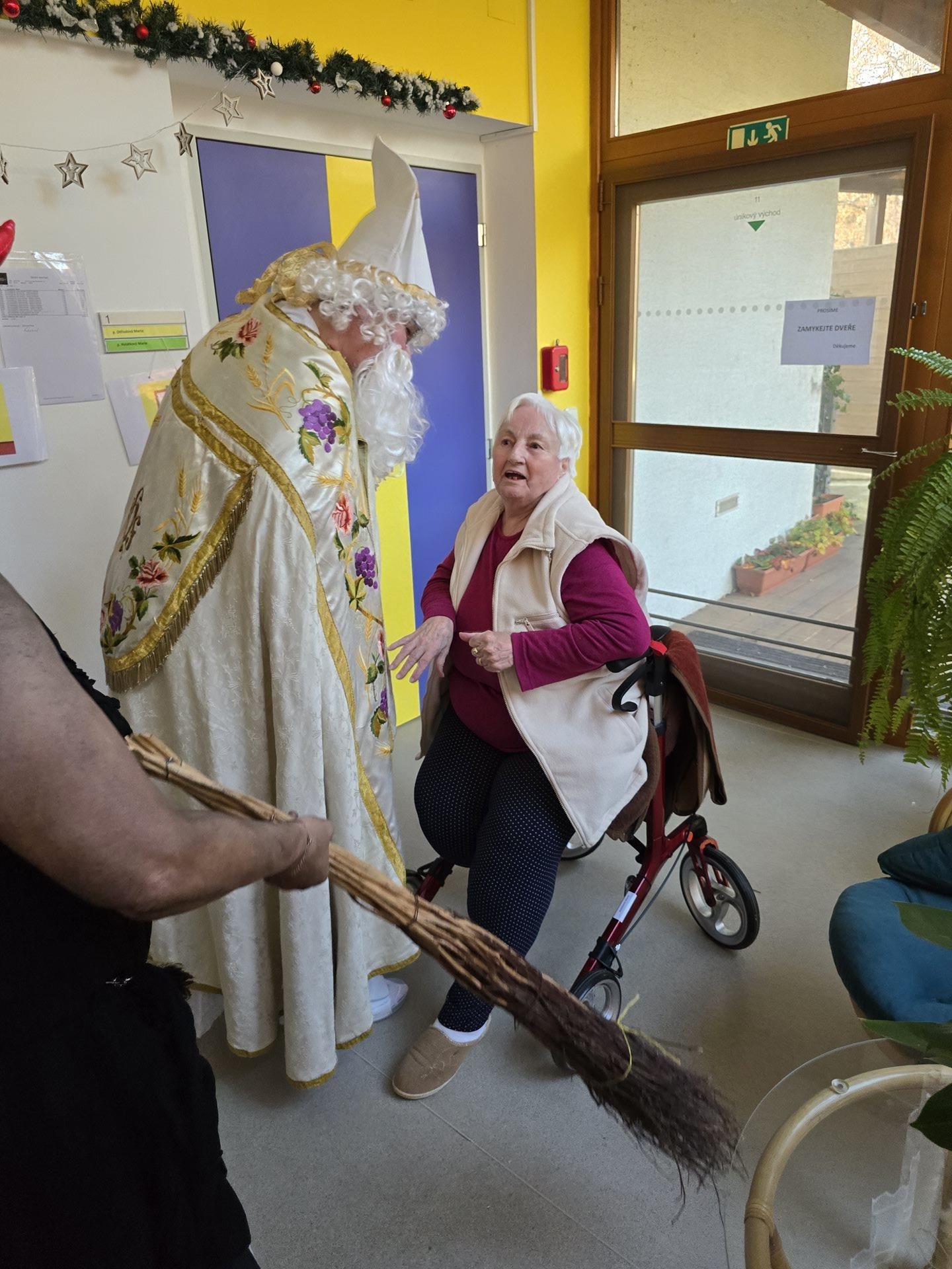 Tak, jako tomu je každý rok v prosinci, tak i letos naše uživatelky / uživatele i personál navštívil Mikuláš se svými přáteli – andělem a čertem. Uživatelé tak měli možnost si připomenout různé vzpomínky, ať už ze svého dětství, či z dob, kdy byly jejich děti ještě malé. Všichni, kteří se této události účastnili, měli velkou radost, že jim náš personál zpestřil odpoledne. Někteří se dokonce odvážili povědět Mikuláši nějakou básničku, říkanku, dokonce i něco zazpívat – byli za to také obdarováni malým balíčkem - v podobě sladkostí a ovoce. Čtvrteční odpoledne si všichni moc užili a nyní už se těší na blíží se období Vánoc.
