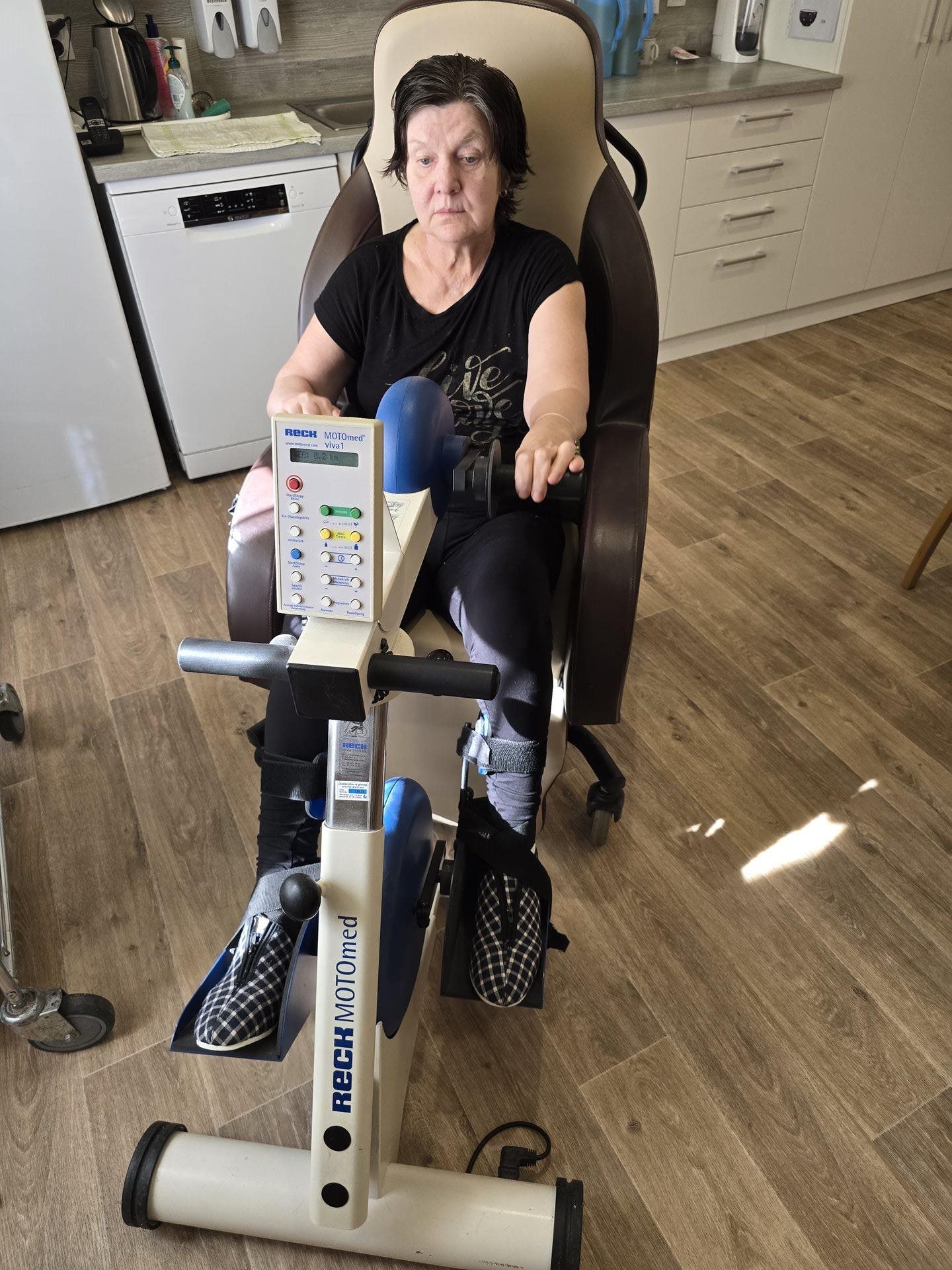 V našem zařízení se snažíme spojovat pohyb s radostí a aktivním zapojením mysli. Při cvičení na motomedu si naše uživatelky i uživatele procvičují dolní končetiny šlapáním, čímž podporují svou kondici i krevní oběh. Cvičení je doplněno např. reminiscencí na téma sportu, kdy si vyprávíme osobní zážitky ze sportovním aktivit. Nechybí ani trénink paměti, kdy si připomínáme významné sportovní osobnosti a jejich úspěchy. Tato kombinace pohybu a vzpomínek přináší našim uživatelům a uživatelkám radost, posiluje fyzické i duševní zdraví a vytváří příjemnou atmosféru pro společně strávený čas.