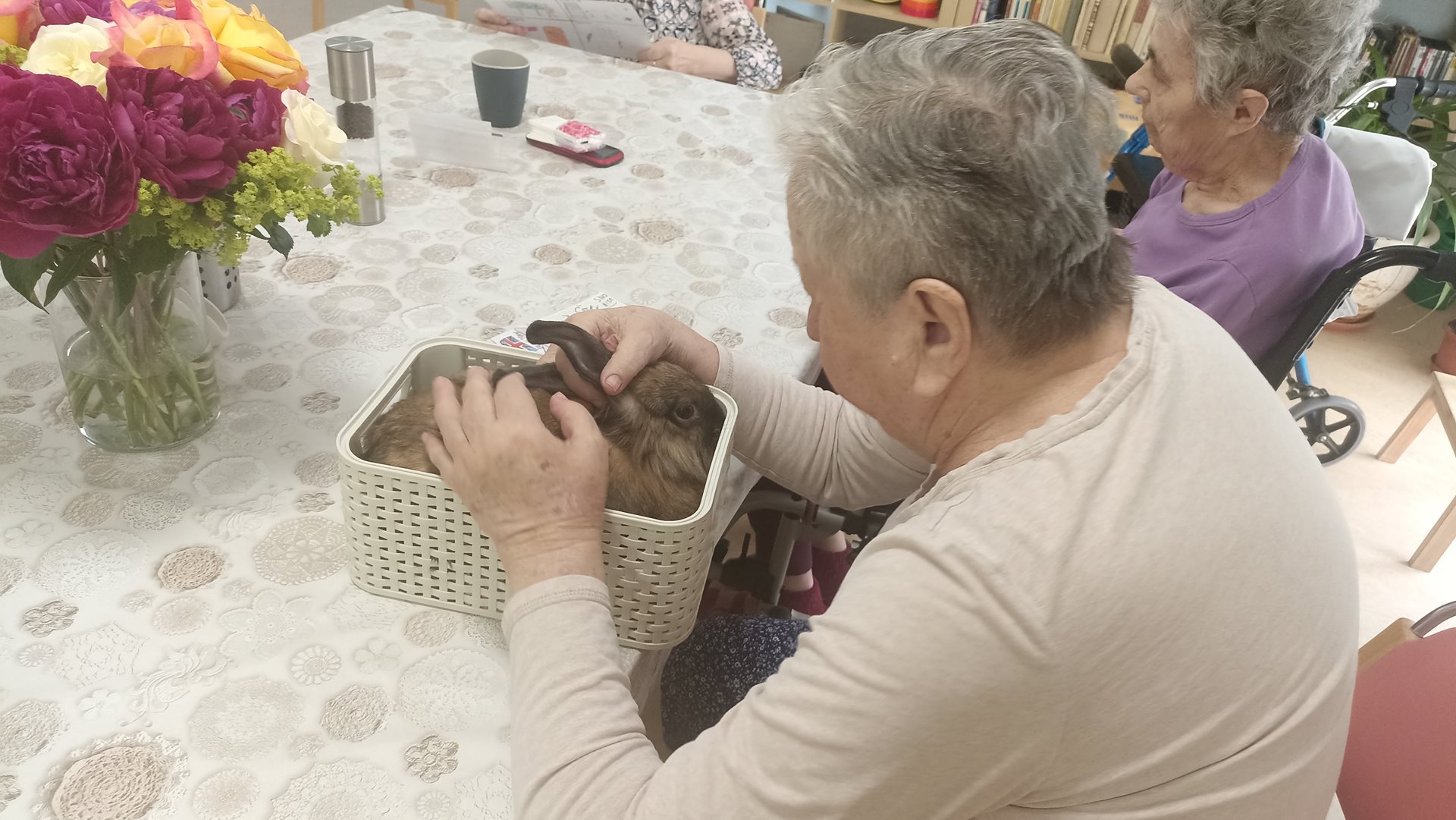 V pondělí dopoledne si uživatelky s pomoci aktivizační pracovnice, procvičily dolní končetiny šlapáním na motomedu, tyto aktivity mají uživatelé velmi rádi. Ti co nešlapali se v rámci zooterapie pomazlili s naším králíčkem a potom jsme předčítali dopisy od dětí z projektu Psaní od srdce. Psaní od srdce je projekt, který už třetím rokem propojuje generace prostřednictvím dopisů a pohlednic. I malé psaní může přinést velkou radost – stačí si najít chvíli času a napsat pár řádků. Uživatelky si takto zpříjemnily pondělní dopoledne.