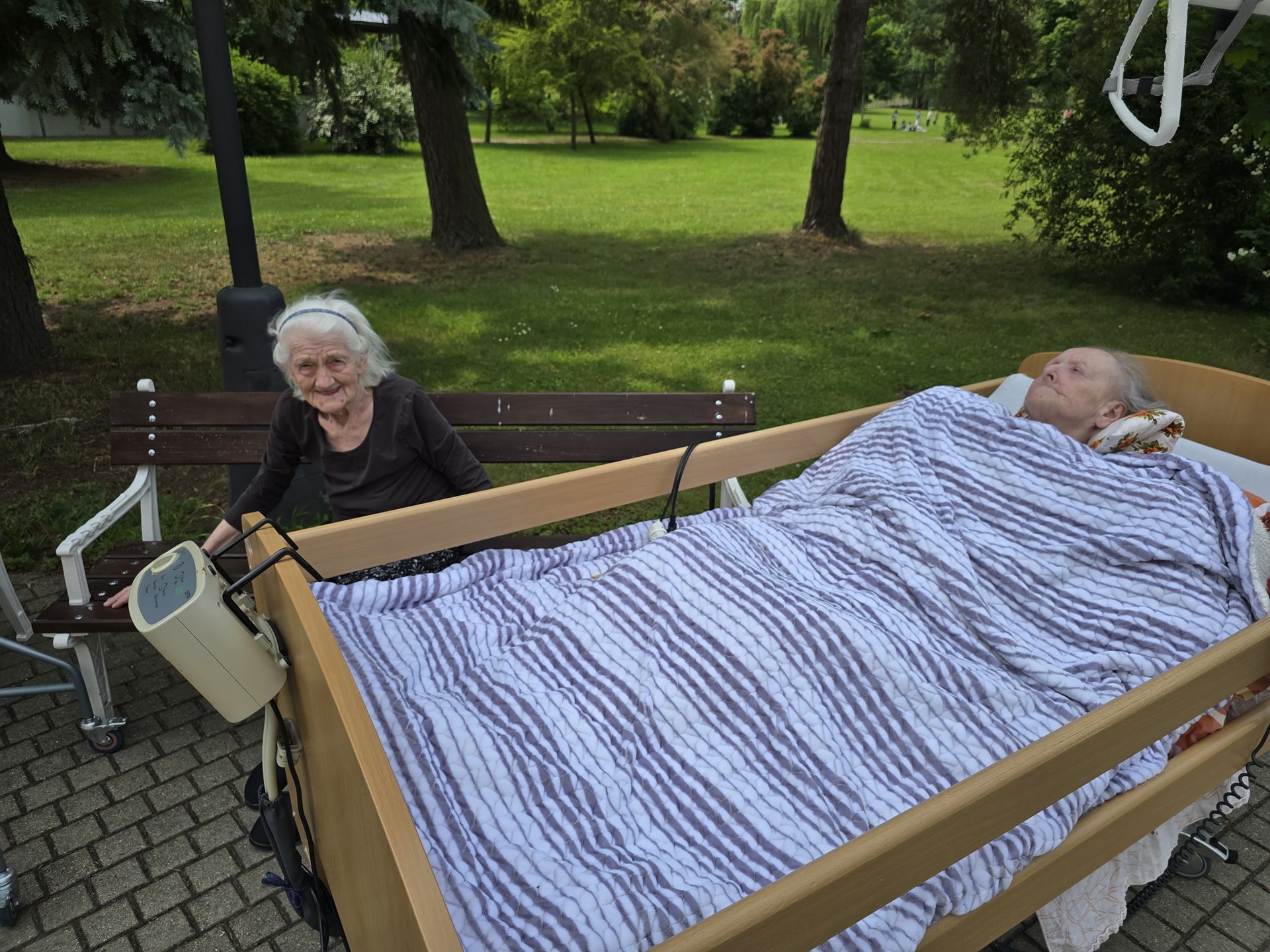 V úterý v odpoledních hodinách jsme s našimi uživatelkami podnikly vycházku před naše zařízení. Slunečné počasí a klidné prostředí nabídly ideální podmínky pro odpočinek i jiné smysluplné aktivity. Během tohoto posezení (odpočívání) probíhala reminiscenční terapie a součástí této aktivity bylo také předčítání z knihy Babička. Tyto chvíle strávené mimo zařízení jsou milým a cenným zpestřením každodenního režimu uživatelek. Uživatelkám tyto chvíle přináší radost a podporují psychickou pohodu.