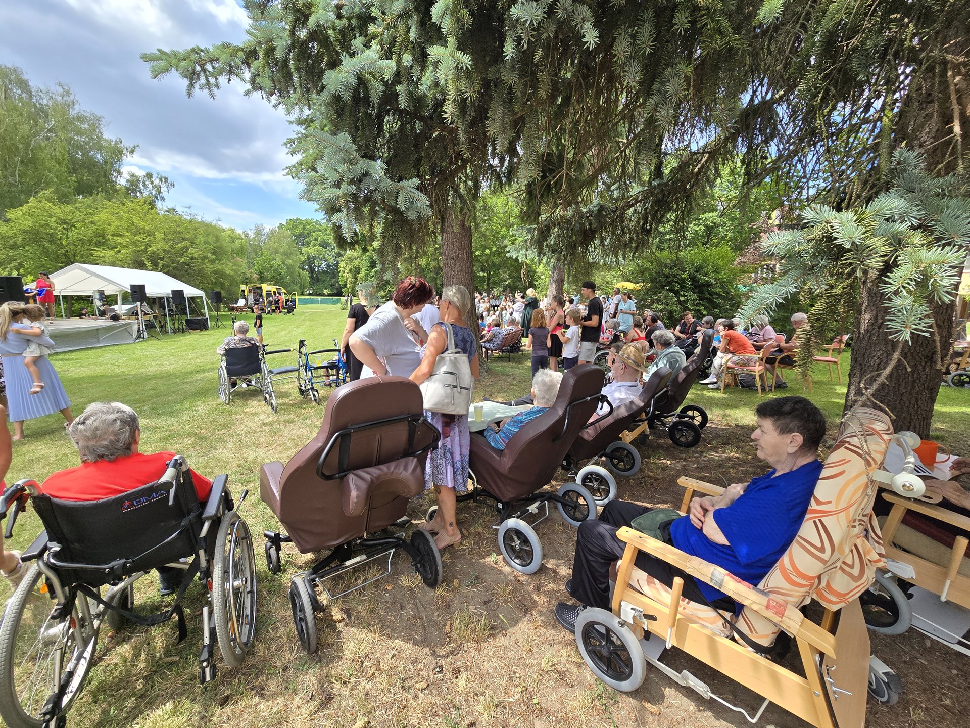 Tohoto významného dne se zúčastnili jak uživatelé domova, jejich rodinní příslušníci, tak návštěvníci ze širokého okolí a samozřejmě i děti, které našim uživatelům vždy vykouzlí úsměv na tváři. Nevšedním zpestřením bylo kouzelnické vystoupení a také vystoupení známého baviče Zdeňka Izera. Návštěvníci měli také možnost si přečíst dopisy zaslané v rámci projektu „Psaní od srdce“. Je až obdivuhodné, kolik lidí si v této uspěchané době našlo alespoň trochu času, aby zpříjemnili, či rozveselili svým dopisem pro ně neznámé seniory. Za toto jím patří velké díky. Troufáme si říct, že tento den si všichni zúčastnění užili naplno, a zároveň si také připomněli, jak moc potřebné sociální služby jsou a jaké místo ve společnosti zaujímají.
