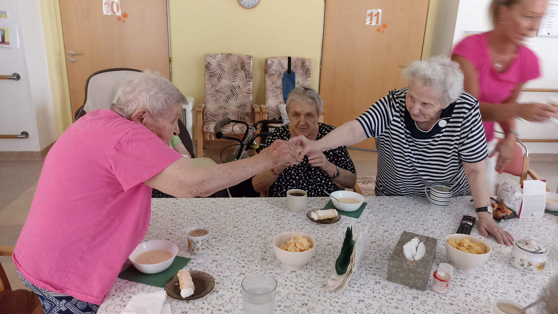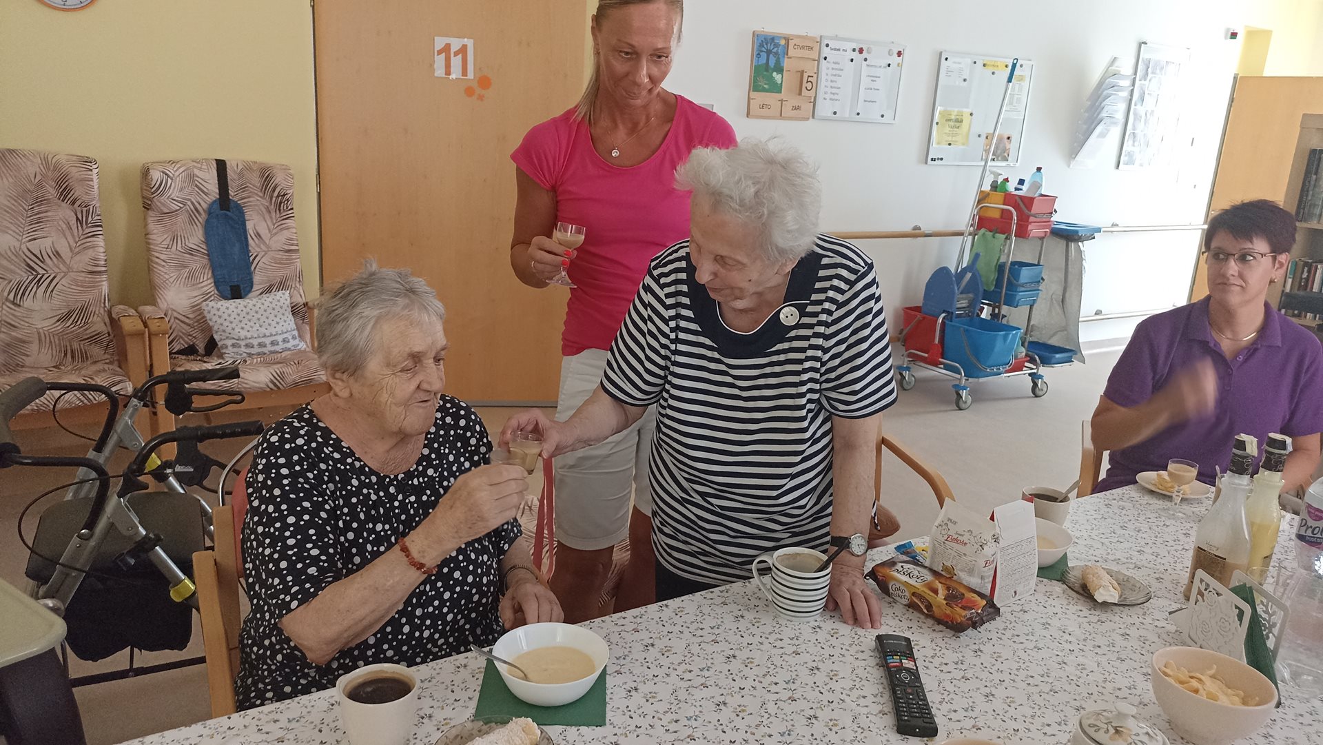 Ve čtvrtek jsme měli moc pěkné odpoledne. Na pavilonu B2 se slavily narozeniny jedné uživatelky, společně jsme poseděli u kávy, pochutnali si na dobrém zákusku a uživatelky si připily na zdraví vaječným koňakem. Bylo to velice příjemné odpoledne pro všechny.