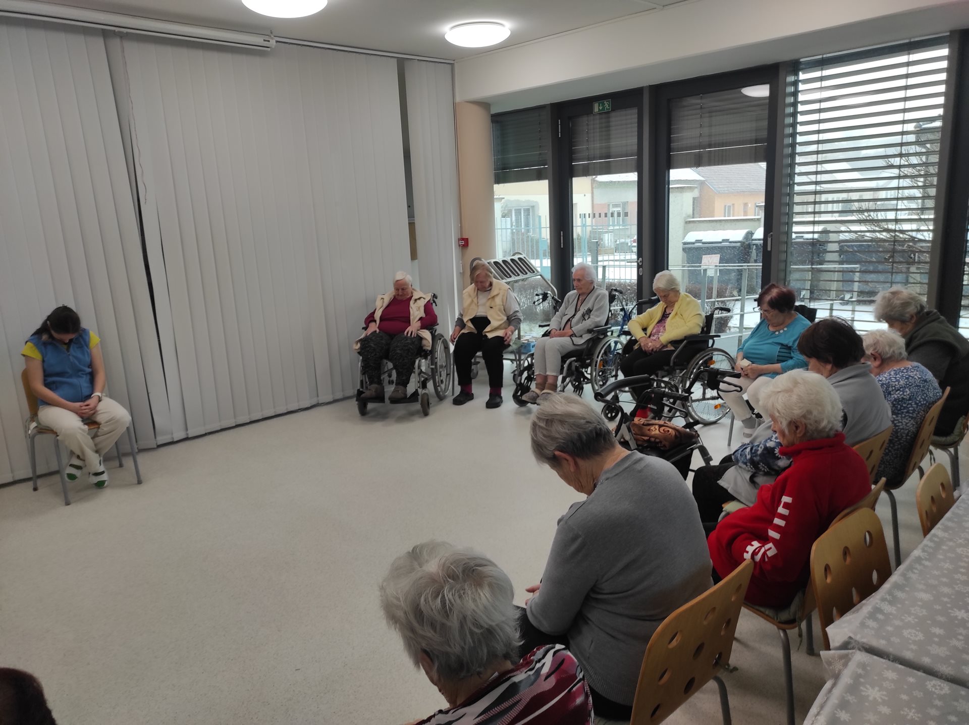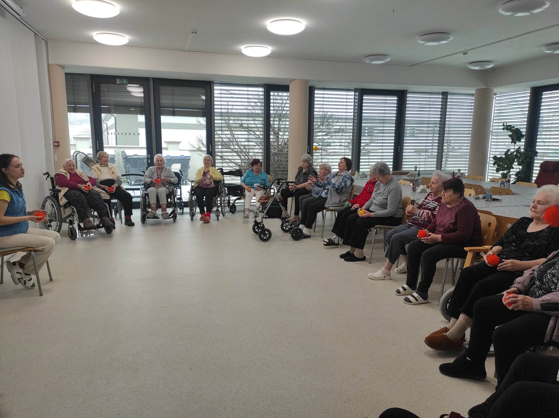 Po svátcích jsme se s klientkami všech tří pavilonů opět setkaly na pravidelném pátečním cvičení. Během svátků jsme měly ve volných chvílích čas nastudovat nové cviky, kterými jsme cvičení obohatily. Zapojily jsme i již tradiční pomůcky – míčky s hrbolky, tzv. „ježky“, dechová i orofaciální cvičení, které jsme zakončily zpěvem písní a recitací básní o chumelení, sněhu a zimě.