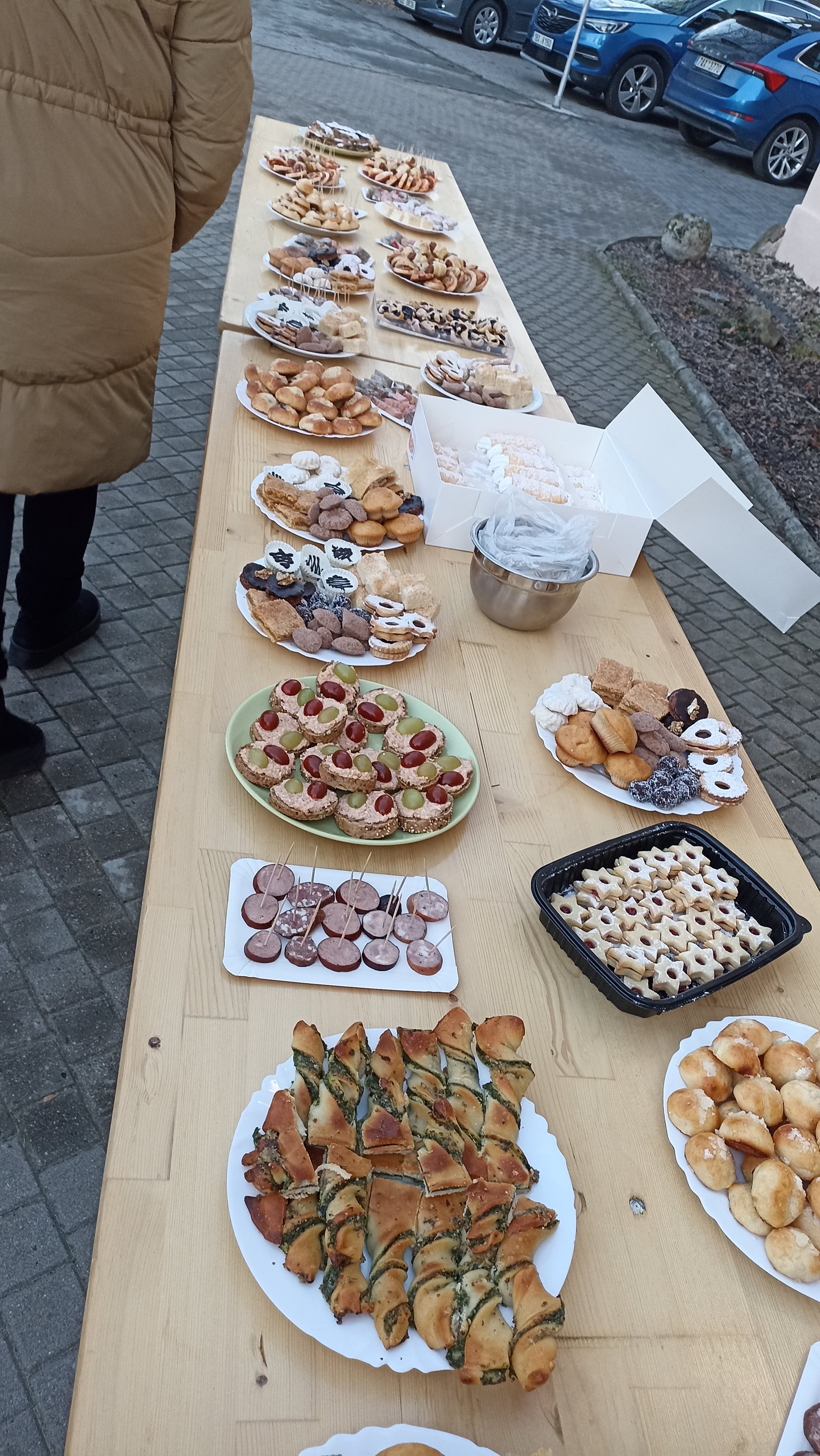 Vzduchem se linula vůně vánočního punče a stoly se prohýbaly pod talíři plnými cukroví, bábovek, trubiček, koláčů, buchtiček, muffinů, ale i slaných tyčinek, štrůdlů, pizza šneků a stromečků a dalších dobrot, které doma napekli a donesli zaměstnanci domova.