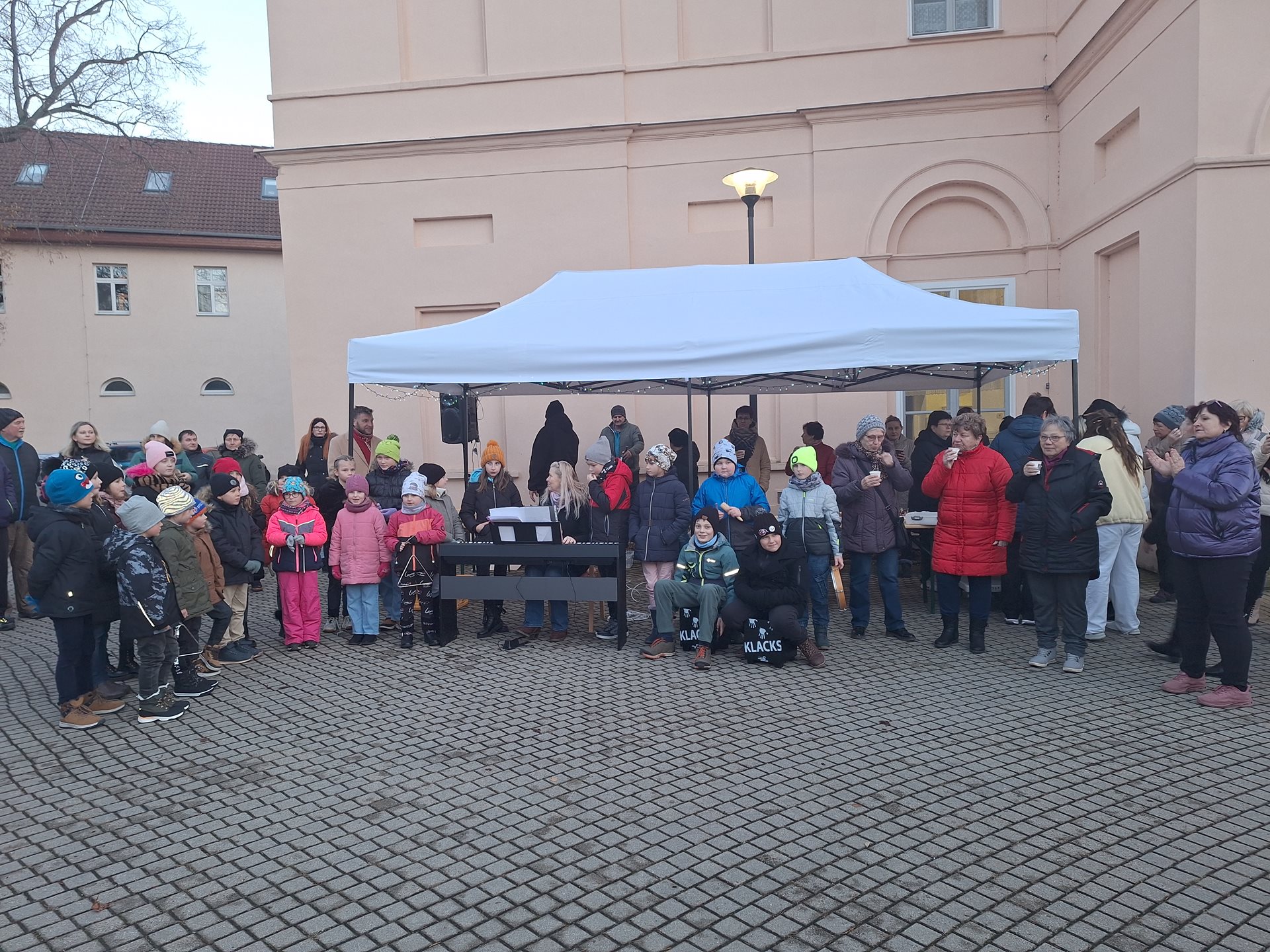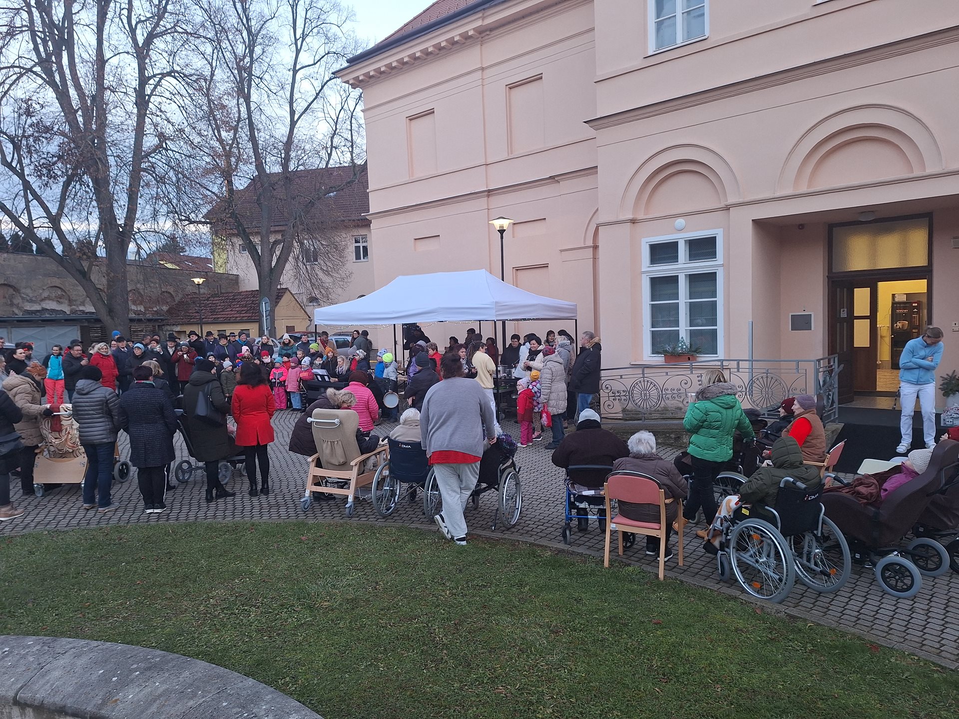 Představte si zimní podvečer, kdy vám jde pára od úst, ale vy se zahřejete horkým vánočním punčem s ovocem. Představte si ozdobený vánoční strom poblíž zámku obklopeného přírodou, který se do tmy rozzáří a vnese světlo do tmavé noci. Slyšíte to? Ten andělský zpěv? To zpívá dětský sbor z místní základní školy. Cítíte tu vůni? To je vůně čerstvě napečeného cukroví, dezertů, slaných „jednohubek“ a jiných laskomin. Představte si, jak v záři vánočních světýlek a za zvuků koled ochutnáváte se svými nejbližšími ořechový rohlíček, který se vám rozpadá v ústech a zapíjíte jej punčem. Docela idyla, no ne? Tak přesně takhle vypadalo setkání u příležitosti rozsvěcení vánočního stromku u našeho Domova. Je dobře, že jste si tuto příležitost nenechali ujít a tuto kouzelnou chvíli prožili s námi, a především se svými blízkými. Přejeme Vám krásný adventní čas!