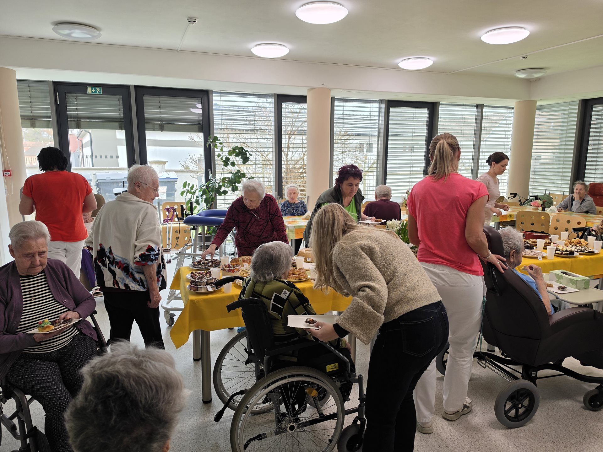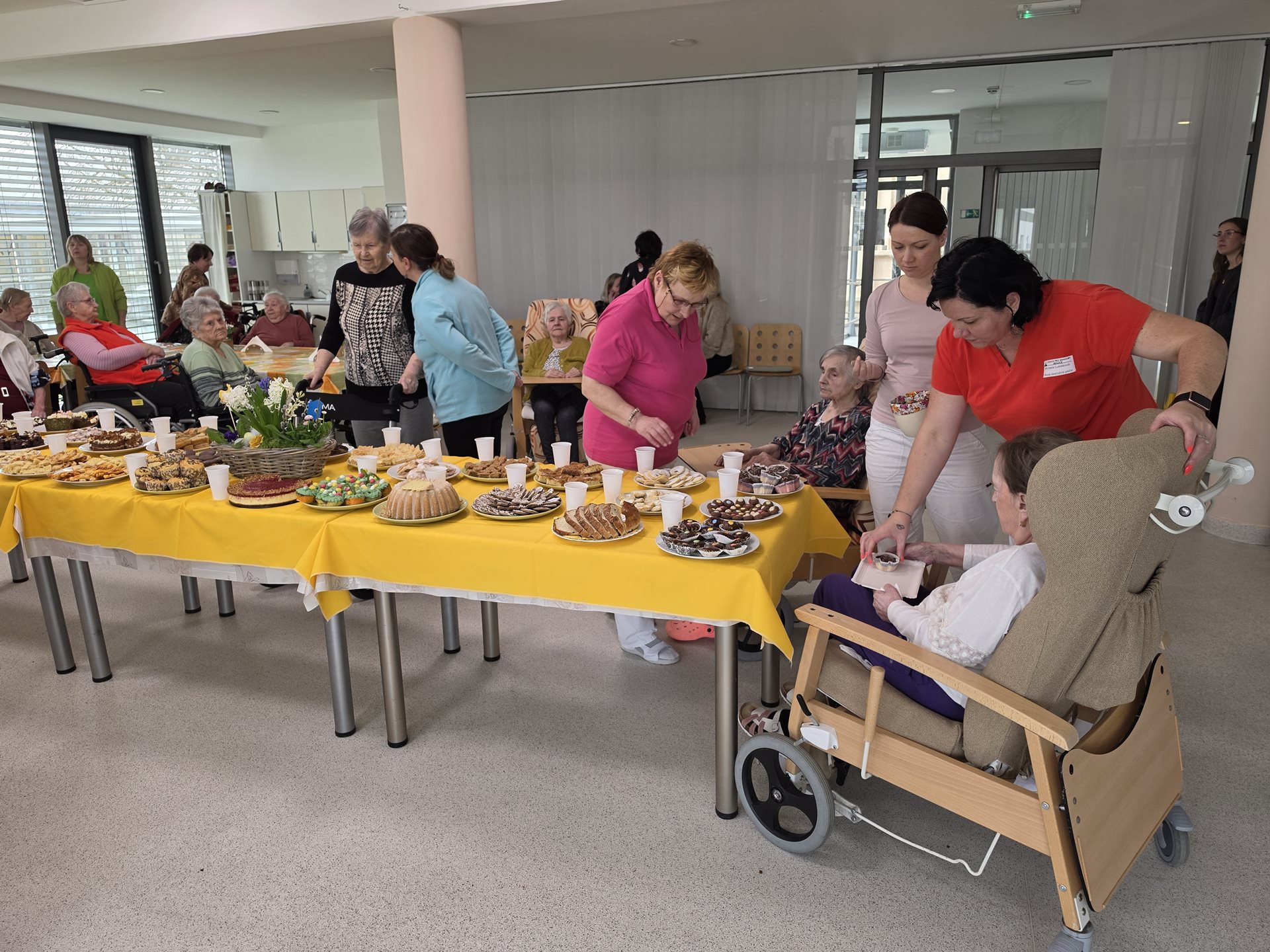 V pondělí se v našem domově pro seniory konala milá a voňavá událost – soutěž o nejlepší velikonoční dezert. Do této soutěže se s velkým nadšením zapojilo celkem 29 zaměstnanců, kteří připravili pestrou škálu tradičních i originálních moučníků. Celé odpoledne se neslo v příjemné a přátelské atmosféře. Naše uživatelky se aktivně zapojily do ochutnávání jednotlivých dezertů, ke kterým byla podávána káva. Poté měly možnost hlasovat a rozhodnout o tom, který moučník jim chutnal nejvíce. První místo si zaslouženě odnesla pracovnice úklidu, jejíž dezert - koláče - zaujal svou chutí i provedením. Druhé a třetí místo obsadily pracovnice kuchyně, které rovněž předvedly vynikající cukrářské umění. Děkujeme všem zúčastněným za jejich úsilí, kreativitu a ochotu zpříjemnit ostatním tento velikonoční čas.