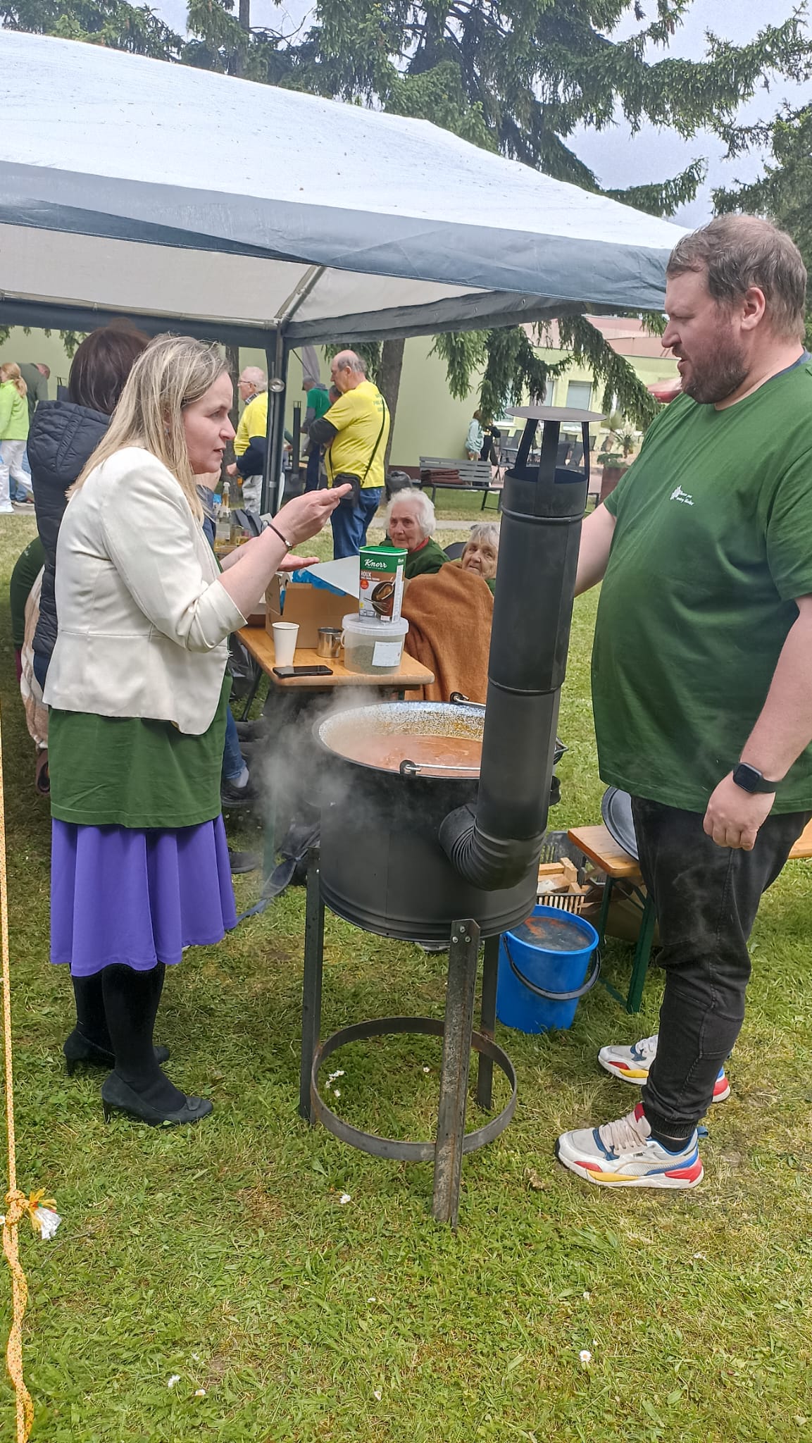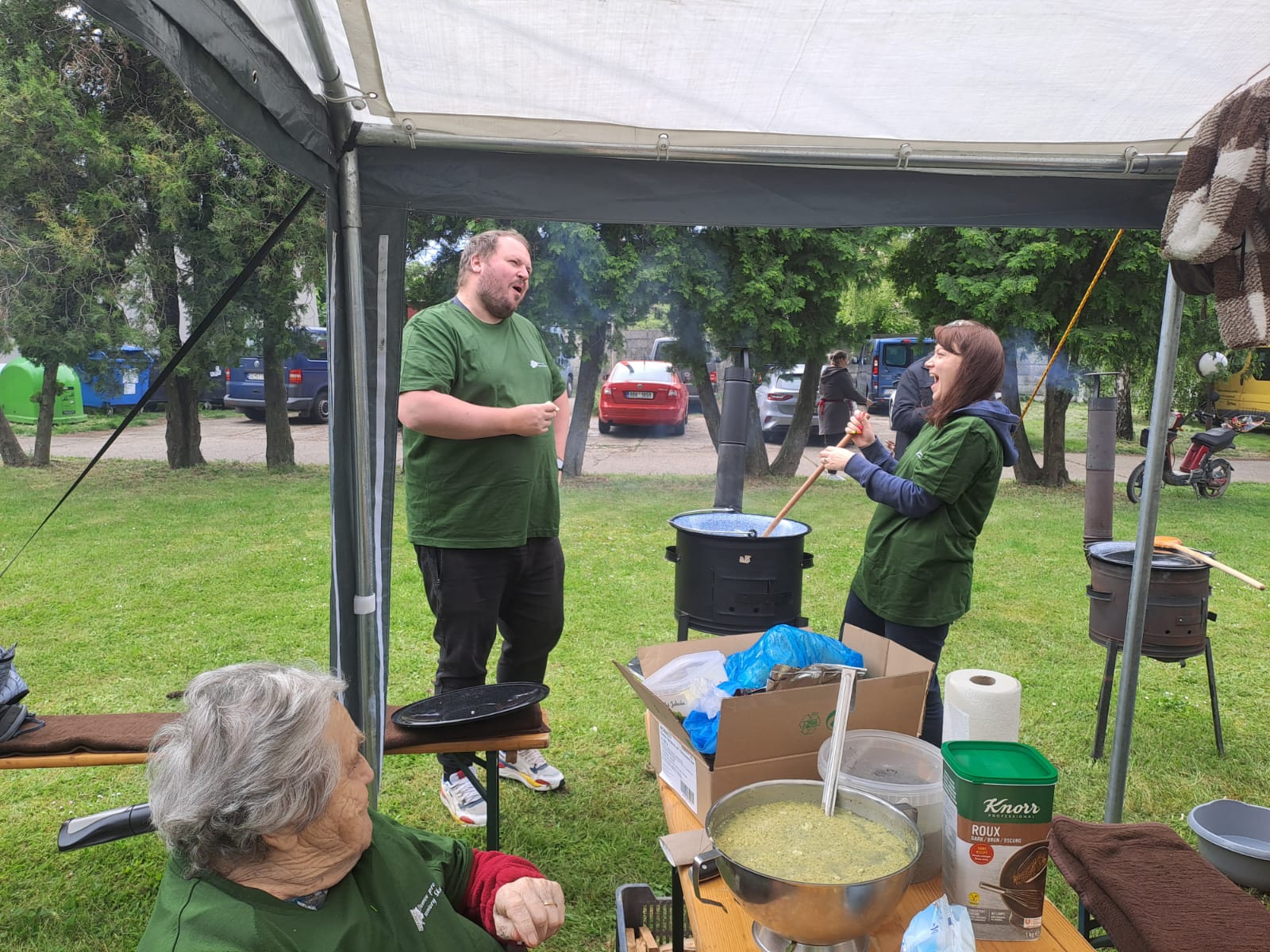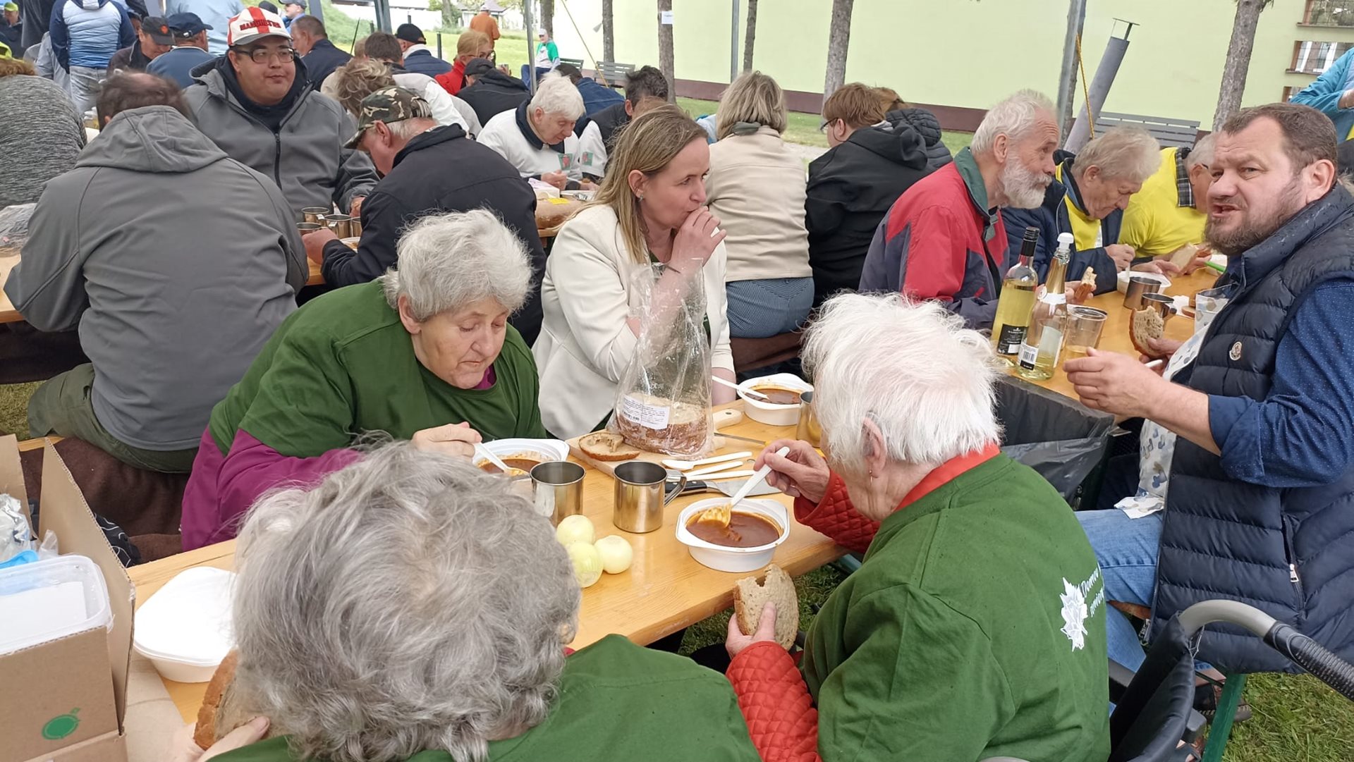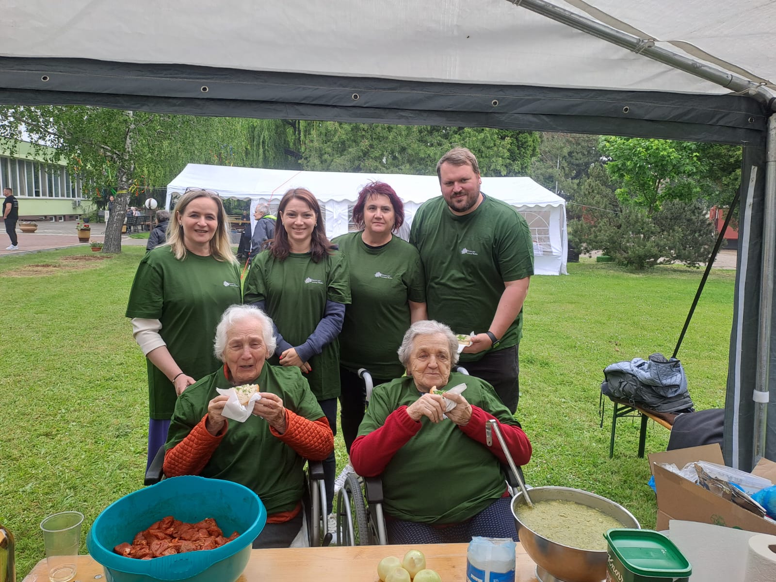 Letošní rok jsme měli možnost se zúčastnit tradiční soutěže ve vaření gulášů, který se každoročně koná ve spřáteleném zařízení ve slovenské Seredi. Na cestu jsme se s našimi seniorkami vydali v brzkých ranního hodinách, a i navzdory tomu byly naše uživatelky velmi čilé a plny očekávání. Slunečné dopoledne odstartovalo slavnostním zahájením, na kterém nechyběla všudypřítomná hudba, a tak bylo na tanečním parketu před domovem stále plno. Soutěžní týmy, složené z několika uživatelů a zaměstnanců každého z pozvaných domovů, se sešli kolem kotlíků s vlastními „osvědčenými“ recepty – někteří vsadili na tradiční maďarský styl, jiní přidali moderní nádech nebo tajné ingredience, které se dědí z generace na generaci. Přestože šlo o soutěž, hlavním cílem bylo propojit obyvatele a zaměstnance domovů. Každý měl možnost se zapojit – někdo krájel cibuli, jiný brambory, další míchal smažící se cibulku a ostatní loupali česnek. V čase čekání na to „až maso změkne“ jsme měli možnost ochutnat báječné škvarkové pagáče a chléb se sádlem a pažitkou. Kolem poledne se celým dvorem domova linula vůně čerstvého guláše. Porota ochutnávala poctivě jeden vzorek po druhém, a nakonec vydala verdikt, že nejlepší guláše uvařili zaměstnanci a uživatelé 3 slovenských domovů. Tyto týmy za své úsilí dostali tašku s dobrotami, dřevěnou vařečku s logem sereďského domova a hlavně – obrovský potlesk. Vítězný tým měl tak obrovskou a neskrývanou radost, že jsme jim jejich vítězství ze srdce přáli, neboť nejde jen o to, kdo má nejlepší recept – jde o to být spolu, dělat něco smysluplného a sdílet radost. Soutěž ve vaření gulášů v domově pro seniory není jen kulinářským zážitkem – je to symbol komunity, sounáležitosti a aktivního stáří. A jak říkají sami účastníci: „Nie je dôležité vyhrať, ale variť srdcom.“ Den plný smíchu, vůně papriky a přátelského zápolení opět ukázal, že chuť do života ani s přibývajícími lety neubývá.