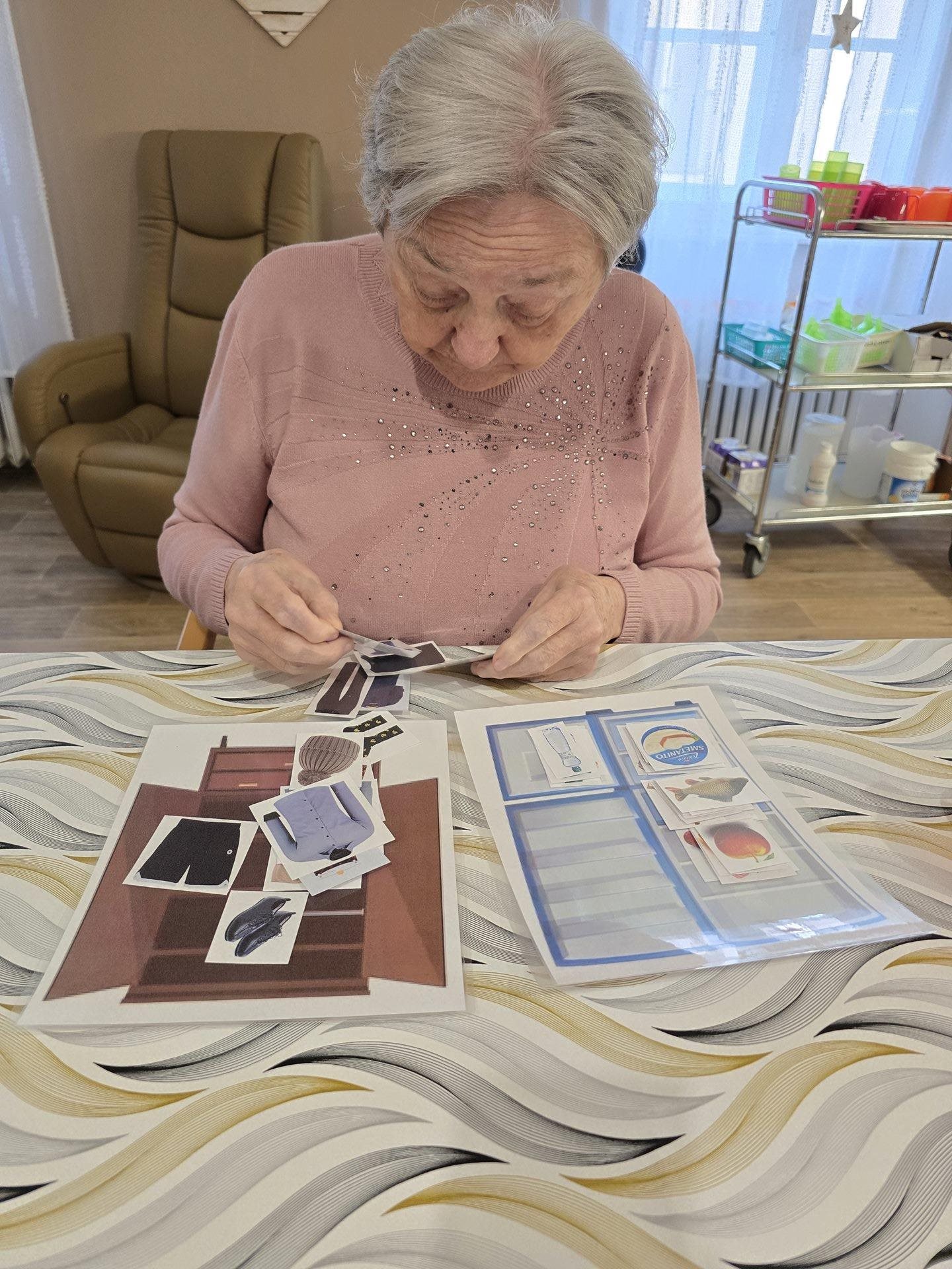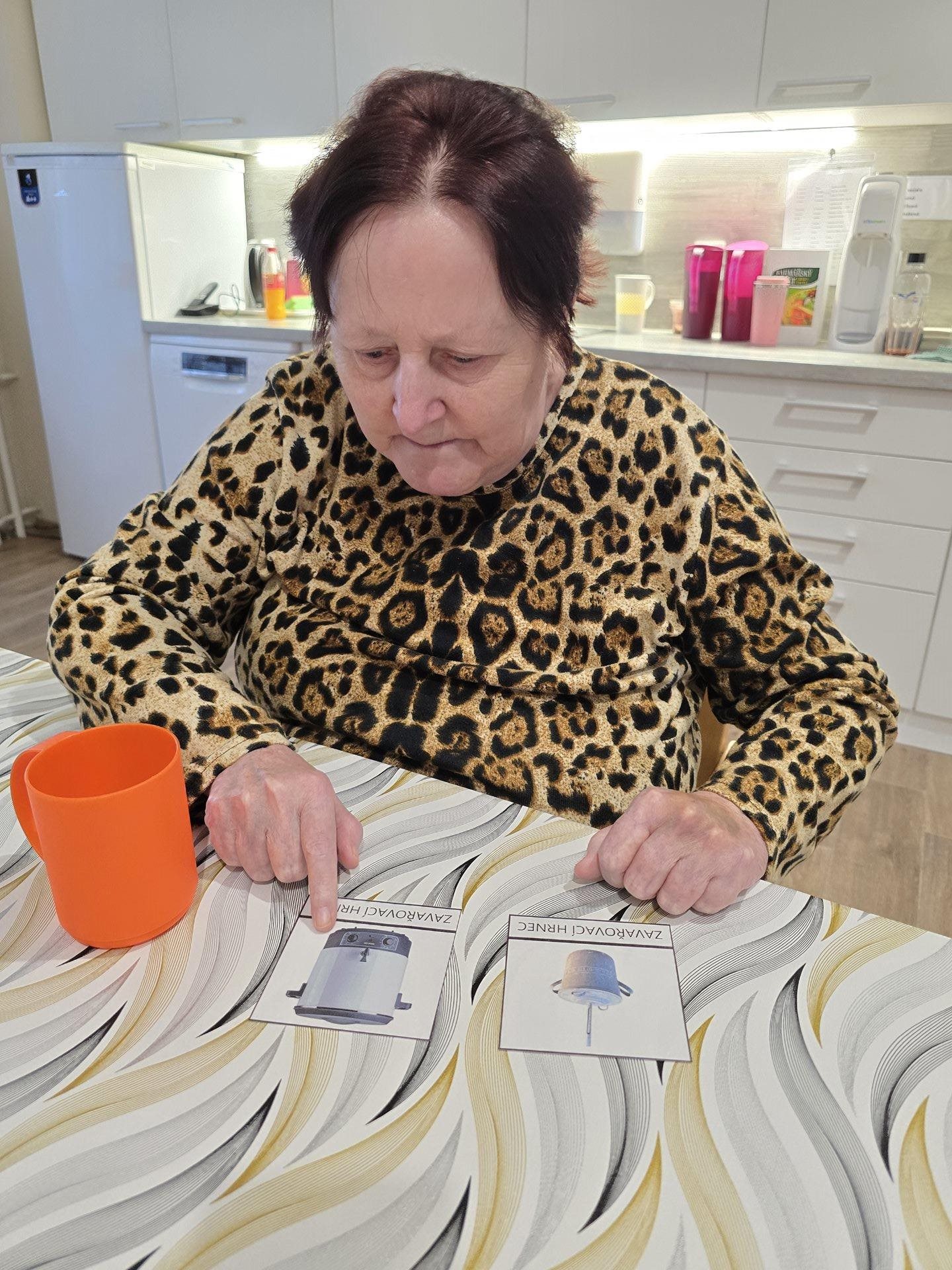 Úterní dopoledne si uživatelky procvičily paměť prostřednictvím nových cvičení. Nejprve uživatelky rozdělovaly a přiřazovaly potraviny a oblečení tam, kam patří (lednice a šatní skříň), v tomto procvičování paměti se uživatelkám dařilo. Poté následovalo procvičení paměti prostřednictvím kartiček (dříve a dnes). U těchto obrázků jsme si s uživatelkami povídaly o těchto věcech různé informace i to, zda tuto věc měly doma, případně k čemu ji využívaly. Uživatelkám se dařilo a mohly si tak připomenou dobu jejich mládí.
