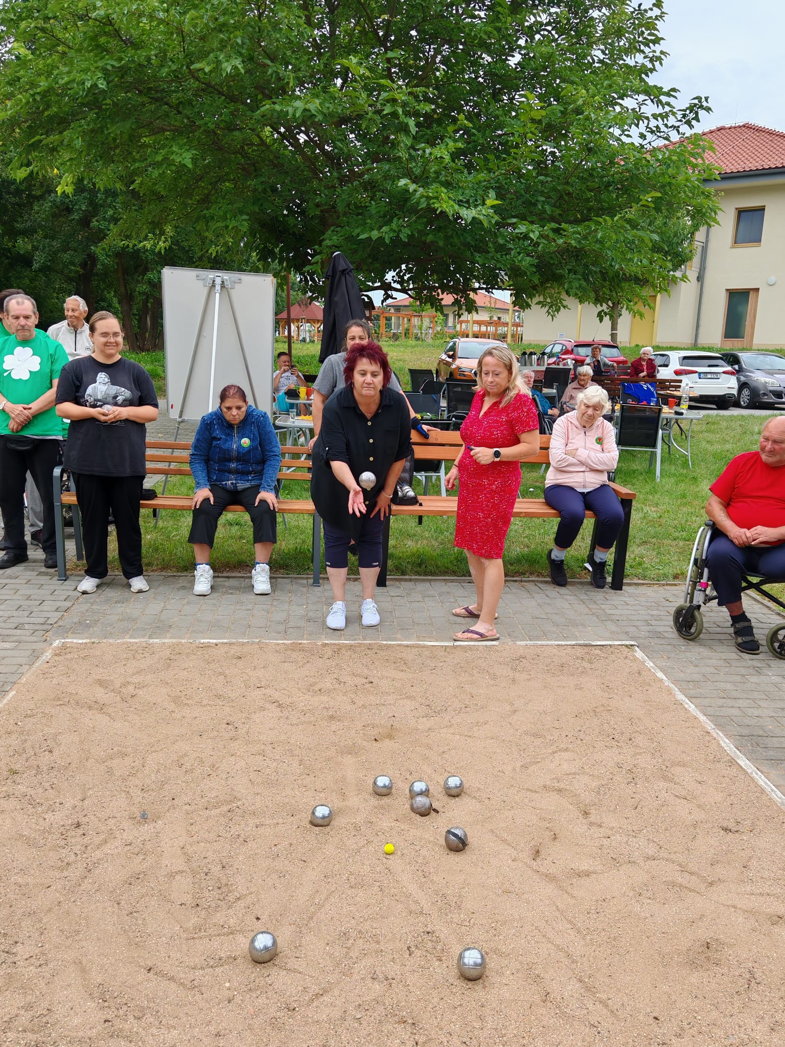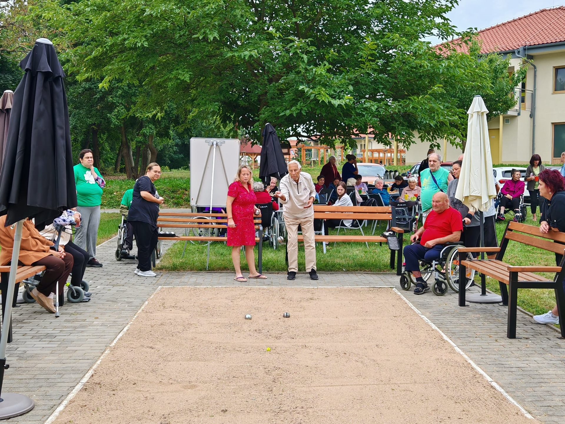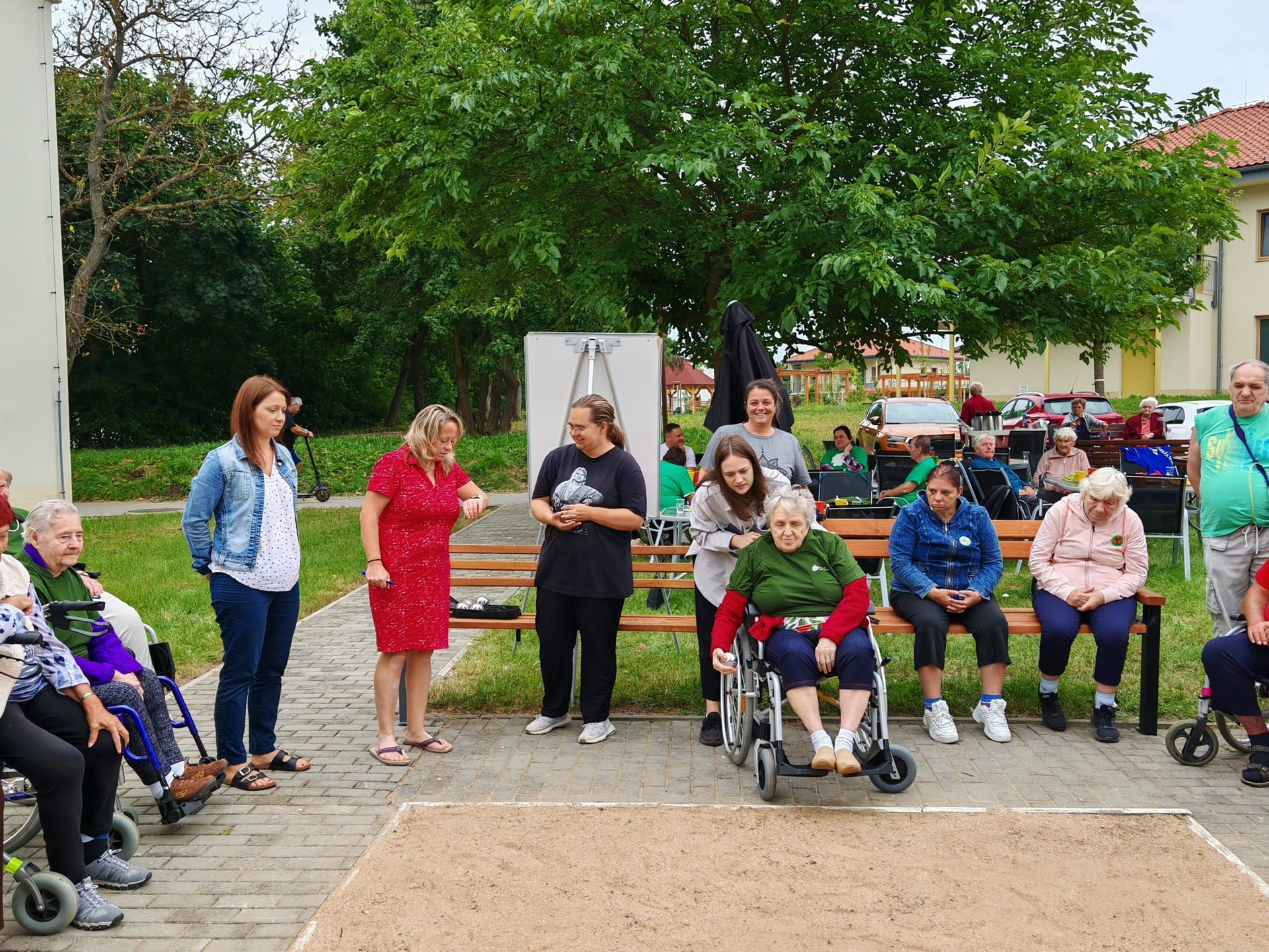 Naše uživatelky se zúčastnily tradičního turnaje v pétanque, který se konal ve spřáteleném domově v Sokolnicích. Do soutěžního klání se zapojily také týmy z Klentnice a ze slovenské Seredě, takže nechyběla přátelská atmosféra a příjemné sportovní napětí. Naše uživatelky si vedly velmi dobře a nakonec vybojovaly krásnou bronzovou medaili. Nešlo však jen o sportovní výsledek – celý den byl především ve znamení radosti z pohybu a vzájemného povzbuzování. Velkým potěšením byl i chutný oběd, který po sportovních výkonech přišel vhod – řízek s brambory všechny účastníky příjemně posílil a podávaná káva se zákuskem a zmrzlinou tento zážitek ještě umocnila. Všichni účastníci se již nyní těší na další ročník, který opět přinese pohyb, přátelství a sportovního ducha. Děkujeme pořadatelům za skvělou organizaci, přípravu i za srdečné přijetí a krásně prožitý den.