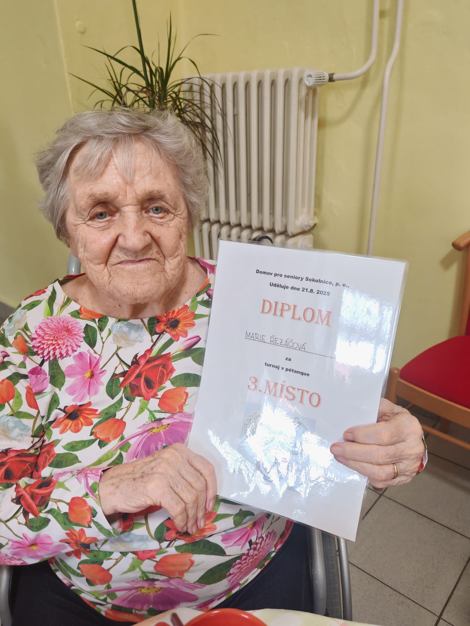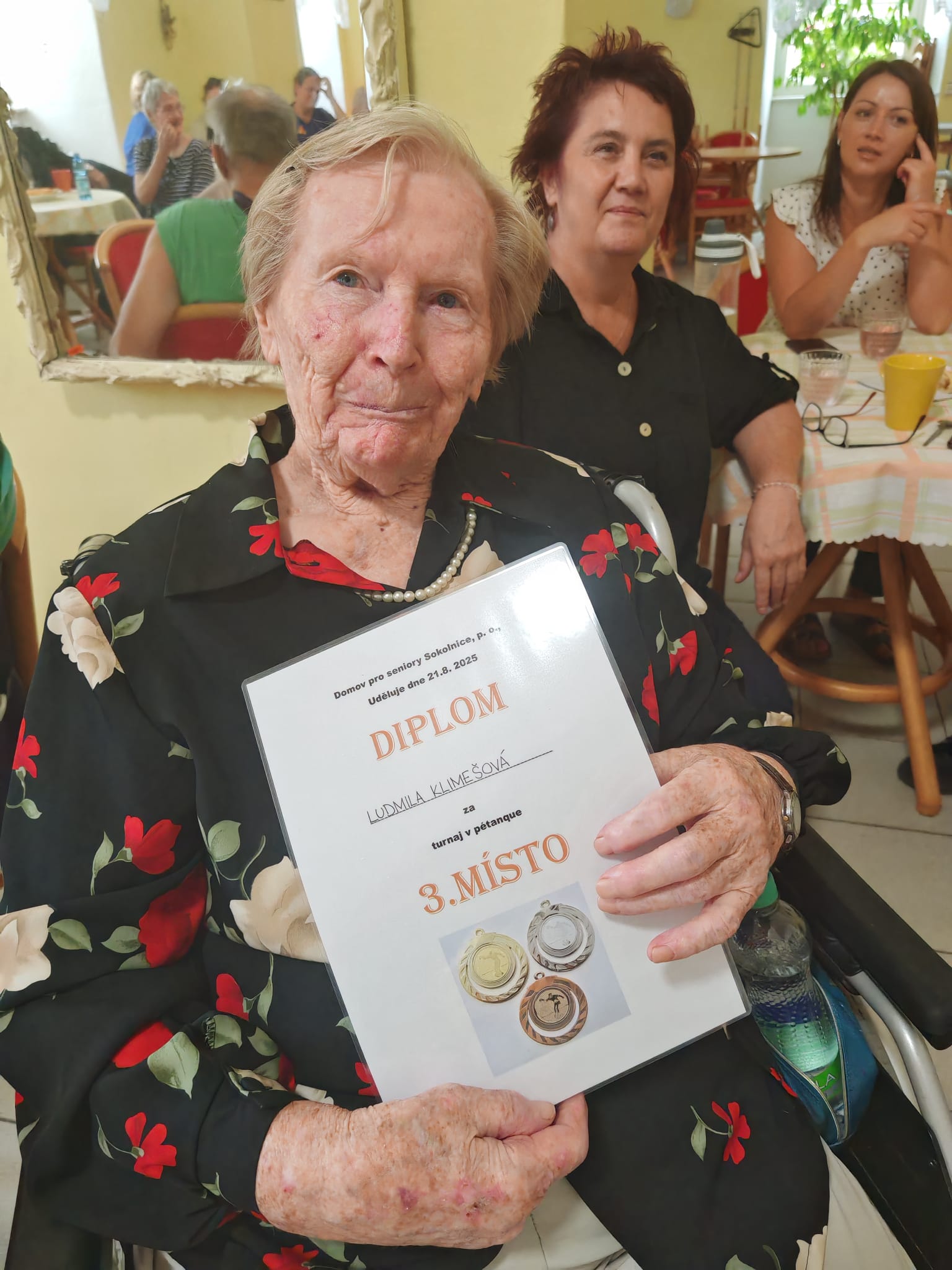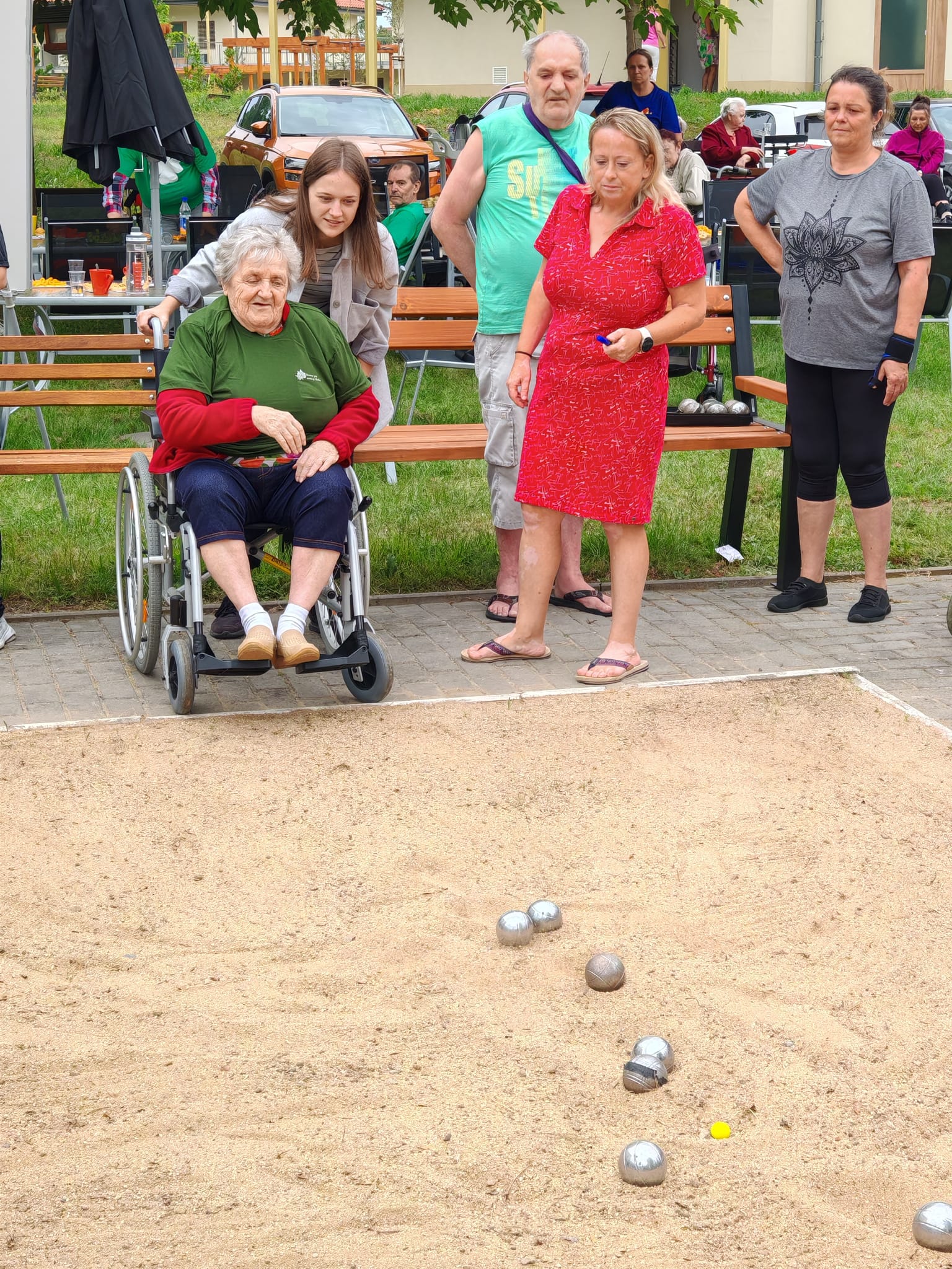 Naše uživatelky se zúčastnily tradičního turnaje v pétanque, který se konal ve spřáteleném domově v Sokolnicích. Do soutěžního klání se zapojily také týmy z Klentnice a ze slovenské Seredě, takže nechyběla přátelská atmosféra a příjemné sportovní napětí. Naše uživatelky si vedly velmi dobře a nakonec vybojovaly krásnou bronzovou medaili. Nešlo však jen o sportovní výsledek – celý den byl především ve znamení radosti z pohybu a vzájemného povzbuzování. Velkým potěšením byl i chutný oběd, který po sportovních výkonech přišel vhod – řízek s brambory všechny účastníky příjemně posílil a podávaná káva se zákuskem a zmrzlinou tento zážitek ještě umocnila. Všichni účastníci se již nyní těší na další ročník, který opět přinese pohyb, přátelství a sportovního ducha. Děkujeme pořadatelům za skvělou organizaci, přípravu i za srdečné přijetí a krásně prožitý den.