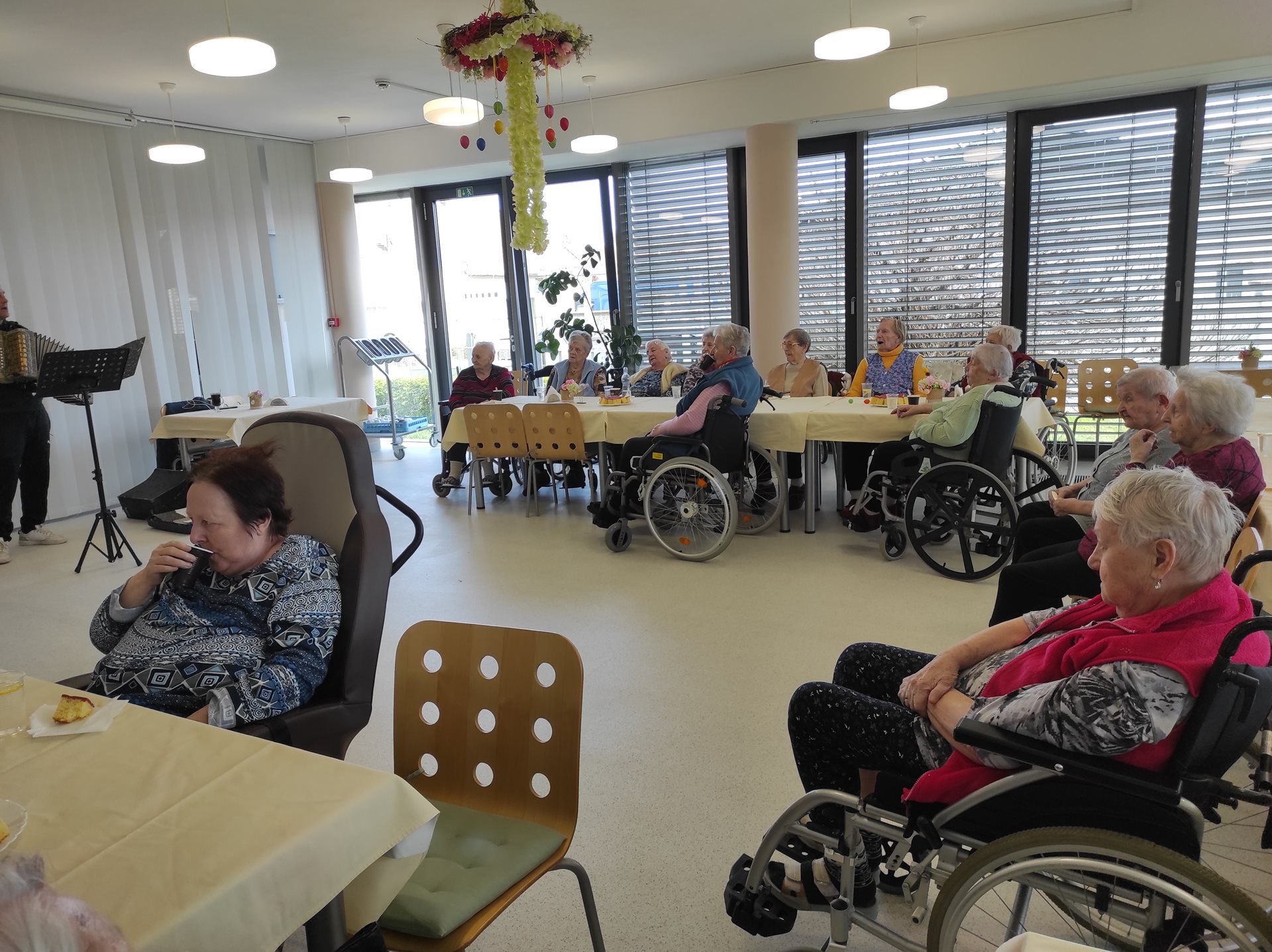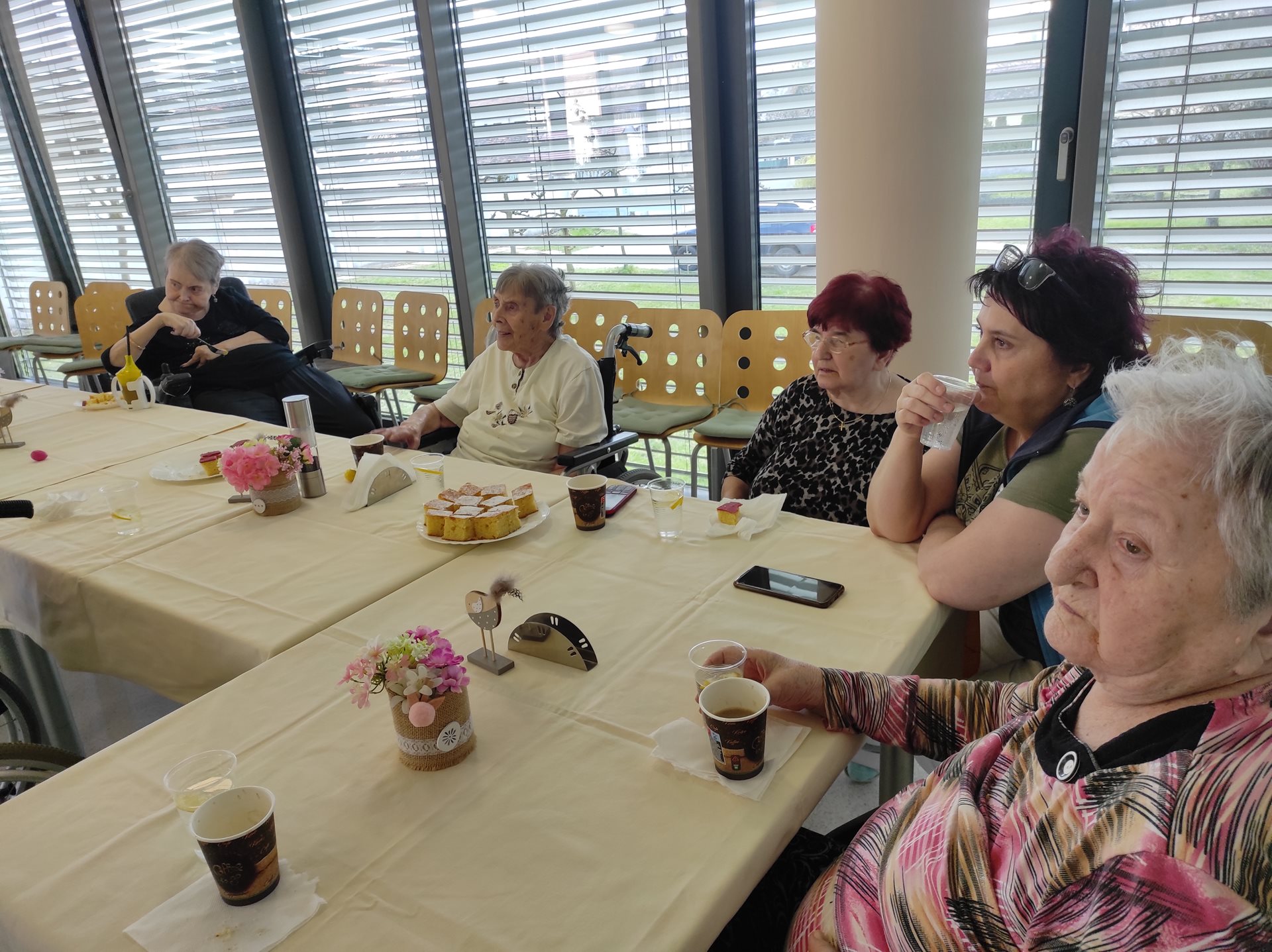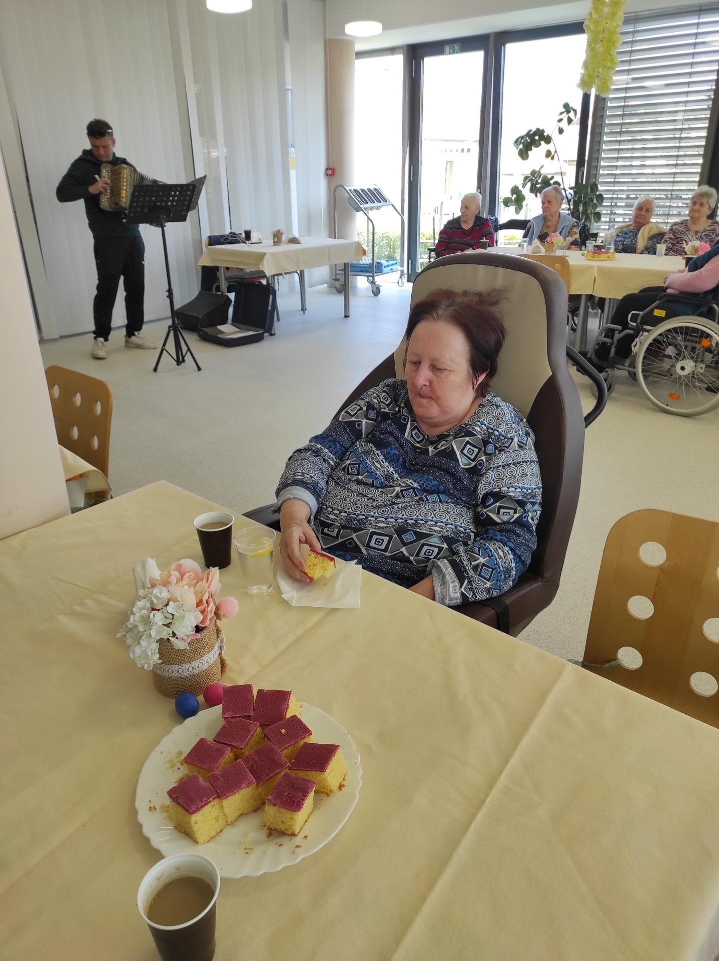 Středeční odpoledne se neslo v duchu přicházejících Velikonoc. Z velké jídelny na pavilonu B se ozýval zpěv doprovázený harmonikou, při kterém si uživatelky vychutnávaly kávu a dezert. V zámecké kavárně pak měli uživatelé a rodinní příslušníci možnost zakoupit sobě či svým blízkým velikonoční dekorace na stůl, závěsné věnce, zápichy do květináčů a v neposlední řadě také perníčky a sušené ovoce.