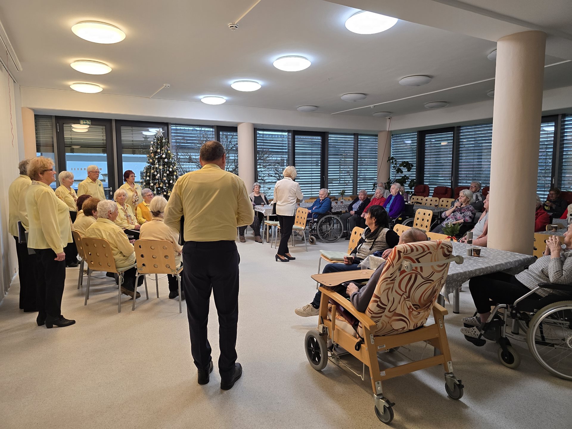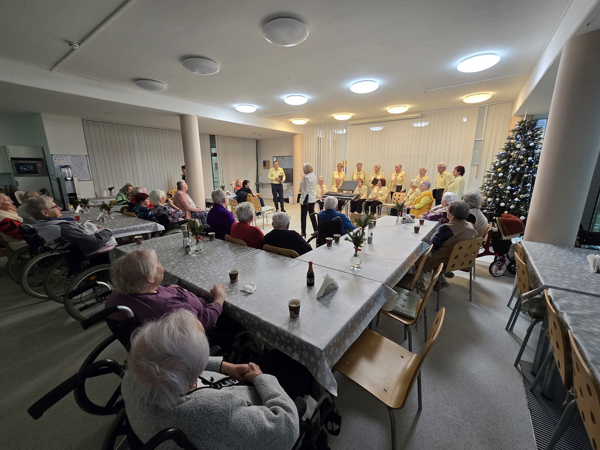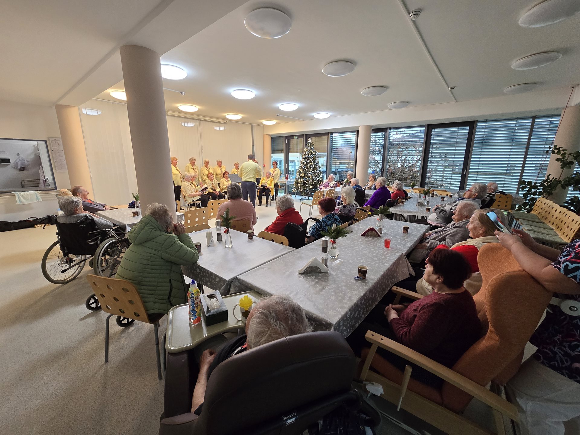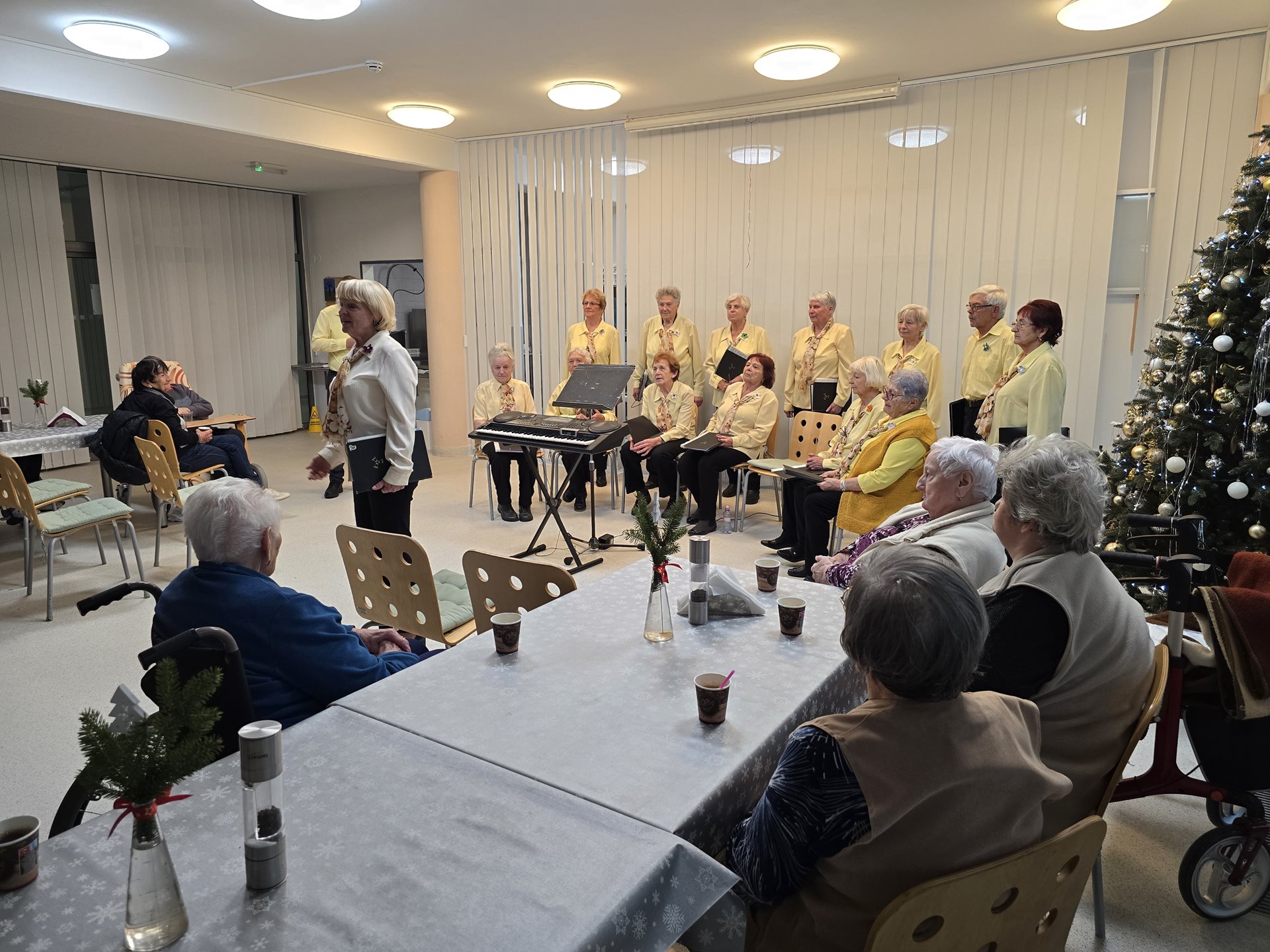 Sbor Bádule, který je známý svým přátelským duchem a energií, předvedl v úterý pestrý program složený z písní, které byly upraveny pro sborový zpěv. Mnozí uživatelé si písně pamatovali už z mládí a tak si je s chutí pobrukovali. Vystoupení trvalo přibližně hodinu a doprovázely ho úsměvy, potlesk i dojetí. Těšíme se, až nás sbor znovu poctí svou návštěvou.