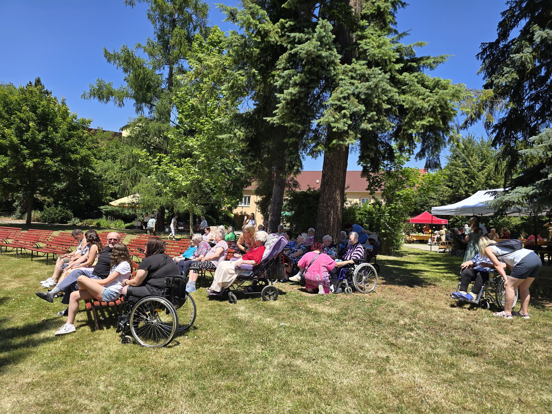 V sobotu, dne 21. června se v zámeckém parku našeho Domova pro seniory konala nově Zahradní slavnost, která přinesla radost a příjemné chvíle všem přítomným. Slavnost oficiálně zahájila paní ředitelka Mgr. Michaela Králová, Dis., spolu se starostou obce Skalice panem Rudolfem Křepelou, místostarostou z obce Morašice panem Mgr. Lukášem Bartuňkem a poslancem panem Ing. Miroslavem Zborovským. Jejich milá slova otevřela program plný hudby, tance i zábavy. O kulturní zážitek se postarali žáci Základní školy Skalice se svým tanečním vystoupením, následovala poté ukázka tanečního vystoupení Moniky Vogelové, kouzelník Katonas nás uhranul svými kouzly a pobavil náš také oblíbený herec a bavič pan Lukáš Pavlásek, který sklidil velký potlesk. Bohaté občerstvení zahrnovalo cukrovou vatu, točenou zmrzlinu, kávu, párek v rohlíku, gyros s hranolkami, točené pivo i osvěžující bezovou limonádu. Návštěvníci si také mohli prohlédnout jarmark s výrobky našich šikovných uživatelek, které svými nápaditými pracemi potěšily nejednoho hosta a v jednom ze stánků probíhala také ochutnávka vín. Děkujeme všem, kteří se na přípravě slavnosti podíleli, a těšíme se na další společná setkání.