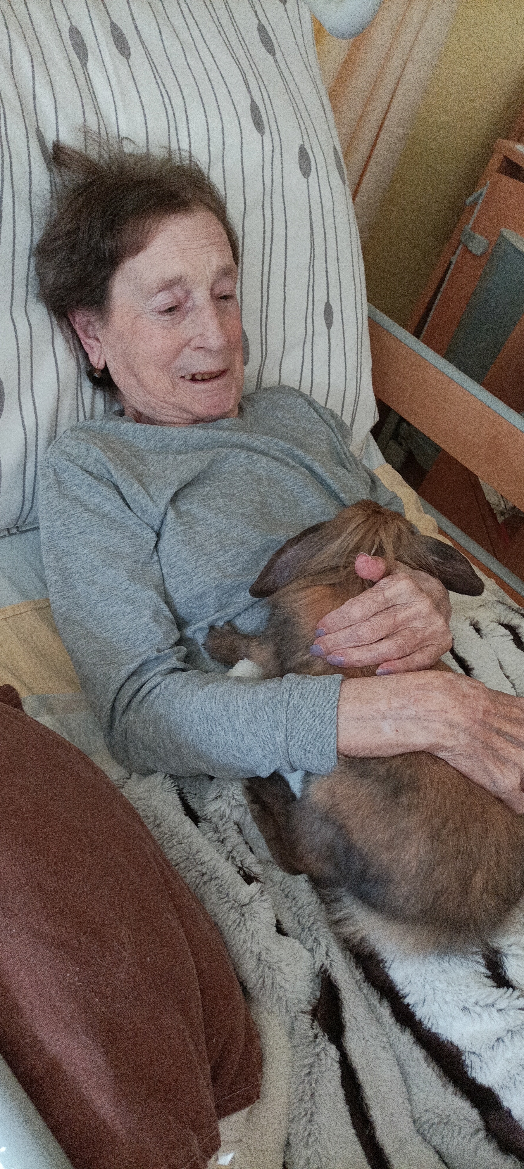 Tento týden na pavilon Z zavítal náš oblíbený králíček Karlička. Naši uživatelé / uživatelky mají vždy radost, když s nimi králíček stráví nějaký ten čas, kdy si jej mohou hladit nebo na něj mluvit a nebo jen pozorovat, jak králíček pobíhá po lůžku. Králíček našim uživatelům vždy vykouzlí úsměv na tváři a vytvoří příjemnou a poklidnou atmosféru.