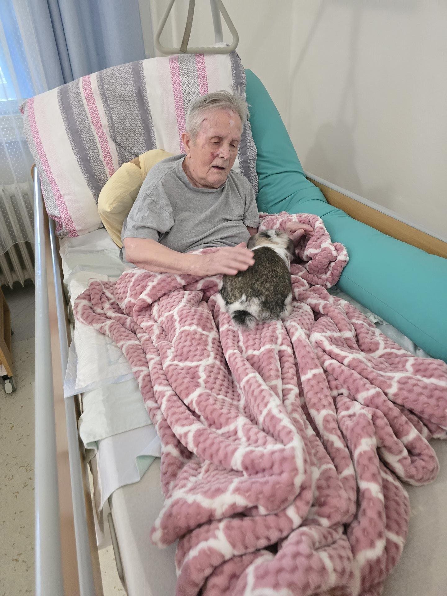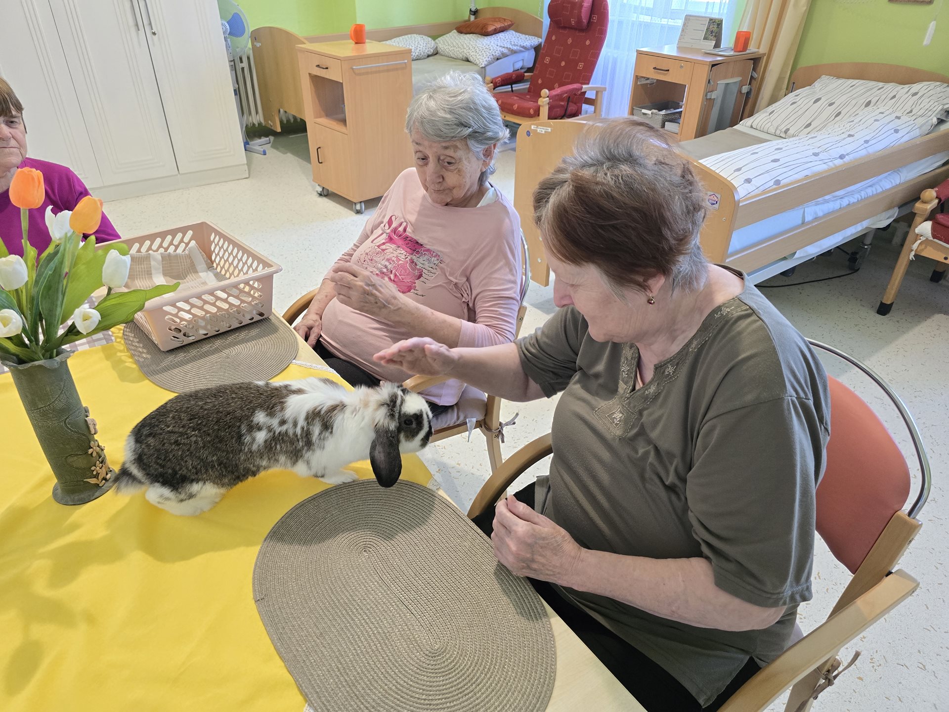 Pondělní dopoledne si uživatelky a uživatele užívali našeho místního králíčka Fidorku. Aktivizace s králíkem má spoustu pozitivních účinků - výhod, a to nejen pro seniory – např. relaxace, pocit potěšení a klidu nebo jen tak si hladit králíka a povídat si u toho s ostatními. U této terapie si uživatelky také procvičily paměť a rovněž si u toho zavzpomínaly na zvířata, která chovaly na svém dvorku. Uživatelky i uživatele byli nadšení, že měli tak milou návštěvu.