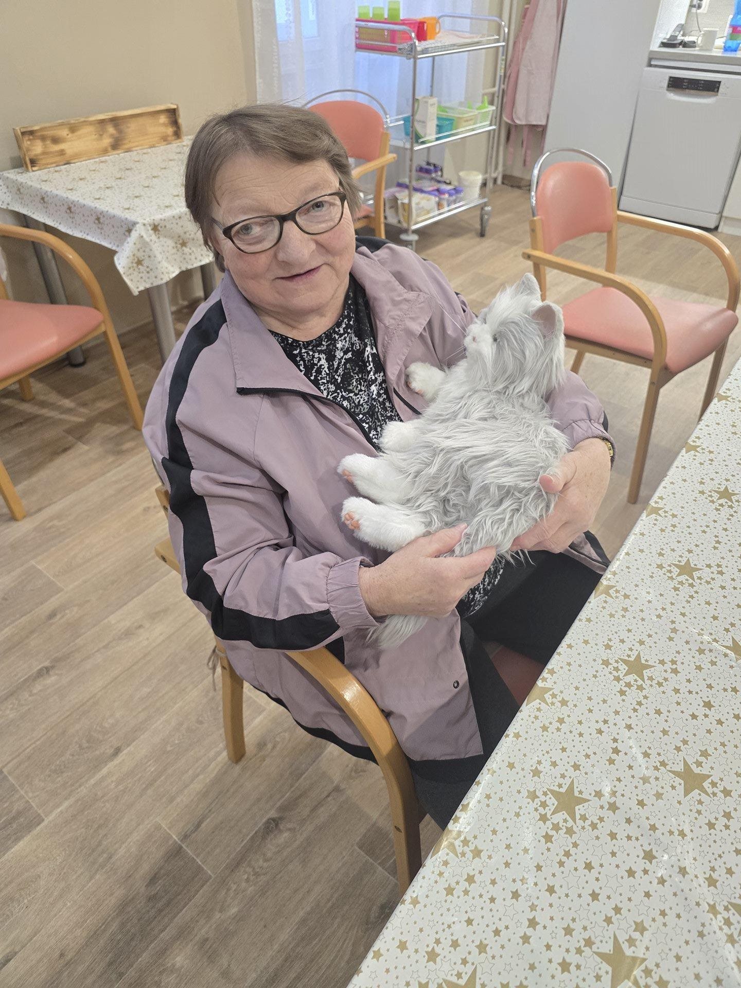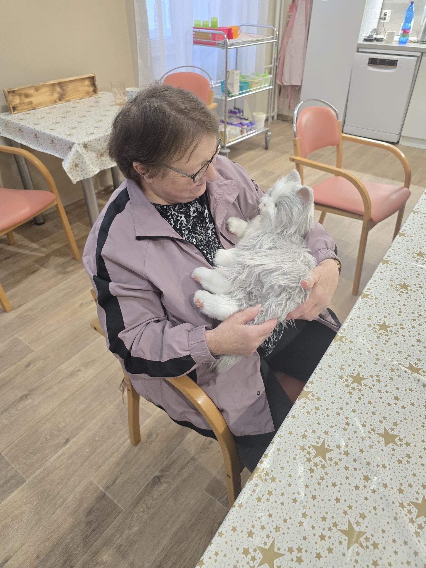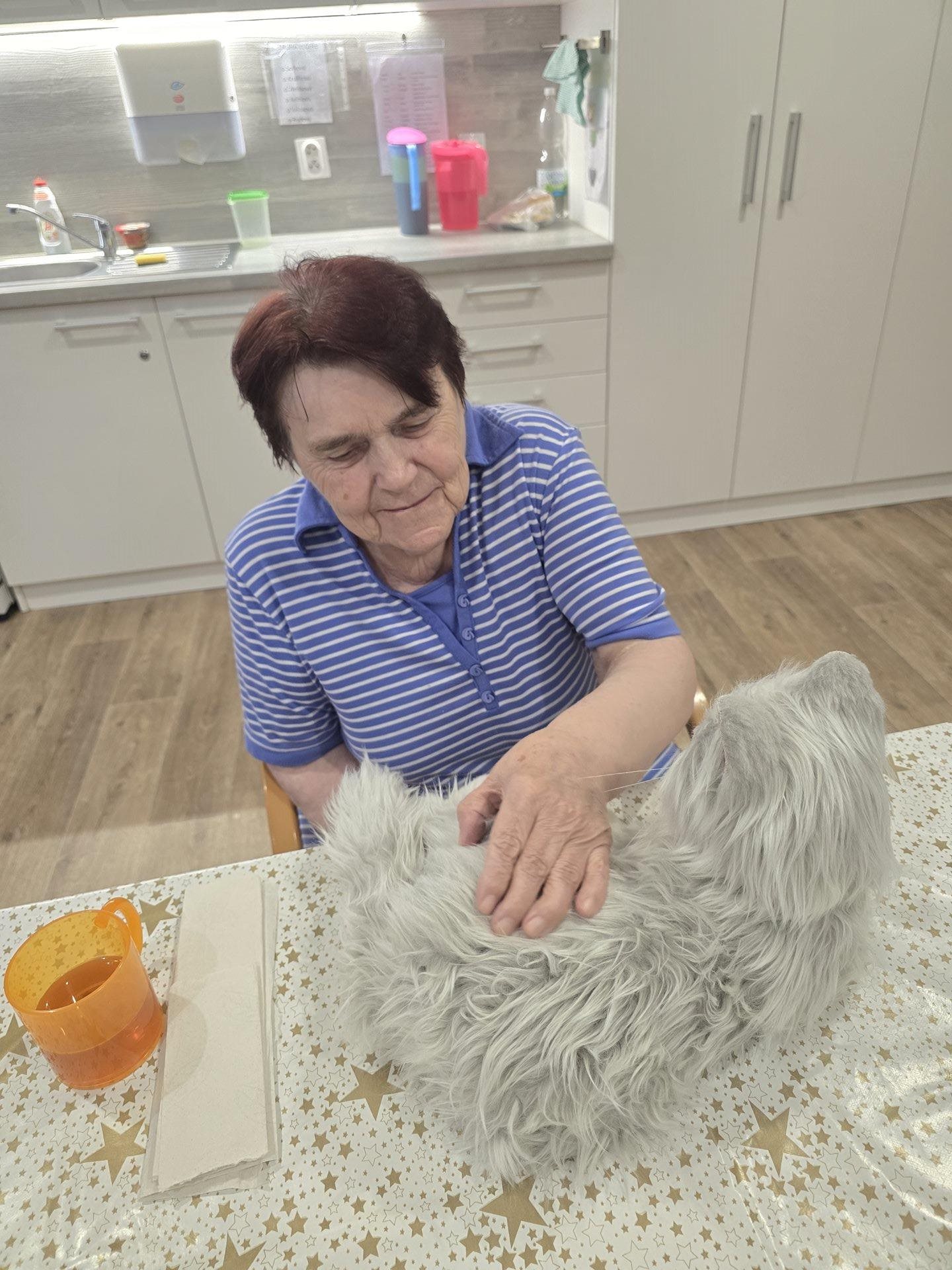 V pondělí byly uživatelky nadšené z návštěvy naší interaktivní robotické kočky. Kontakt se zvířetem má pro seniory významný terapeutický přínos. Podporuje emoční pohodu, navozuje pocit klidu a bezpečí, zmírňuje stres a pocity osamělosti. I interaktivní robotické zvíře dokáže stimulovat smysly, podporovat komunikaci, jemnou motoriku a aktivizovat vzpomínky, čímž pozitivně přispívá ke kvalitě života uživatelek. Uživatelky poté dlouhodobě vzpomínají na návštěvu zvířete a mají tak pocit radosti po delší dobu.