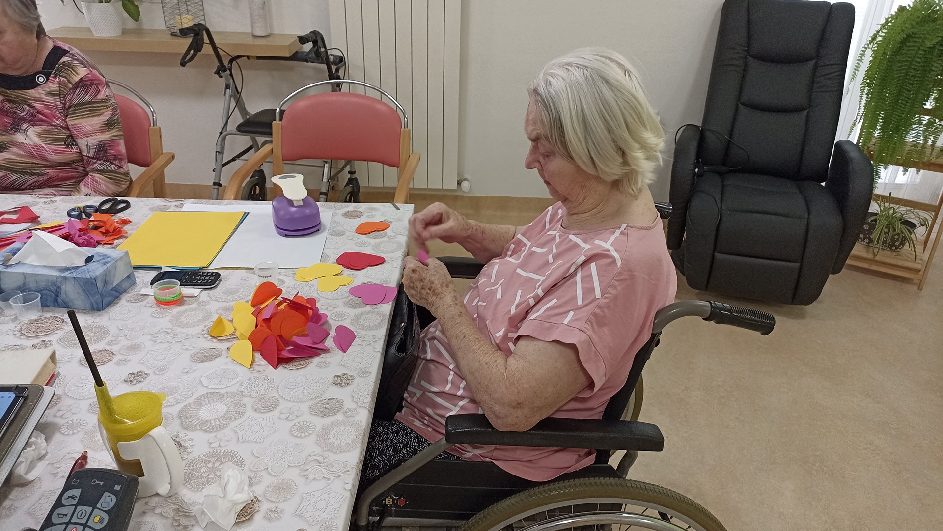 Masopust se blíží, a tak jsme se ve tvořivé dílně při arteterapii zaměřily na barevný papír a že si vyrobíme pěknou výzdobu na jídelnu. Uživatelky si procvičily jemnou motoriku a kognitivní funkce při skládání srdíček.