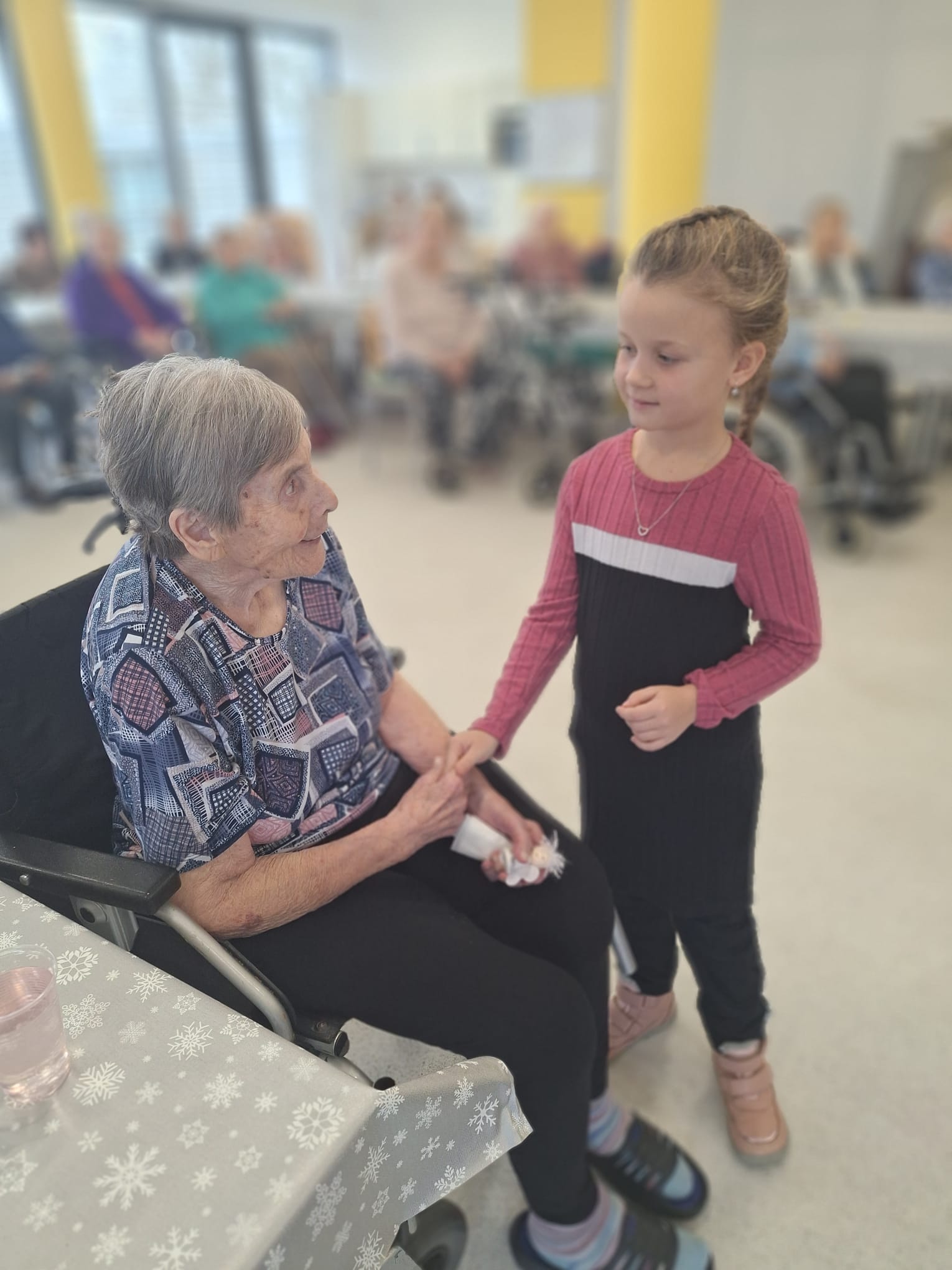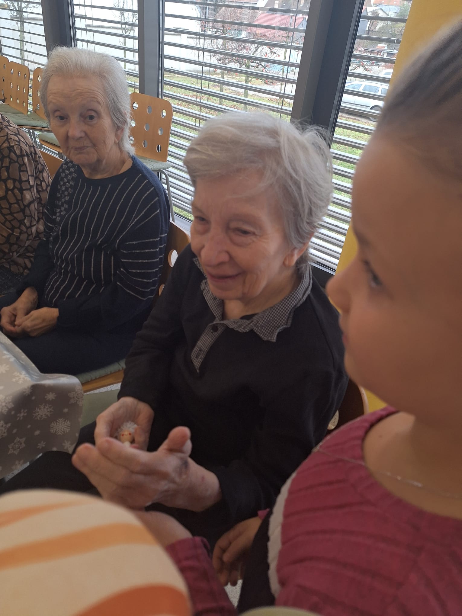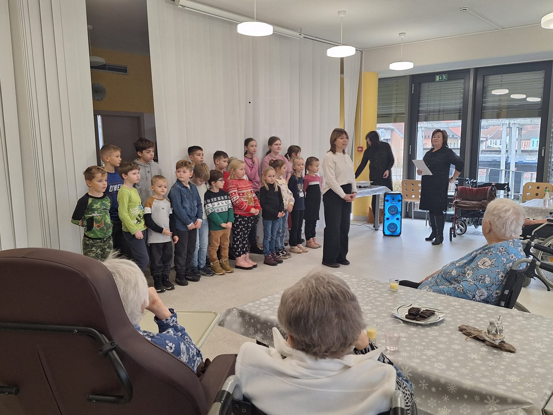 Adventní čas je mimo jiné i časem vánočních divadelních her, vystoupení i besídek. Úterní dopoledne u nás patřilo žákům ZŠ Horní Dunajovice, kteří se svým pedagogickým doprovodem přijeli našim seniorům zpříjemnit čekání na Vánoce. U skleničky vaječného koňaku tak měli naši uživatelé možnost poslechnout si pár vánočních písní, básniček i povídání, které nejednu seniorku chytlo za srdce. Byla to příležitost vrátit se v čase, kdy sami chodili do školek a škol, kde během besídek pozorně pozorovali a podporovali své děti a vnoučátka.