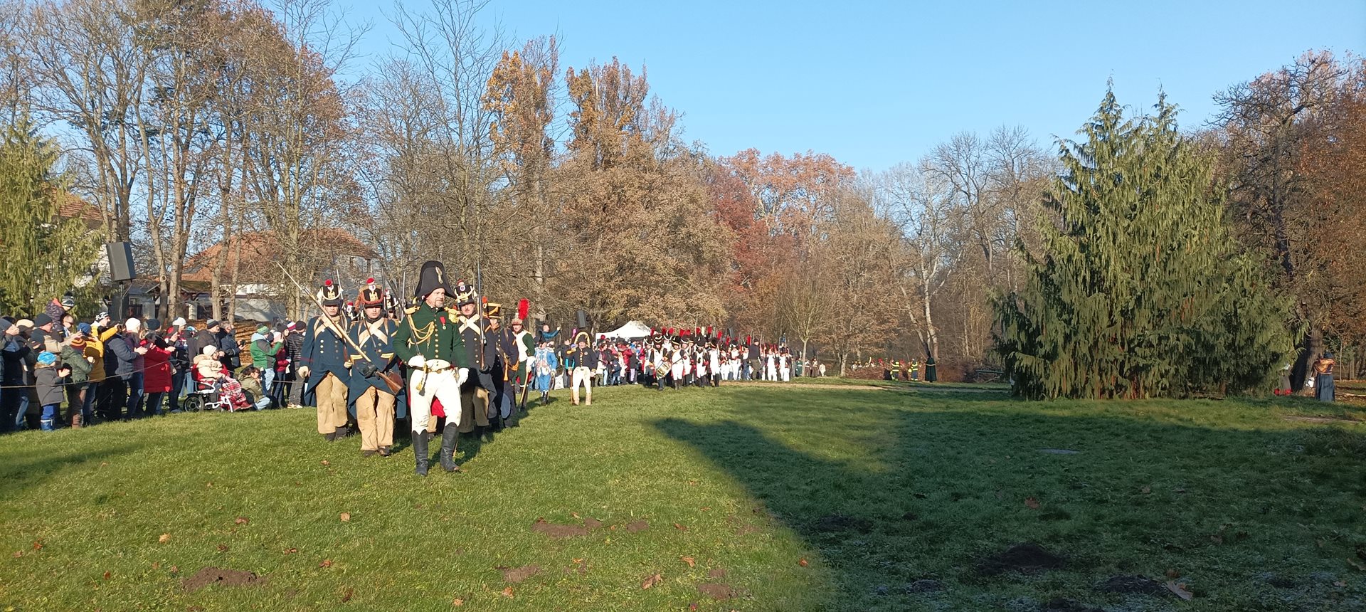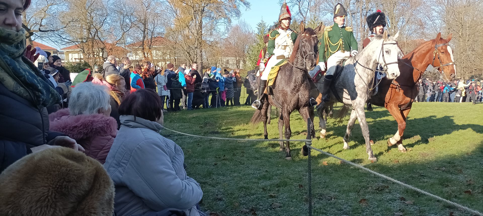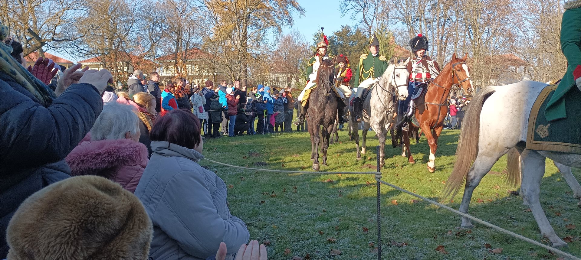 Jak je již tradicí, na začátku prosince jsme se s uživatelkami vydaly na již 10. rekonstrukci Bitvy tří císařů, která se uskutečnila v zámecké zahradě naše spřáteleného Domova pro seniory, p.o. v Sokolnicích. Každý rok je v rámci rekonstrukce bitvy vyprávěn příběh některého ze zúčastněných – tento rok to byl příběh hajného Vojtěcha Kratochvíla, který z bitvy vyvázl sice se zraněním, ale živý se vrátil zpět domů za svou rodinou. Během rekonstrukce jsme mimo jiné měli možnost vidět přehlídku precizně propracovaných kostýmů, vystrojených koní, dobové vojenské techniky a bojového umění zhruba 200 vojáků a 22 jezdců na koních. Příběh byl velmi dojemný a zážitek z celé rekonstrukce byl neobvyklý a nepřenositelný. V zámeckém parku se sešlo opravdu velké množství diváků včetně dětí. Během bitvy se ozývaly takové rány, že jsme na pečlivě přichystaných lavičkách pokrytých teplými dekami často leknutím nadskočily. Celá akce byla zakončena pietním aktem, při kterém byl položen věnec na památku padlým vojákům a koním.