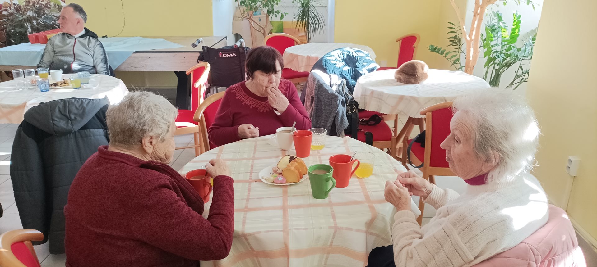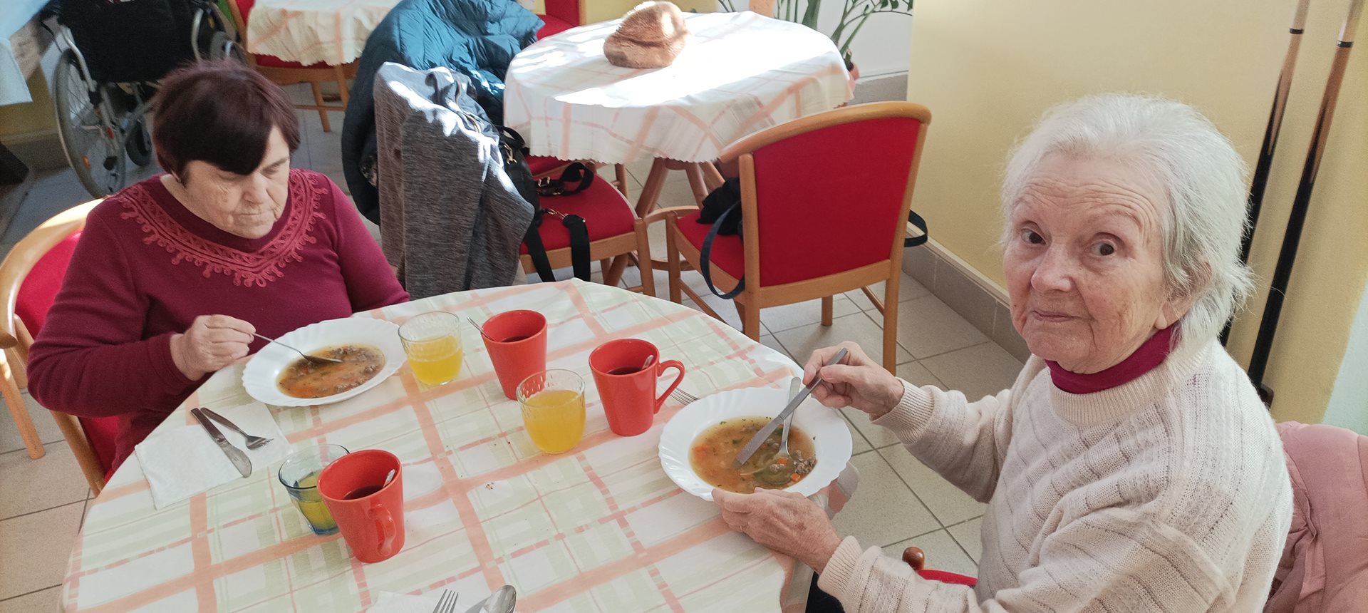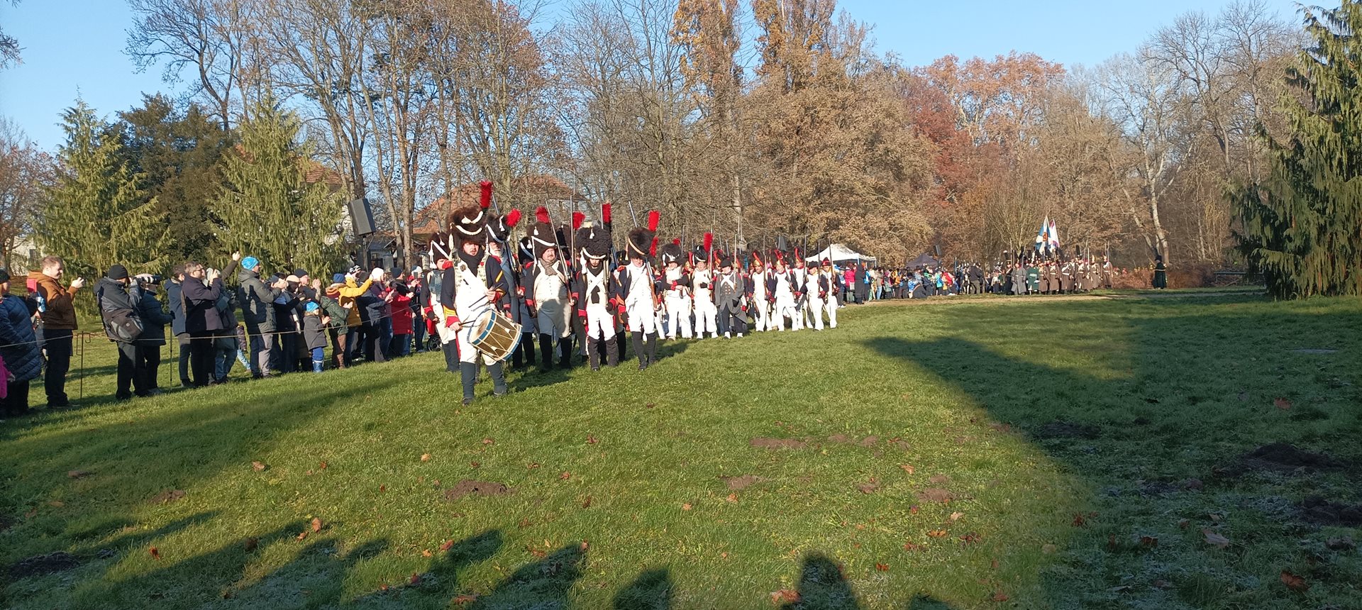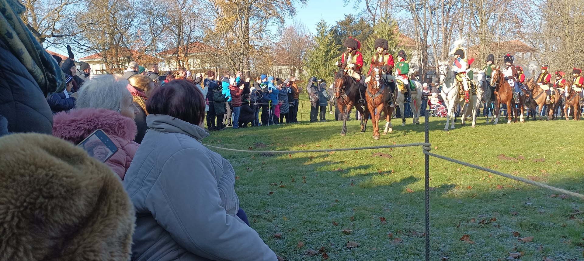 Jak je již tradicí, na začátku prosince jsme se s uživatelkami vydaly na již 10. rekonstrukci Bitvy tří císařů, která se uskutečnila v zámecké zahradě naše spřáteleného Domova pro seniory, p.o. v Sokolnicích. Každý rok je v rámci rekonstrukce bitvy vyprávěn příběh některého ze zúčastněných – tento rok to byl příběh hajného Vojtěcha Kratochvíla, který z bitvy vyvázl sice se zraněním, ale živý se vrátil zpět domů za svou rodinou. Během rekonstrukce jsme mimo jiné měli možnost vidět přehlídku precizně propracovaných kostýmů, vystrojených koní, dobové vojenské techniky a bojového umění zhruba 200 vojáků a 22 jezdců na koních. Příběh byl velmi dojemný a zážitek z celé rekonstrukce byl neobvyklý a nepřenositelný. V zámeckém parku se sešlo opravdu velké množství diváků včetně dětí. Během bitvy se ozývaly takové rány, že jsme na pečlivě přichystaných lavičkách pokrytých teplými dekami často leknutím nadskočily. Celá akce byla zakončena pietním aktem, při kterém byl položen věnec na památku padlým vojákům a koním.