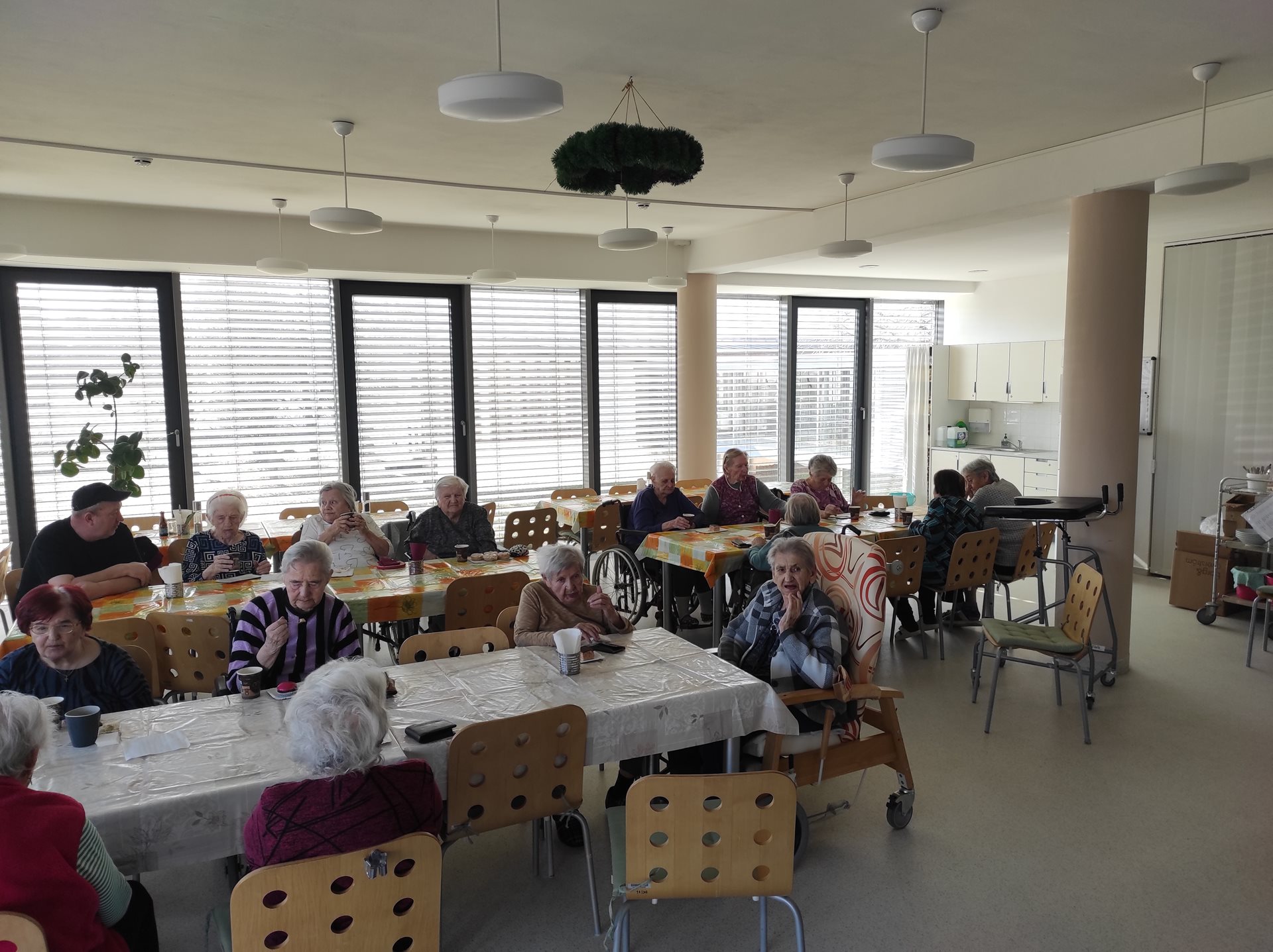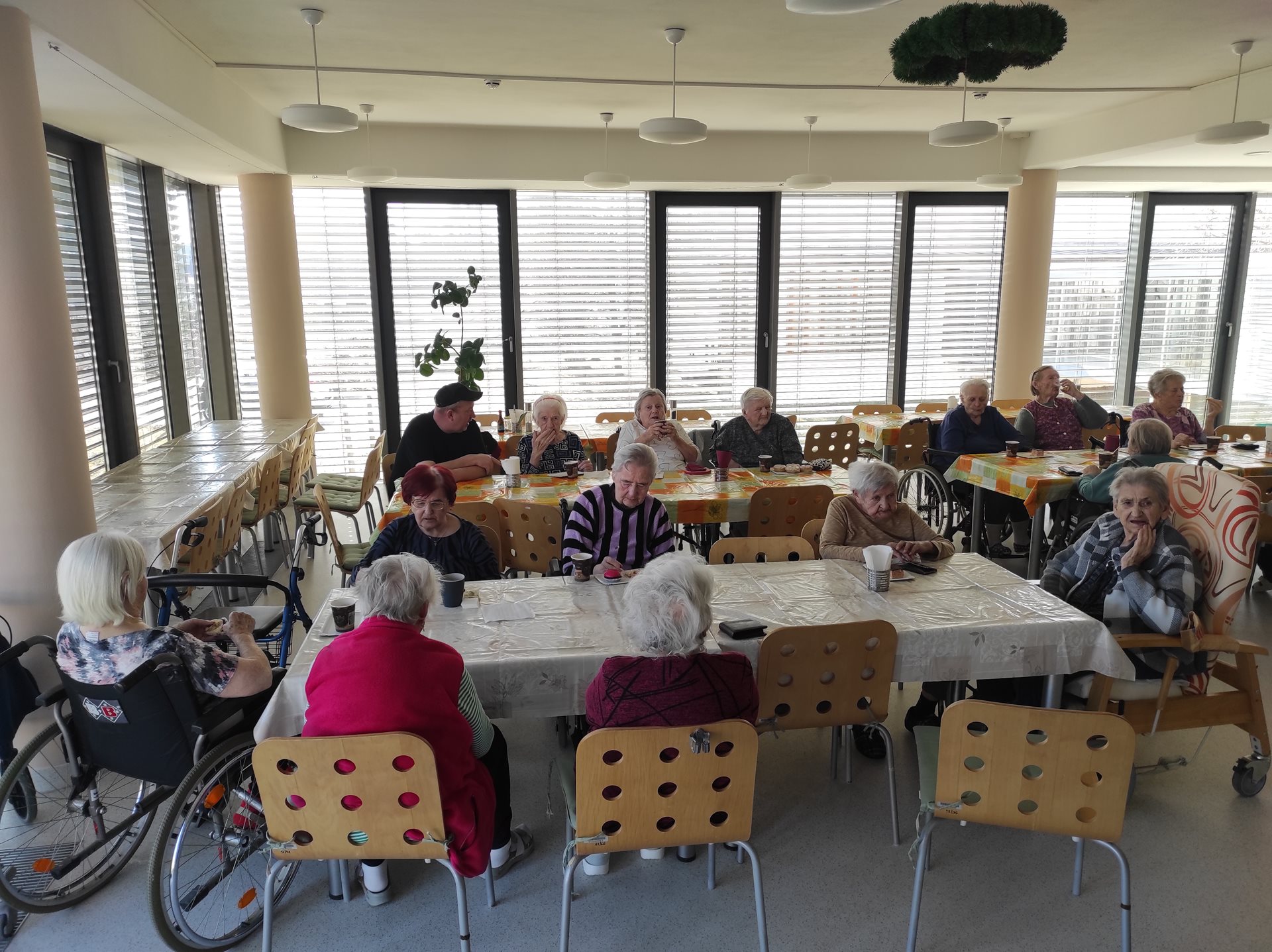 Středeční odpoledne bylo provoněno zákusky a kávou. Poté, co se náš domov po chřipkové epidemii znovu otevřel návštěvám, jsme znovu obnovili pravidelné cukrárny v našem zařízení. V naší nabídce měli senioři možnost ochutnat nadýchané věnečky, marcipánové brambory, sladké maratonky a také pomerančové kuličky s čokoládovou polevou.