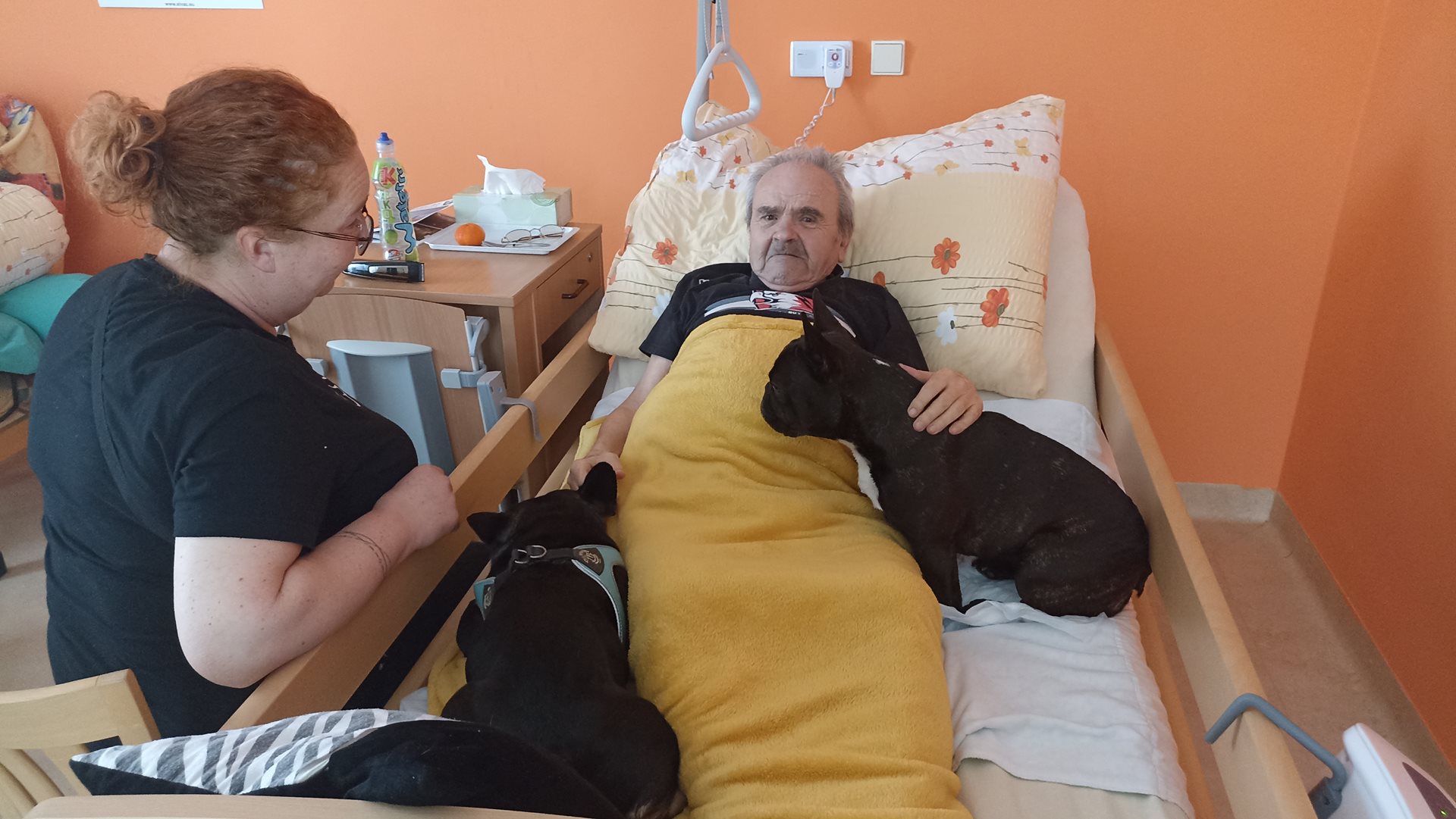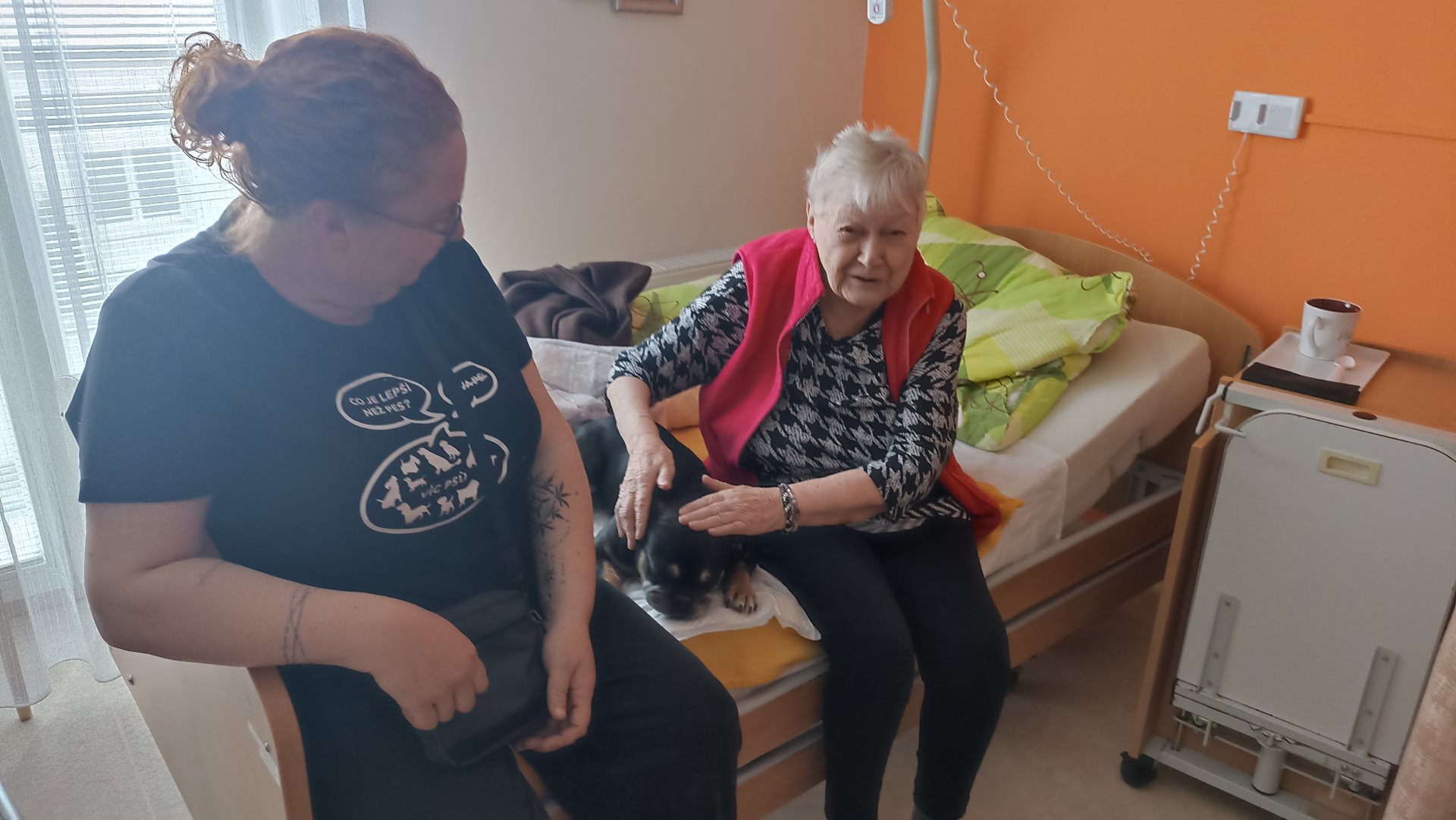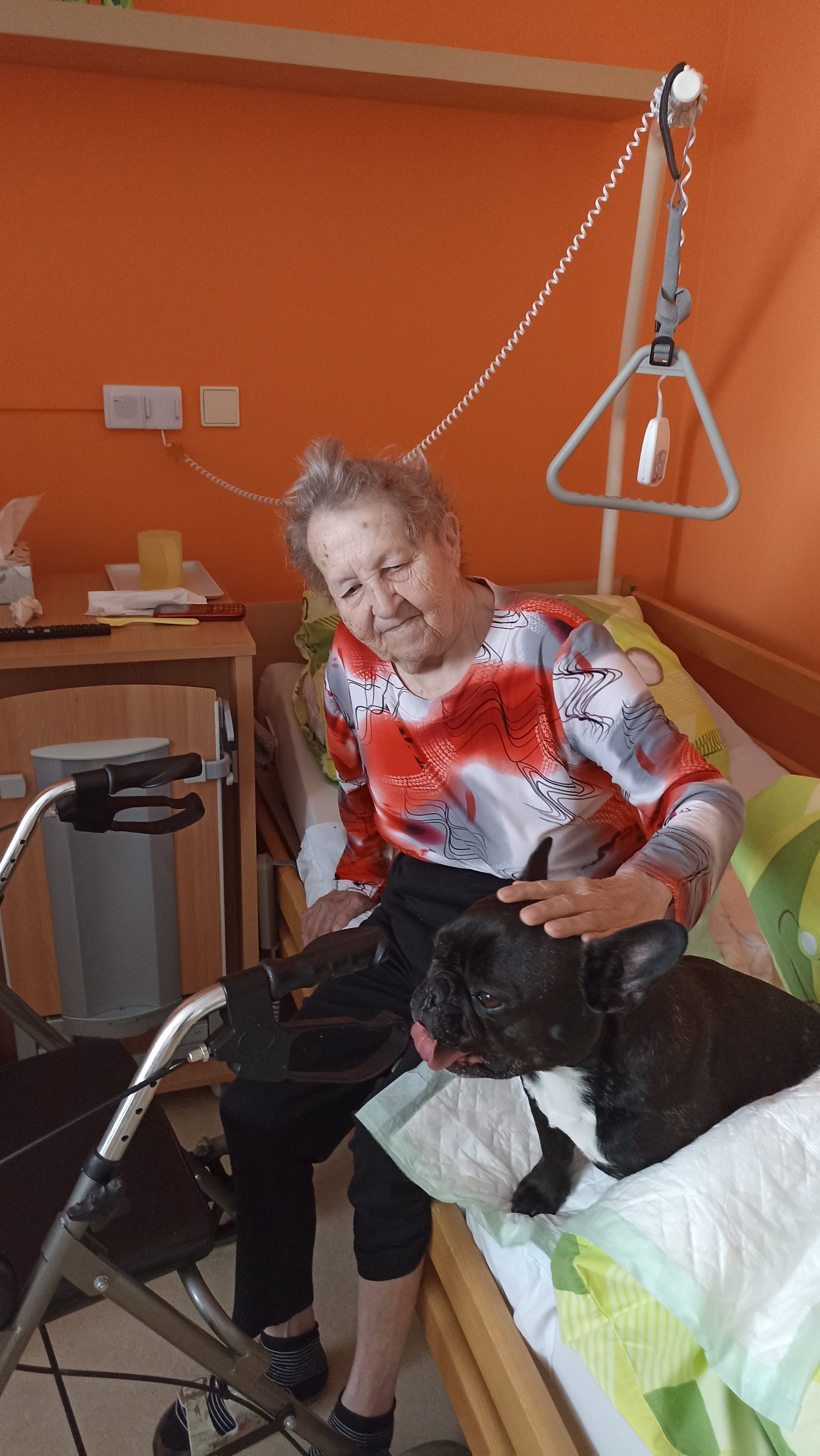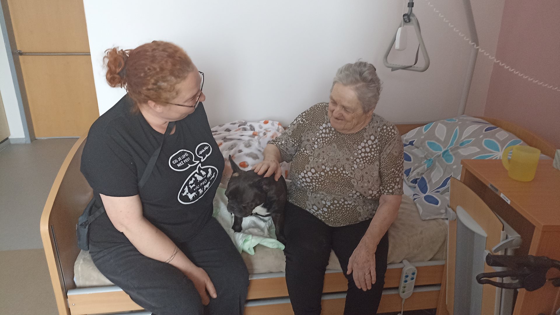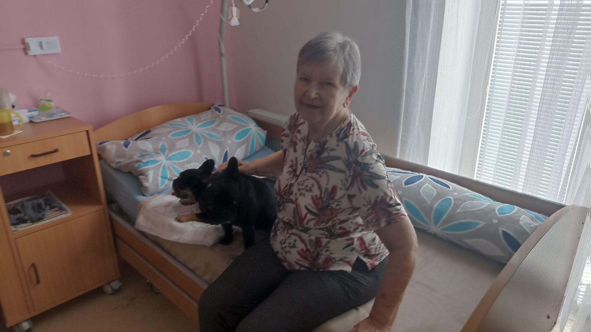 Canisterapie patří mezi oblíbené aktivity v našem domově pro seniory a na pavilonu B se na ni klienti vždy velmi těší. Každý měsíc k nám docházejí dvě milé psí společnice, francouzští buldočci Giny a Vanda, které přinášejí radost, klid a úsměv do všedních dnů našich uživatelů. Kontakt se zvířaty má pozitivní vliv nejen na psychickou pohodu, ale i na celkové uvolnění a aktivizaci. Klienti se s pejsky mazlí, povídají si o svých vzpomínkách na vlastní domácí mazlíčky a sdílejí radostné chvíle ve společnosti ostatních. Atmosféra setkání je vždy velmi příjemná a naplněná dobrou náladou. Velké poděkování patří canisterapeutce Lence Bumbálek za její laskavý přístup a péči, se kterou se věnuje našim klientům i svým čtyřnohým pomocníkům. Těšíme se na další společná setkání.