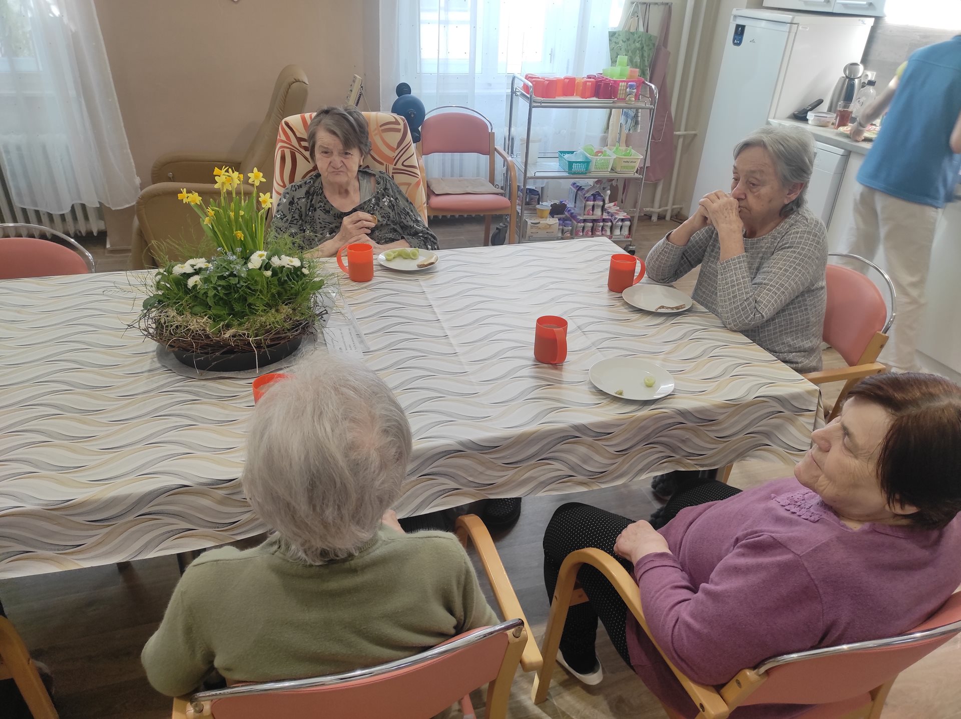 Předvelikonoční „škaredou středu“ nám svou návštěvou zkrášlili zaměstnanci Květinky Pospíchal. Tato firma nám poskytla sedm úžasných jarních dekorací, které již nyní zdobí jídelní stoly na společných prostorách všech pavilonů. Mimo jiné jsme obdrželi i tři věnce, které dávají zdem a dveřím našich pavilonů jarní nádech. Výběr z fotek můžete zhlédnout v naší fotogalerii. Květince Pospíchal tímto srdečně děkujeme za úchvatné dekorace, které dělají radost nejen klientům a návštěvám, ale i personálu.