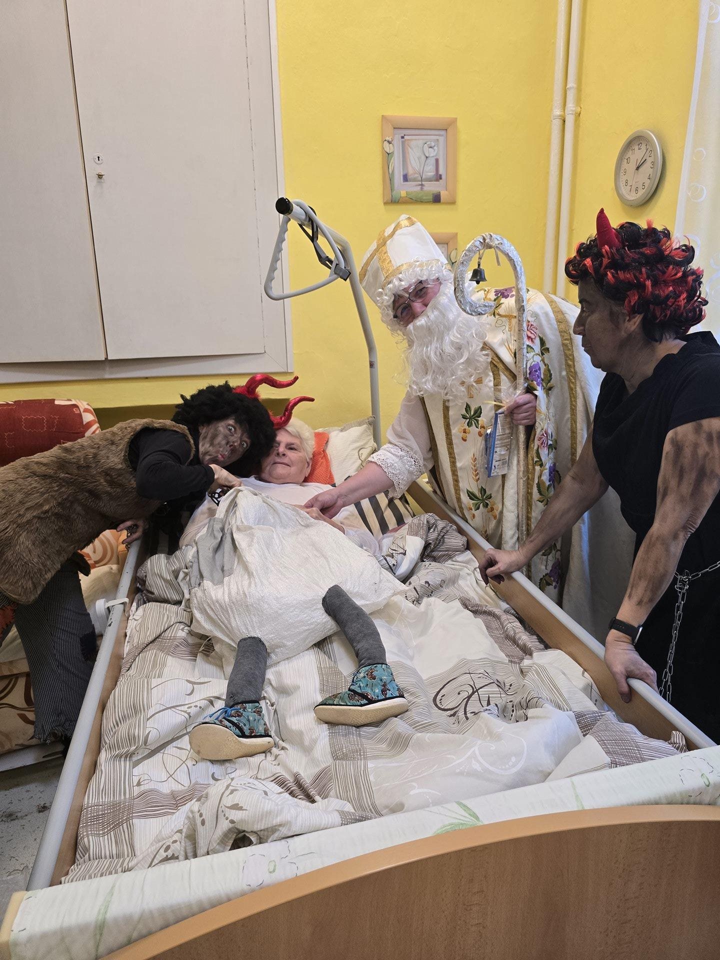 Tak, jako tomu je každý rok v prosinci, tak i letos naše uživatelky / uživatele i personál navštívil Mikuláš se svými přáteli – andělem a čertem. Uživatelé tak měli možnost si připomenout různé vzpomínky, ať už ze svého dětství, či z dob, kdy byly jejich děti ještě malé. Všichni, kteří se této události účastnili, měli velkou radost, že jim náš personál zpestřil odpoledne. Někteří se dokonce odvážili povědět Mikuláši nějakou básničku, říkanku, dokonce i něco zazpívat – byli za to také obdarováni malým balíčkem - v podobě sladkostí a ovoce. Čtvrteční odpoledne si všichni moc užili a nyní už se těší na blíží se období Vánoc.