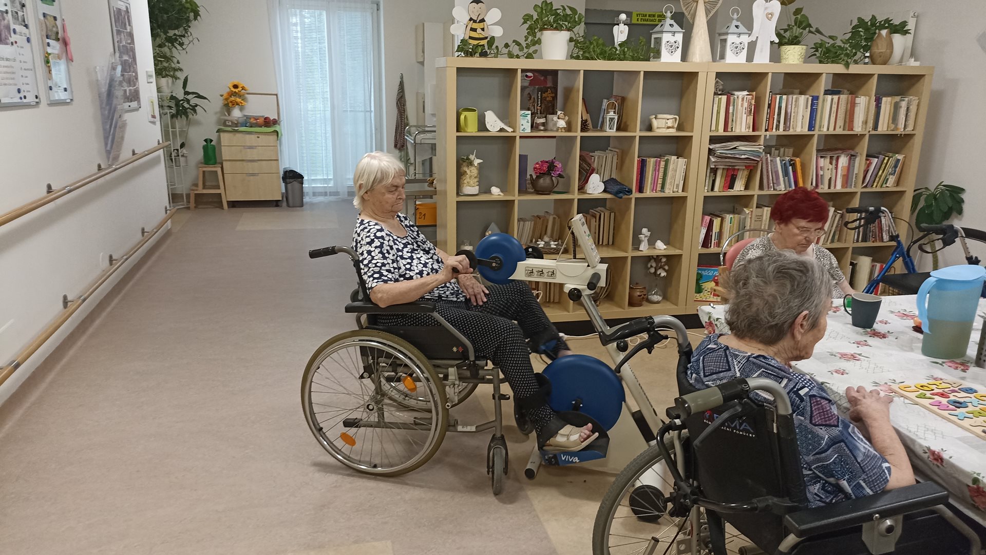 Při dopolední aktivizaci měli naši uživatelé možnost si vyzkoušet. Boomwhackers. Tento nástroj vypadá a trošku i zní jako xylofon, je vytvořen z barevně odlišných kovových válců. Jednotlivé části se můžou použít zvlášť nebo dohromady tak jako xylofon. Tato zvonkohra nadchla nejen uživatele, ale i některé zaměstnance. Jedná se o velmi jednoduchý hudební nástroj, který nevyžaduje žádné hudební znalosti a s trochou tréninku se na něj dá velmi rychle naučit hrát jednoduché známé písničky. V rytmu hudby si některé uživatelky i procvičily dolní končetiny šlapáním na motomedu a jiné zase jemnou motoriku.