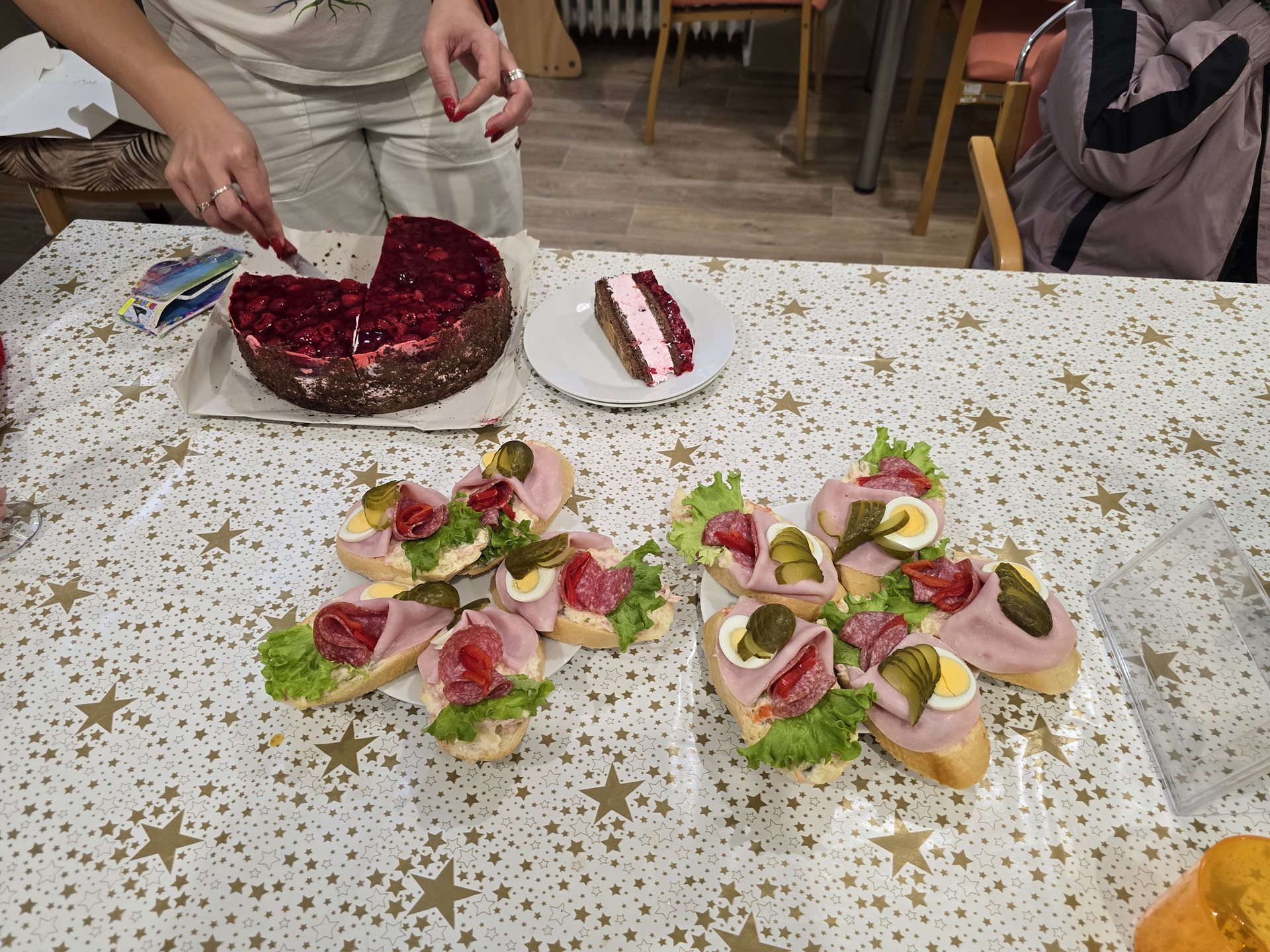 Dne 18. 12. se na pavilonu Z uskutečnila slavnostní oslava významného životního jubilea. Jedna z našich uživatelek zde oslavila své krásné 90. narozeniny za účasti personálu i dalších uživatelek domova. Oslava probíhala v příjemné a srdečné atmosféře, která podtrhla výjimečnost tohoto dne. Pro přítomné bylo připraveno slavnostní občerstvení. K jídlu se podával malinový dort a chlebíčky, k pití pak vaječný koňak a limonáda. Nechyběla přání pevného zdraví, pohody a spokojenosti do dalších let. Oslava byla pro všechny zúčastněné milým setkáním a krásným zpestřením adventního času. Jubilantce ještě jednou srdečně blahopřejeme.