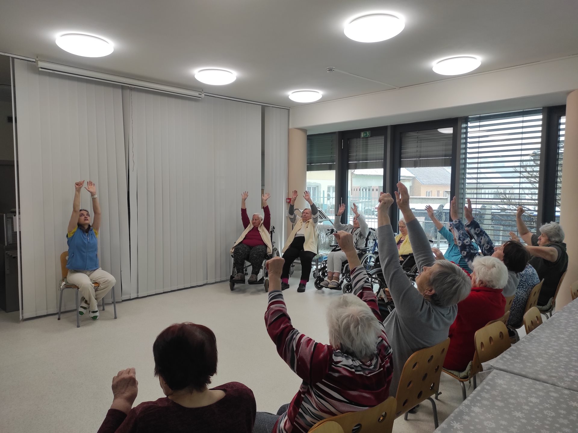 Po svátcích jsme se s klientkami všech tří pavilonů opět setkaly na pravidelném pátečním cvičení. Během svátků jsme měly ve volných chvílích čas nastudovat nové cviky, kterými jsme cvičení obohatily. Zapojily jsme i již tradiční pomůcky – míčky s hrbolky, tzv. „ježky“, dechová i orofaciální cvičení, které jsme zakončily zpěvem písní a recitací básní o chumelení, sněhu a zimě.