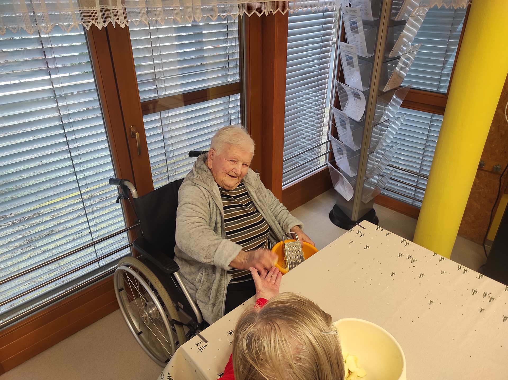 Čtvrteční ráno zavonělo jablky, skořicí a kakaem. V pavilonu A se pekla bábovka z postrouhaných jablek a koulely se sádlové důlky plněné rybízovou marmeládou. Každý, kdo mohl se do práce s chutí zapojil a za 2 hodiny bylo dílo hotové. Bábovku i důlky pak měli možnost ochutnat všichni uživatelé pavilonu s odpolední kávou.