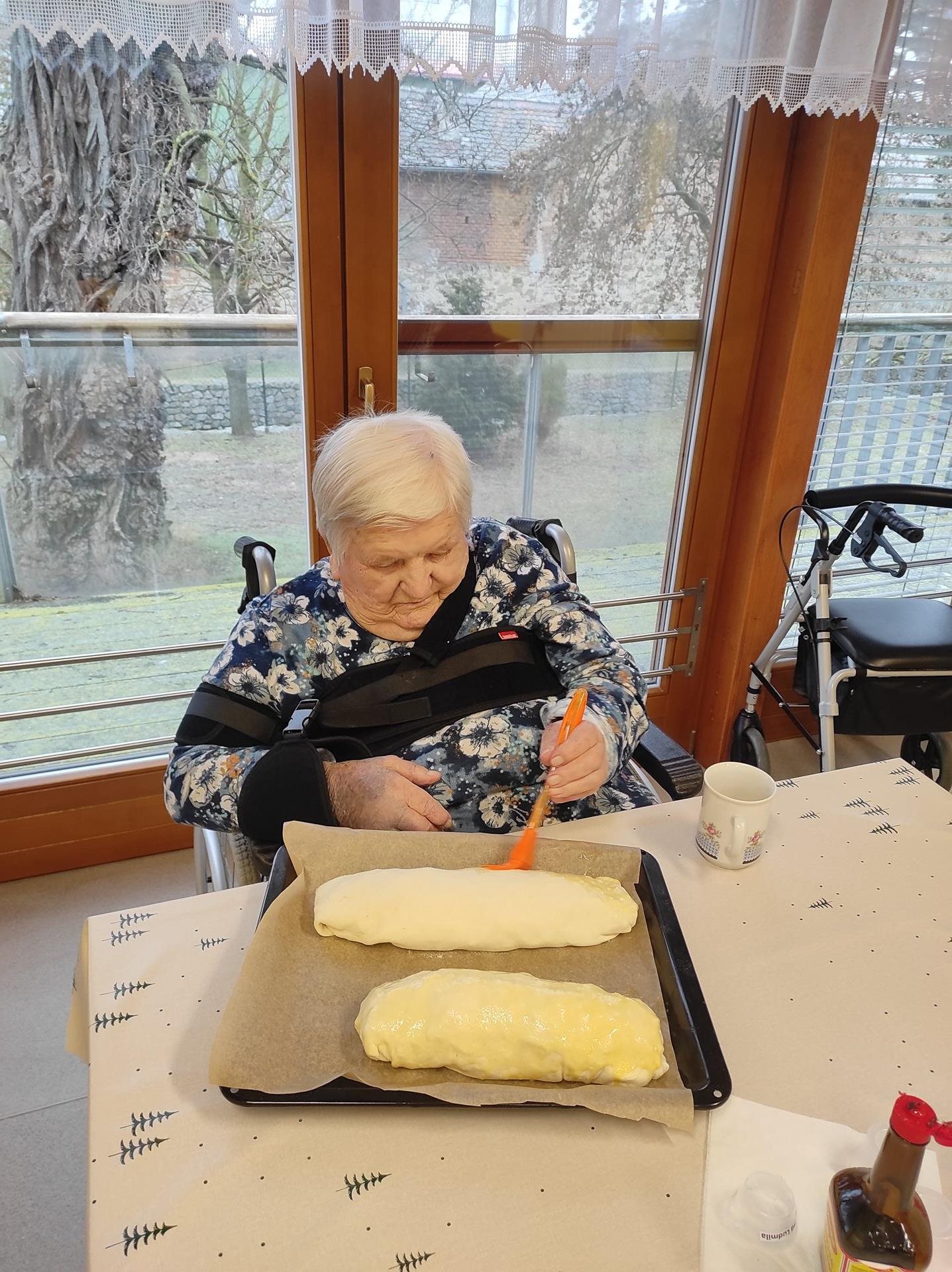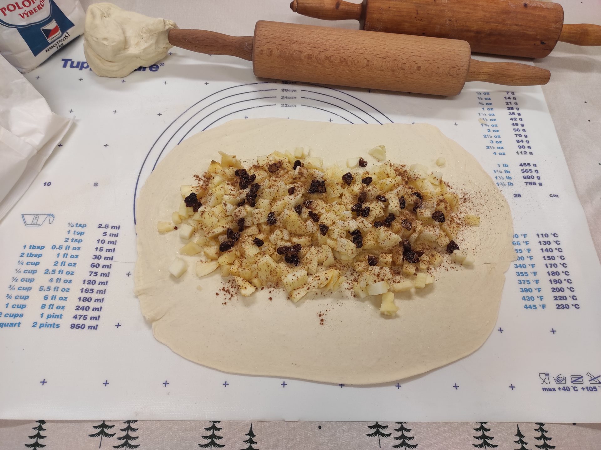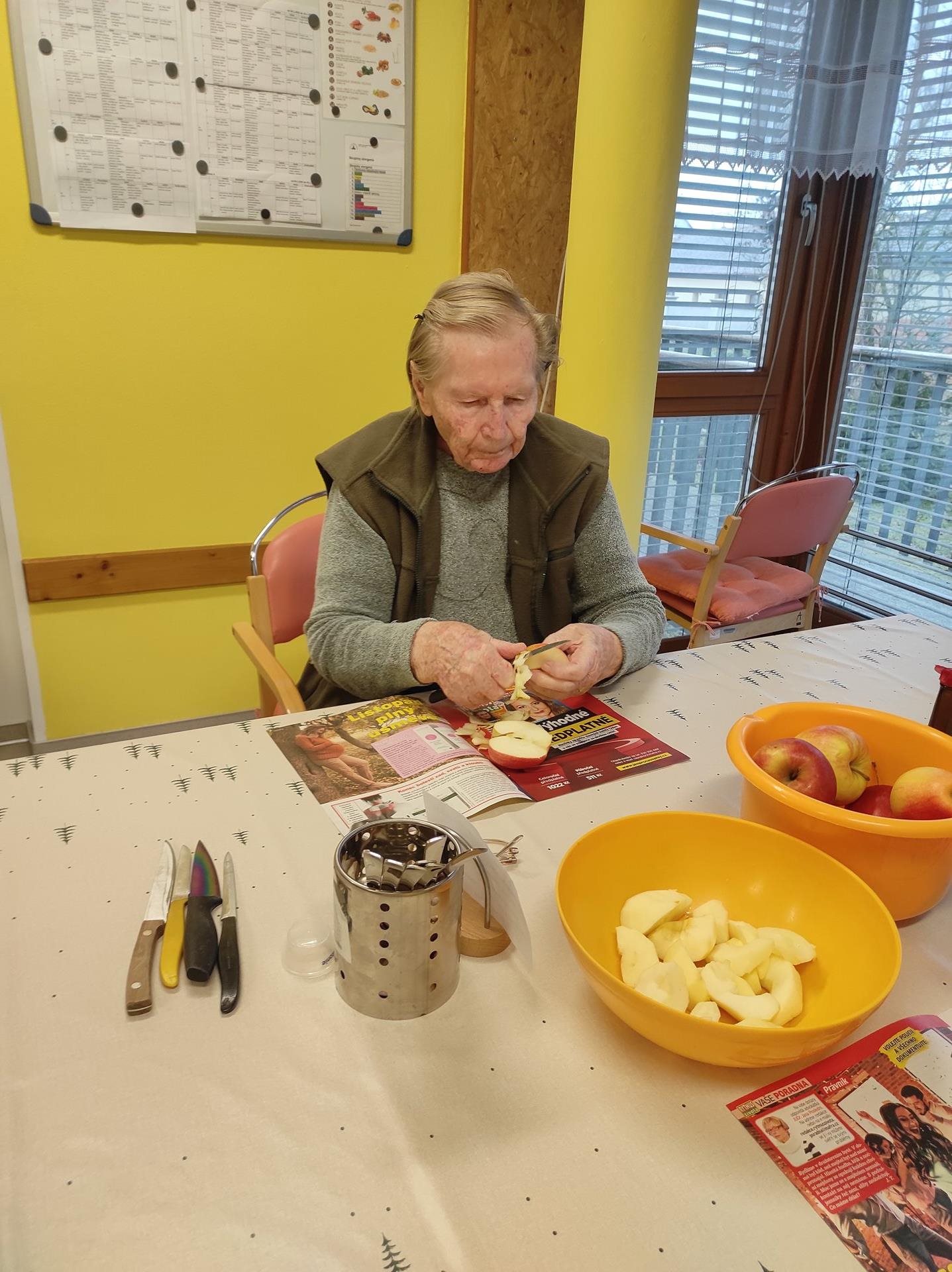 Pavilonem A se ve čtvrtek rozléhal zpěv lidovek a vůně jablek a skořice – tipujete dobře – peklo se! S uživatelkami jsme společně očistily jablka, které následně nakrájely na malé kostičky a rozprostřely na rozválené listové těsto. Vzduchem se mj. linula vůně rozinek a vanilkového cukru. Dezert v podobě zlatavého štrúdlu si pak společně uživatelky vychutnaly u odpolední kávy.