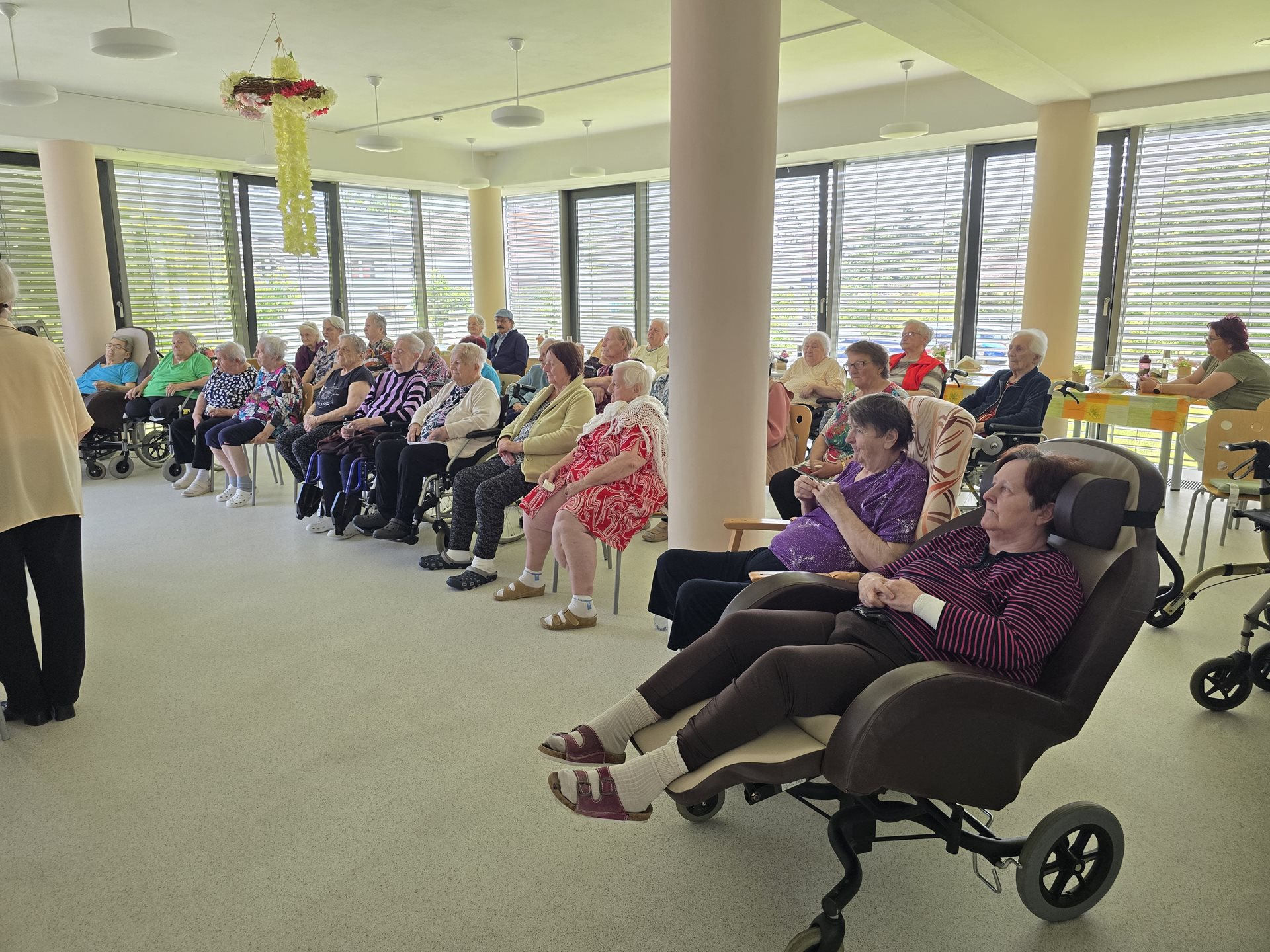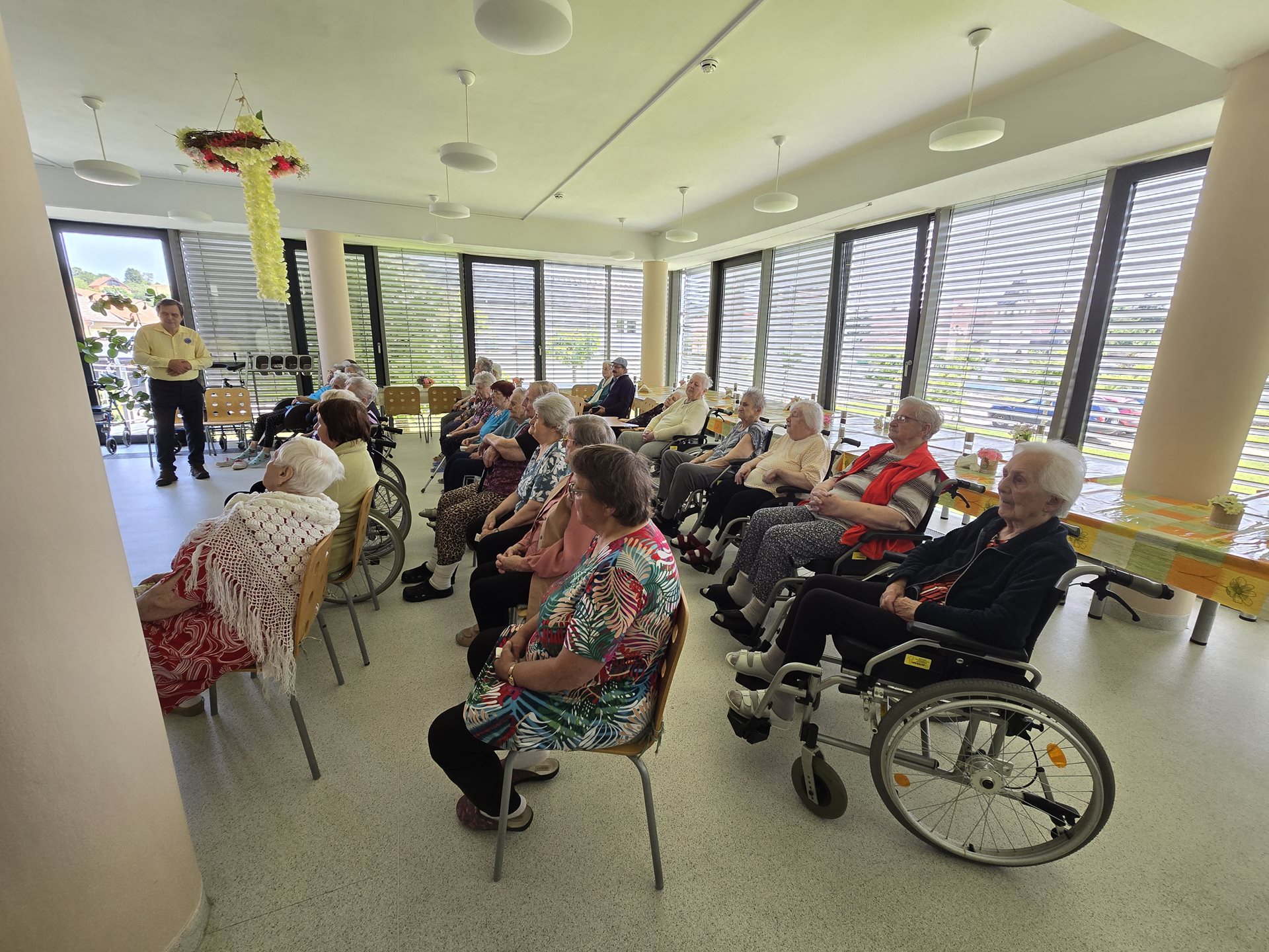 Ve čtvrtek, dne 12. června se v našem zařízení uskutečnilo milé pěvecké vystoupení pěveckého souboru BÁDULE, který nás navštěvuje pravidelně. Pestrý program složený z lidových i populárních písní rozzářil tváře všech přítomných. Vystoupení se neslo v přátelské a srdečné atmosféře, která dojemně spojila účinkující s publikem. Soubor BÁDULE svým zpěvem přinesl radost, úsměv a řadu dojemných chvil. Naši obyvatelé si s chutí zazpívali známé melodie a mnozí si zavzpomínali na chvíle mládí. Hudba tak opět ukázala svou sílu spojovat a přinášet radost v každém věku. Děkujeme členům souboru BÁDULE za jejich čas, ochotu a krásné vystoupení. Věříme, že se k nám v budoucnu opět rádi vrátí.