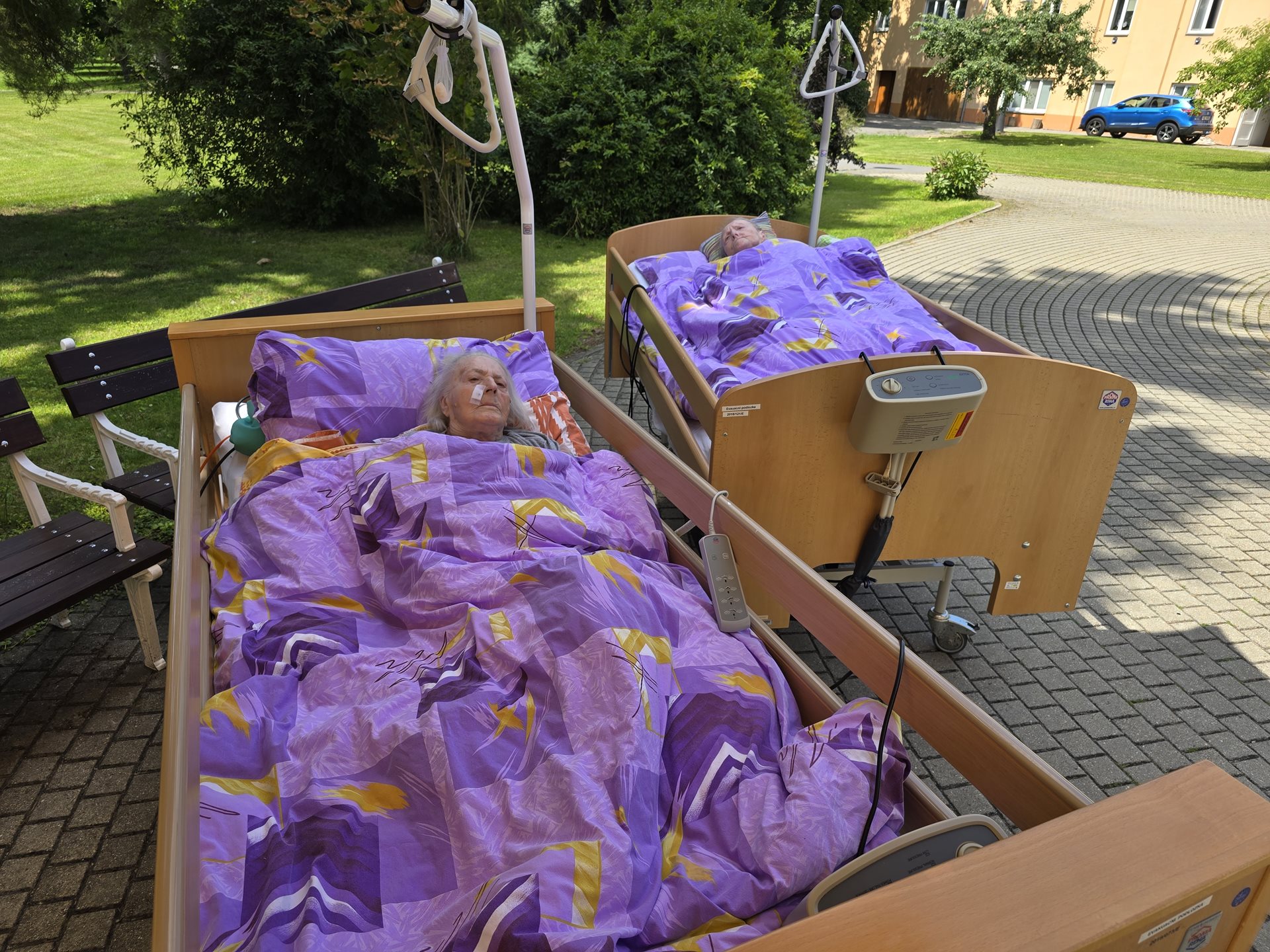 V našem zařízení se snažíme vytvářet podnětné a příjemné prostředí, které podporuje nejen fyzickou pohodu, ale i duševní rovnováhu našich uživatelů. Jedním z takových momentů byla i nedávná smyslová terapie, která probíhala přímo pod širým nebem u kašny. Na pohodlných lůžkách byly naše klientky převezeny na slunné místo, kde na ně čekal čas plný vůní, klidu a příjemné atmosféry. Hlavní část programu tvořilo přičichávání k čerstvým bylinkám, jako je máta, rozmarýn či meduňka. Vůně bylin pomáhá probouzet vzpomínky, podporuje uvolnění a přináší radost z drobných podnětů všedního dne. Součástí našeho setkání bylo také předčítání z knihy, které doplnilo celkovou atmosféru klidu a rozjímání. Sluneční paprsky, jemný šum vody z fontány a tiché verše přenesly naše uživatelky na chvíli do jiného světa – do světa vzpomínek, pohody a přírodních vjemů. Tato aktivita byla vřele přijata a těší nás, že můžeme našim uživatelům i nadále zprostředkovávat chvíle, které mají smysl.