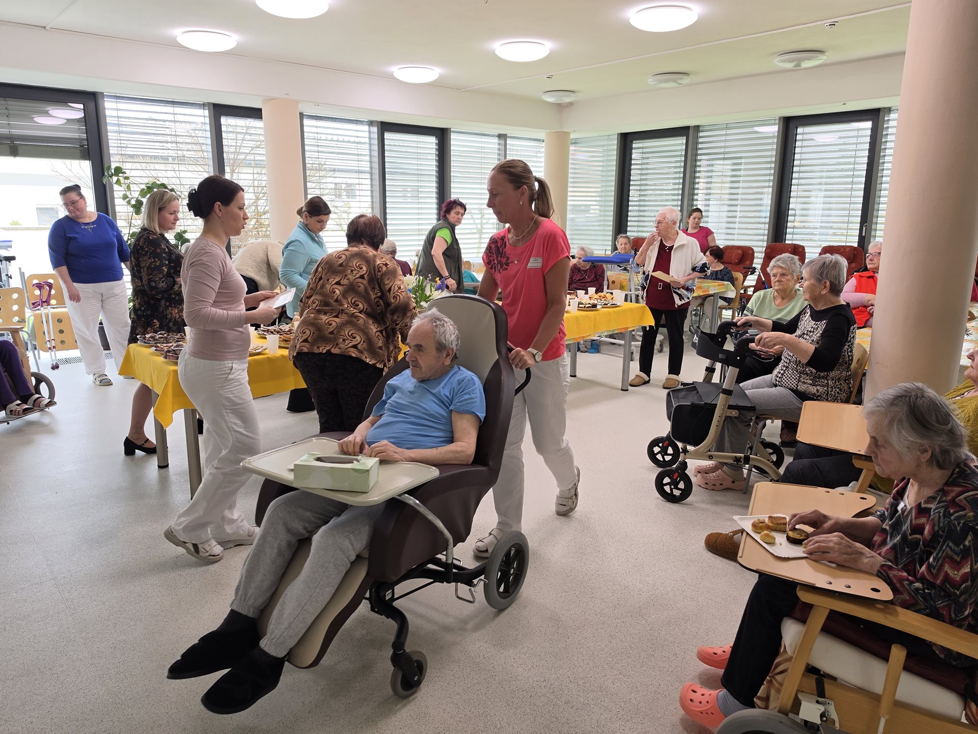 V pondělí se v našem domově pro seniory konala milá a voňavá událost – soutěž o nejlepší velikonoční dezert. Do této soutěže se s velkým nadšením zapojilo celkem 29 zaměstnanců, kteří připravili pestrou škálu tradičních i originálních moučníků. Celé odpoledne se neslo v příjemné a přátelské atmosféře. Naše uživatelky se aktivně zapojily do ochutnávání jednotlivých dezertů, ke kterým byla podávána káva. Poté měly možnost hlasovat a rozhodnout o tom, který moučník jim chutnal nejvíce. První místo si zaslouženě odnesla pracovnice úklidu, jejíž dezert - koláče - zaujal svou chutí i provedením. Druhé a třetí místo obsadily pracovnice kuchyně, které rovněž předvedly vynikající cukrářské umění. Děkujeme všem zúčastněným za jejich úsilí, kreativitu a ochotu zpříjemnit ostatním tento velikonoční čas.