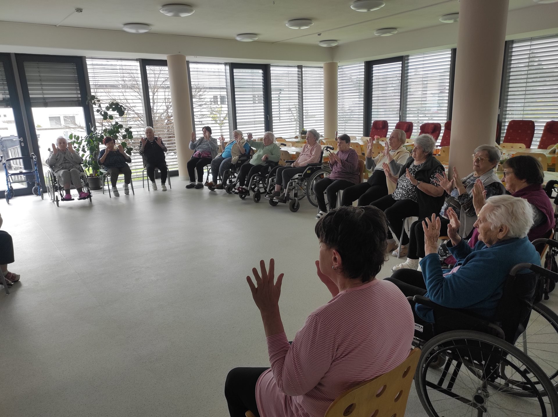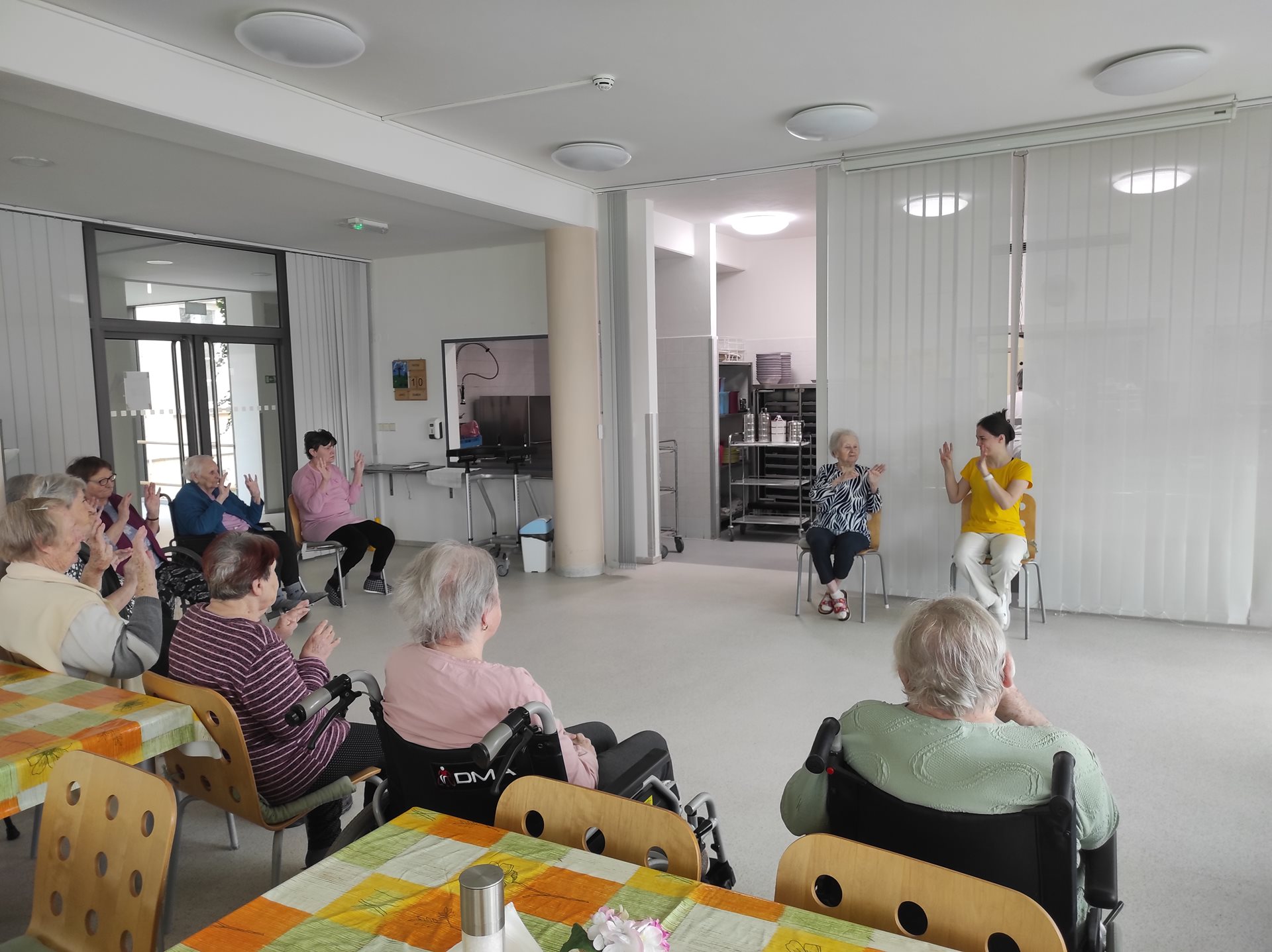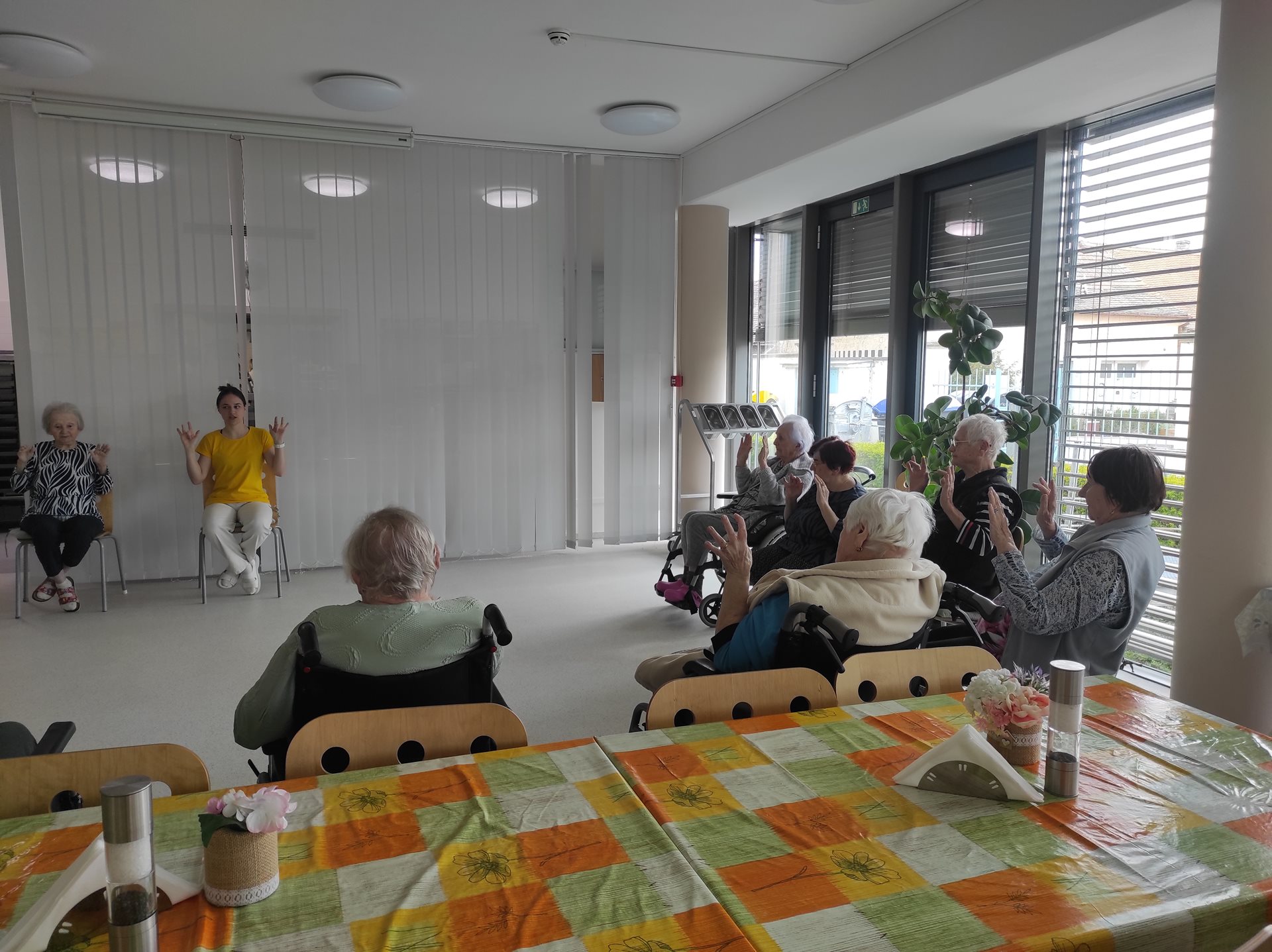 I dnes, jako každý pátek, proběhlo v jídelně našeho domova pravidelné skupinové cvičení. Program byl zaměřen na celkové protažení těla – od hlavy až k patě – a pomohl tak podpořit pohyblivost i celkovou kondici našich uživatelek. Po protažení celého těla následovalo i cvičení s pěnovým míčkem, které přispělo ke zlepšení koordinace a jemné motoriky. Součástí bylo také dechové cvičení a protažení orofaciálních svalů, které podporuje správné dýchání i funkci mluvidel. Na závěr si uživatelky procvičily paměť zábavnou formou při doplňování známých přísloví. Celé dopoledne se neslo v příjemné a přátelské atmosféře a již nyní se těšíme na další společné cvičení.