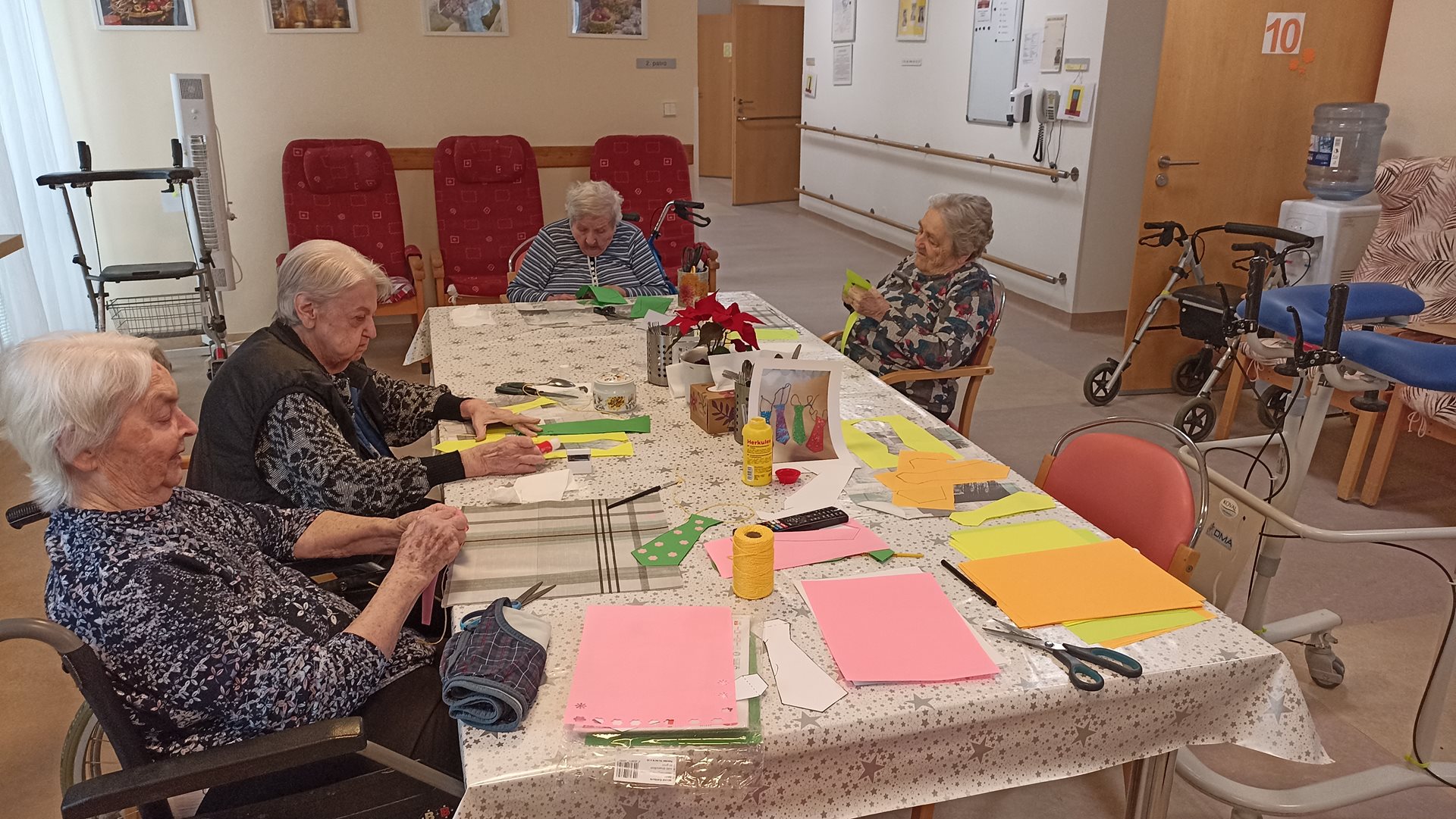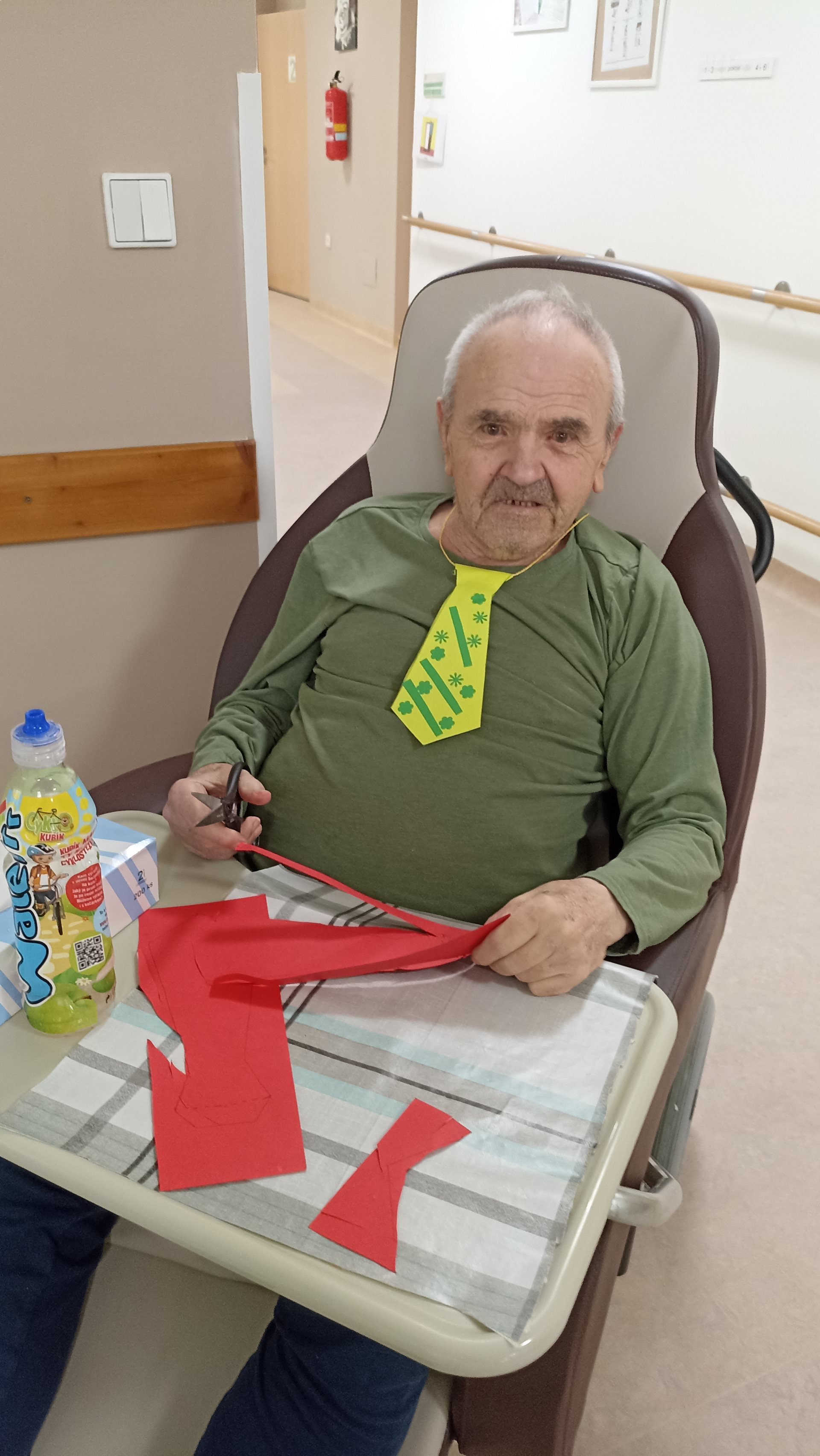 V našem domově proběhla tvořivá dílna na oddělení zaměřená na arteterapii, jejímž cílem byla příprava masek na blížící se maškarní ples. Uživatelé se s chutí zapojili do výroby škrabošek a veselých kravat z barevného papíru. Při tvoření si procvičovali jemnou i hrubou motoriku, koordinaci pohybů a soustředění, a zároveň mohli uplatnit svou fantazii a kreativitu. Celou dílnu provázel poslech oblíbené dechové hudby, která navodila příjemnou atmosféru a podpořila reminiscenci. Vzpomínky na dřívější plesy, zábavy a ruční práce se přirozeně prolínaly s rozhovory a sdílením zážitků. Tvoření se tak stalo nejen terapeutickou aktivitou, ale i příležitostí k sociálnímu kontaktu a posílení dobré nálady. Vznikly krásné, originální výrobky, které dokazují, že naši uživatelé mají stále velmi šikovné ruce a chuť tvořit. Maškarní ples tak bude o to radostnější a osobnější.