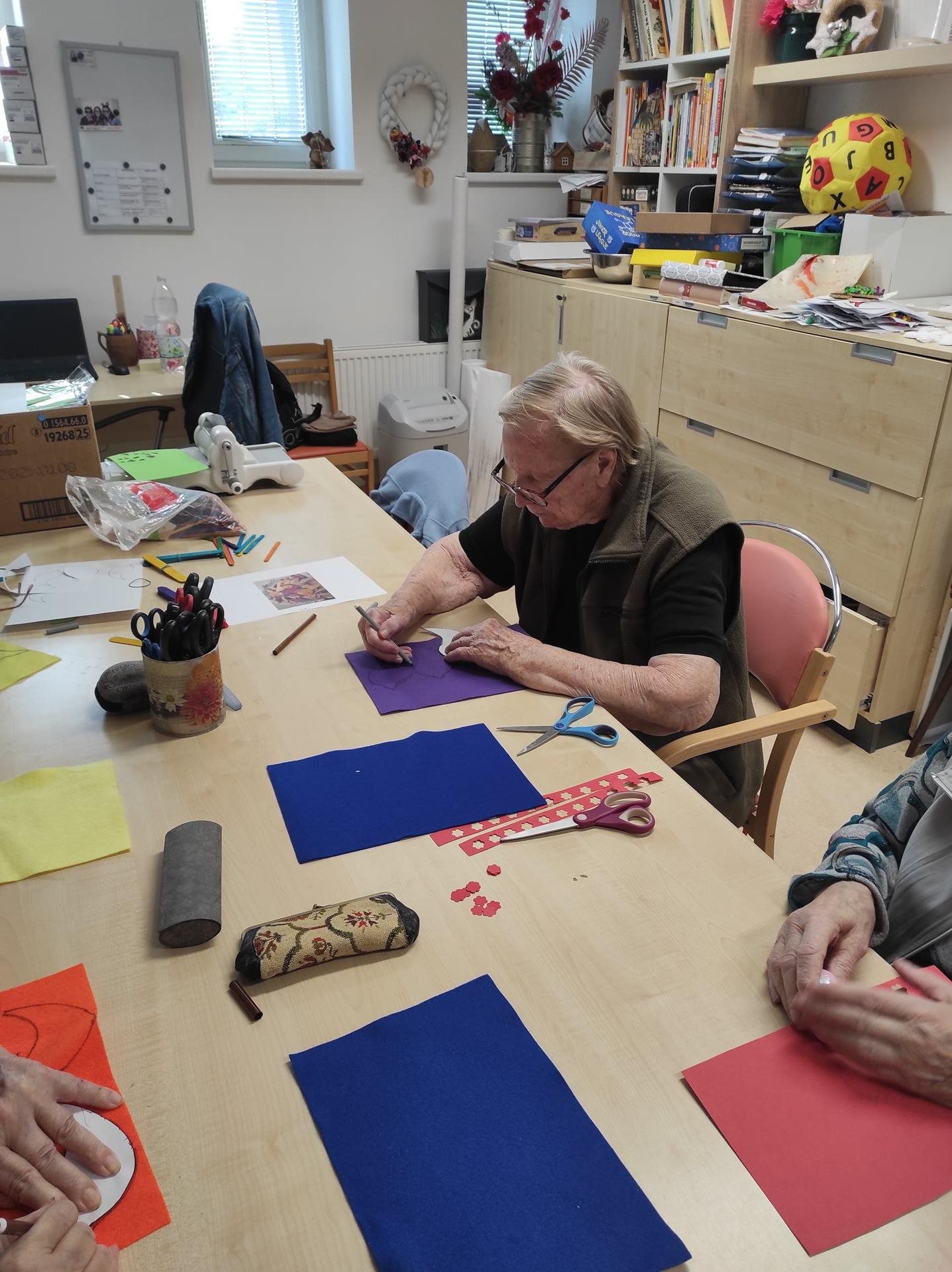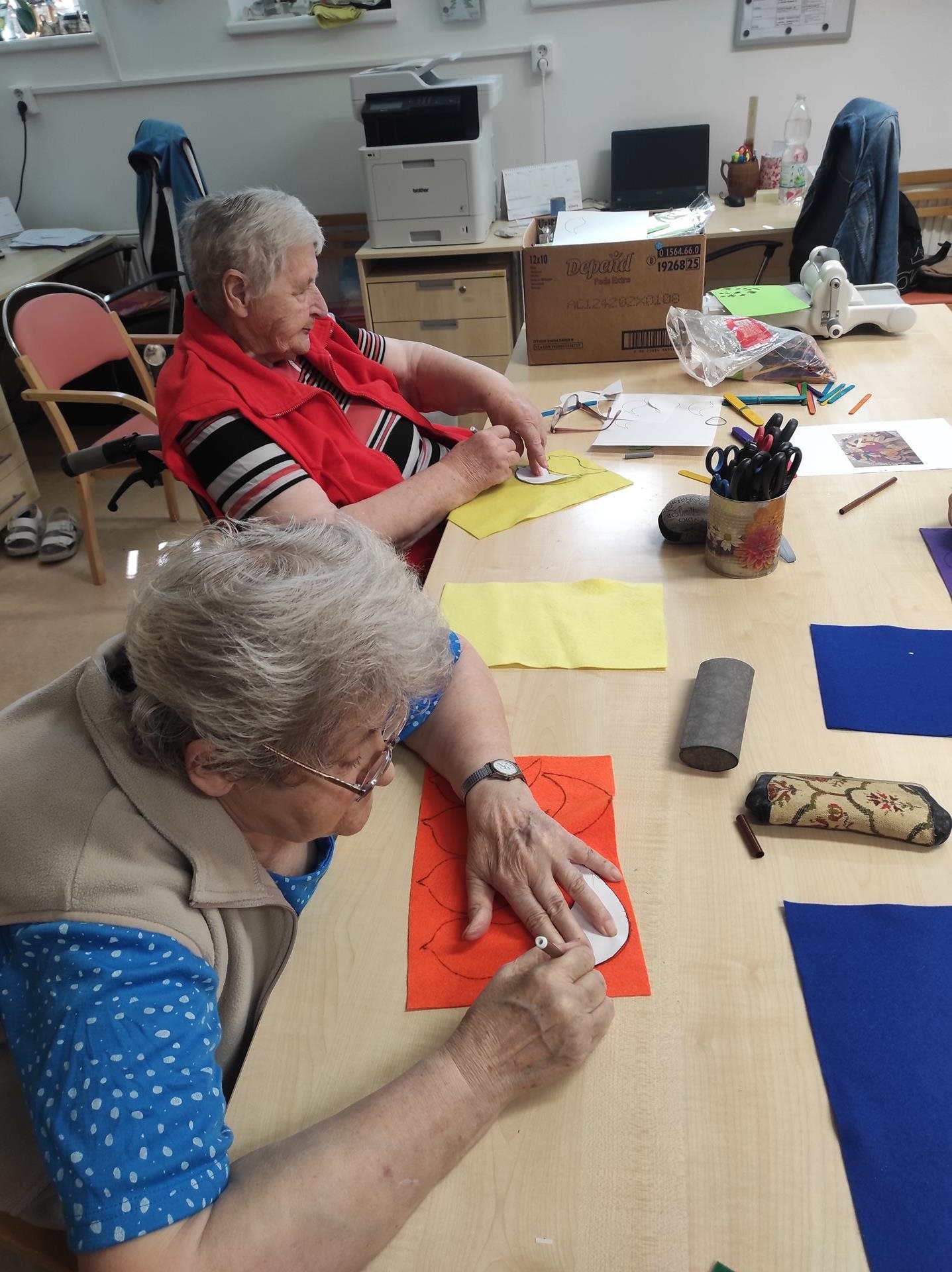 Pondělní dopoledne jsme zaměřily naši energii na tvorbu vzpomínkových předmětů pro zpěváky a zpěvačky ze sboru Bádule, který k nám měl přijet ve čtvrtek odpoledne a potěšit naše seniorky svým zpěvem. S uživatelkami jsme pro ně, za jejich snahu zpříjemnit nám den, vytvořily zápichy do květináčů ve tvaru ptáčka. Doufáme, že se osazenstvu sboru naše dárečky budou líbit a při pohledu na zápichy v truhlících a květináčích si na náš domov rádi vzpomenou.